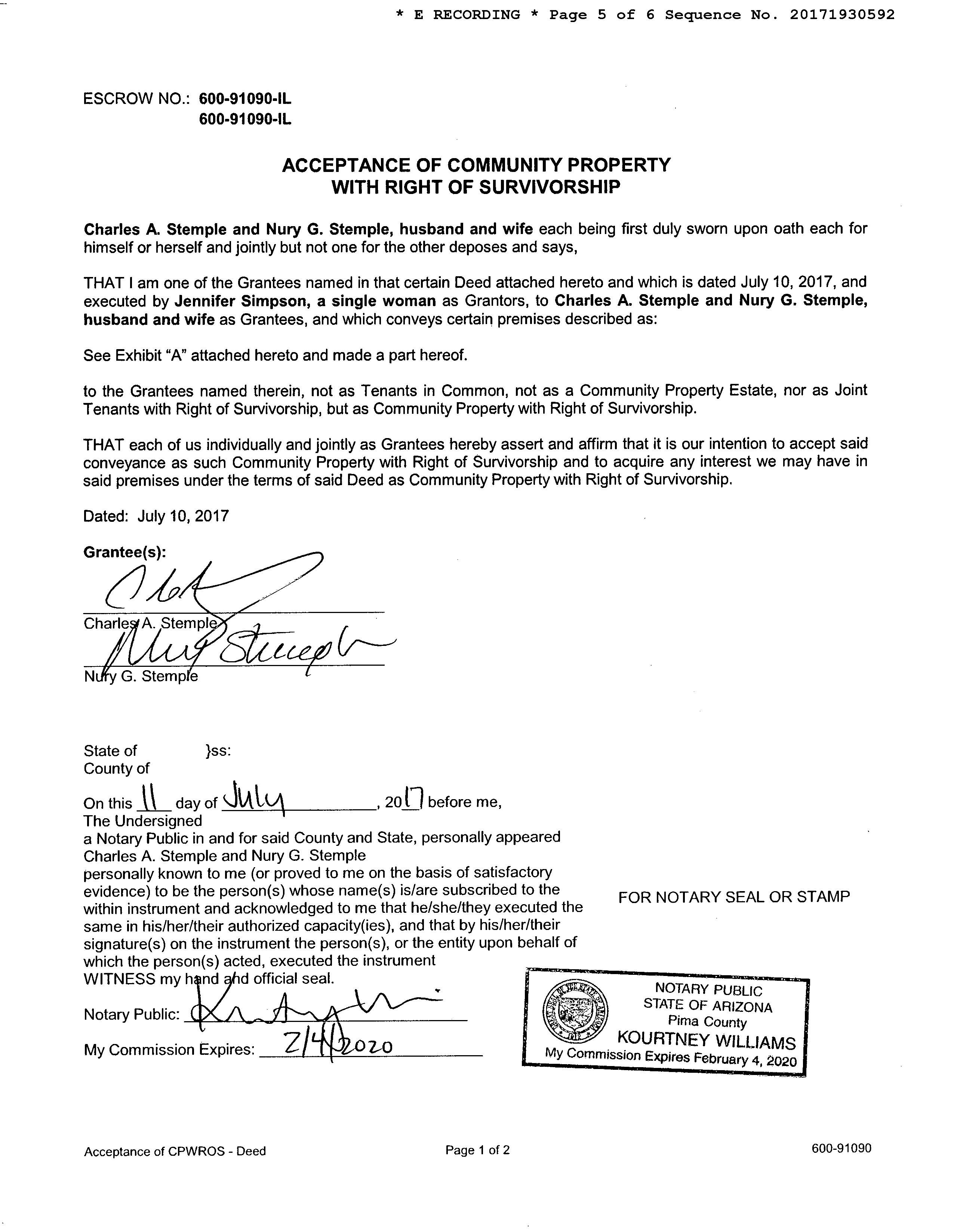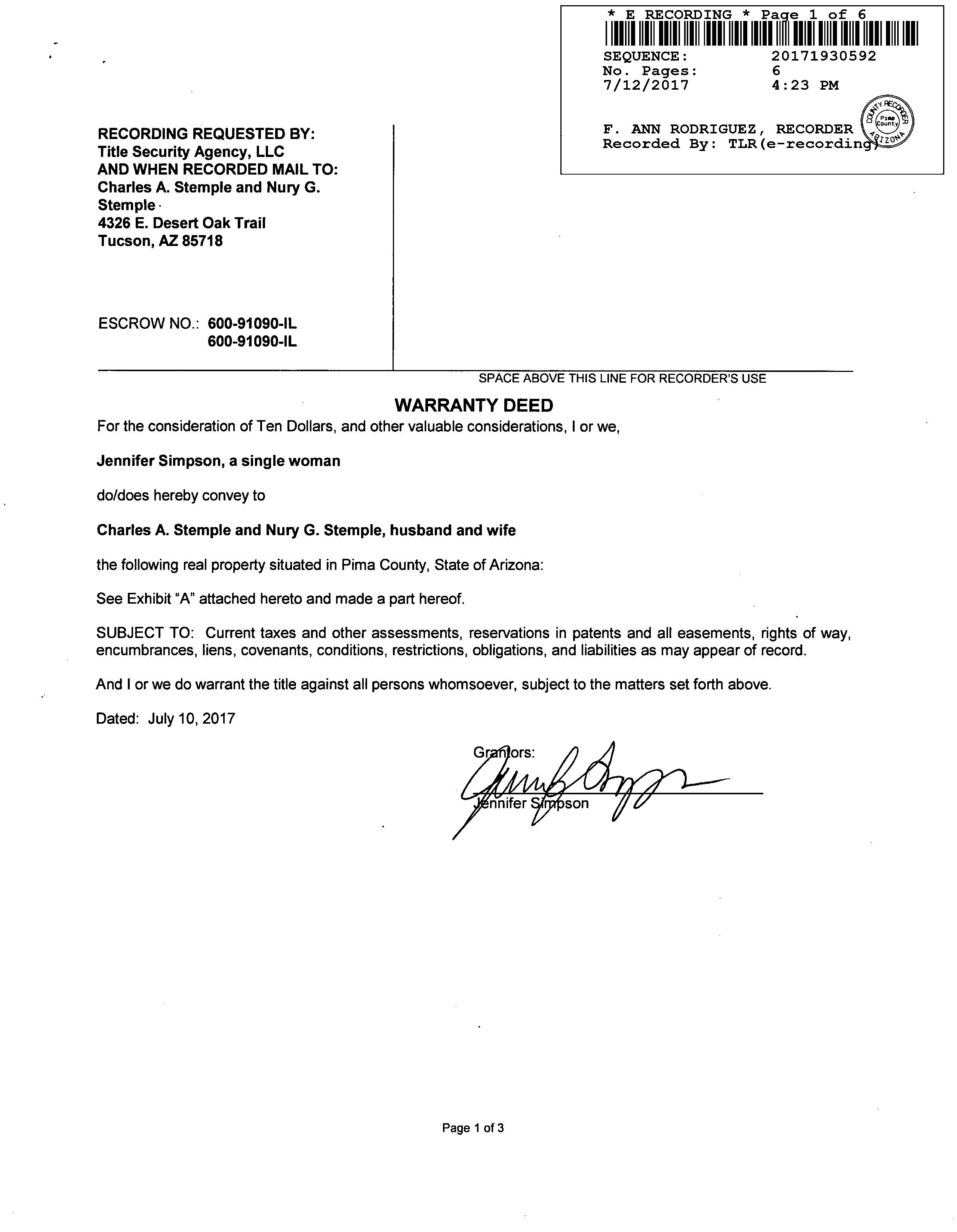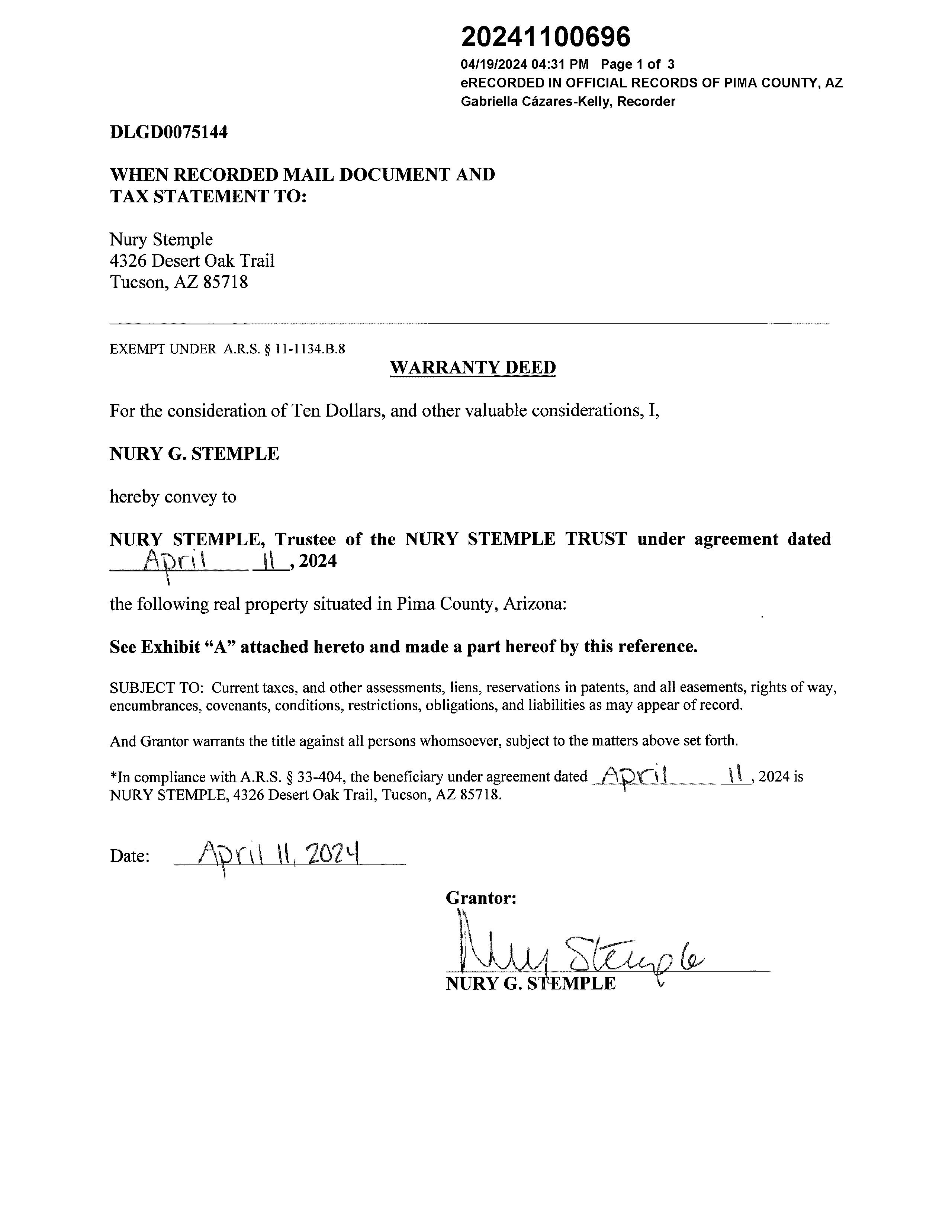 Owner Name: Stemple Nury Trust / APN / Alternate APN: 110-01-029A / Deed Type: Warranty Deed