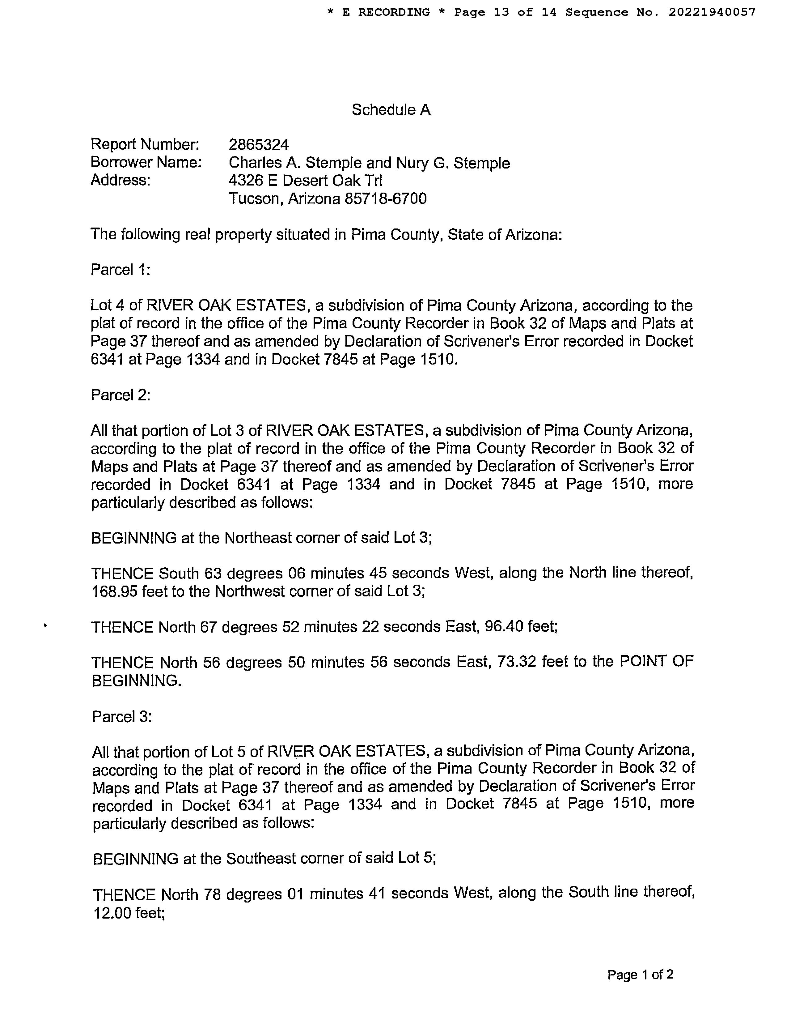 Mailing Address : 4326 E Desert Oak Trl, Tucson AZ 85718-6700 C044