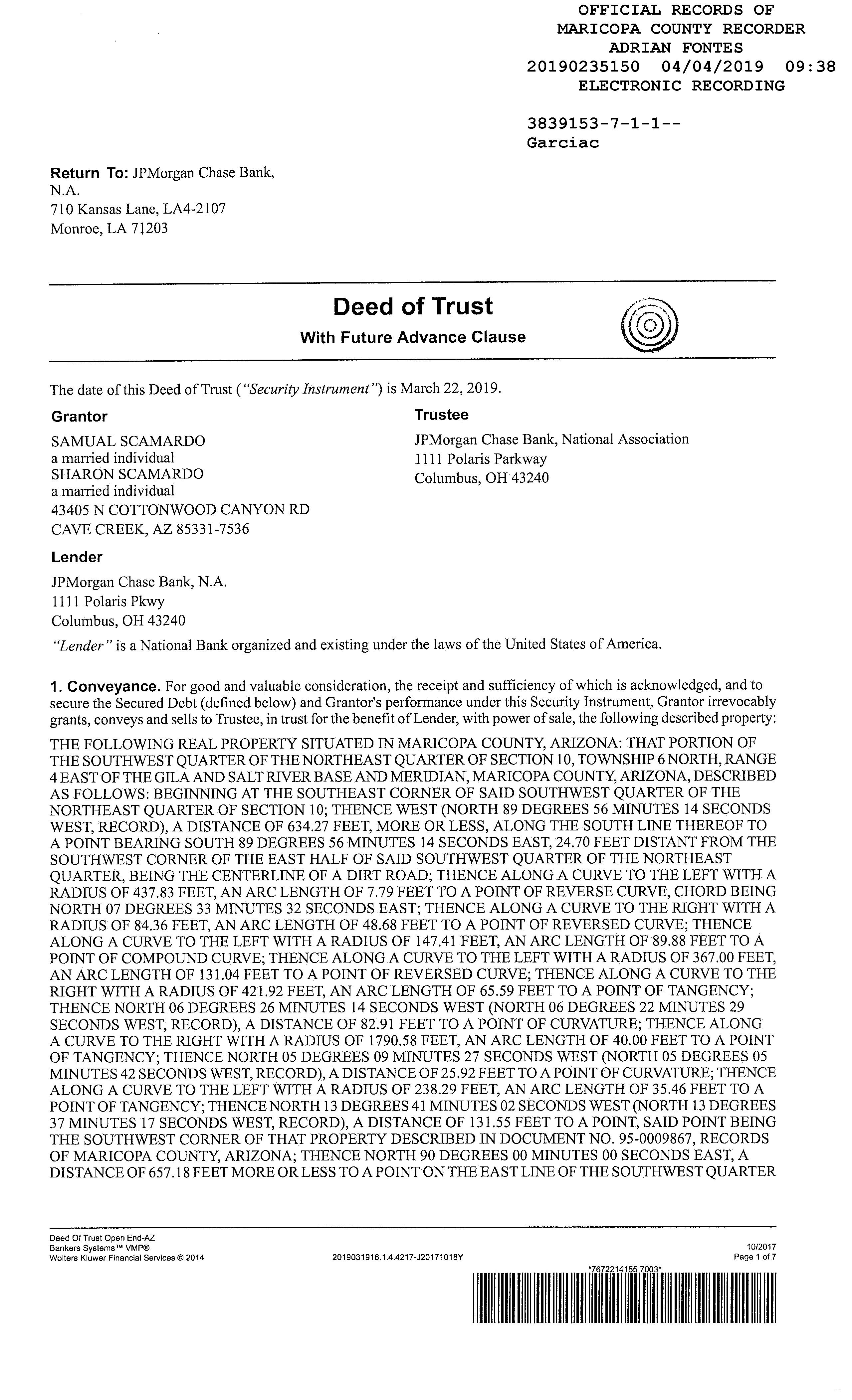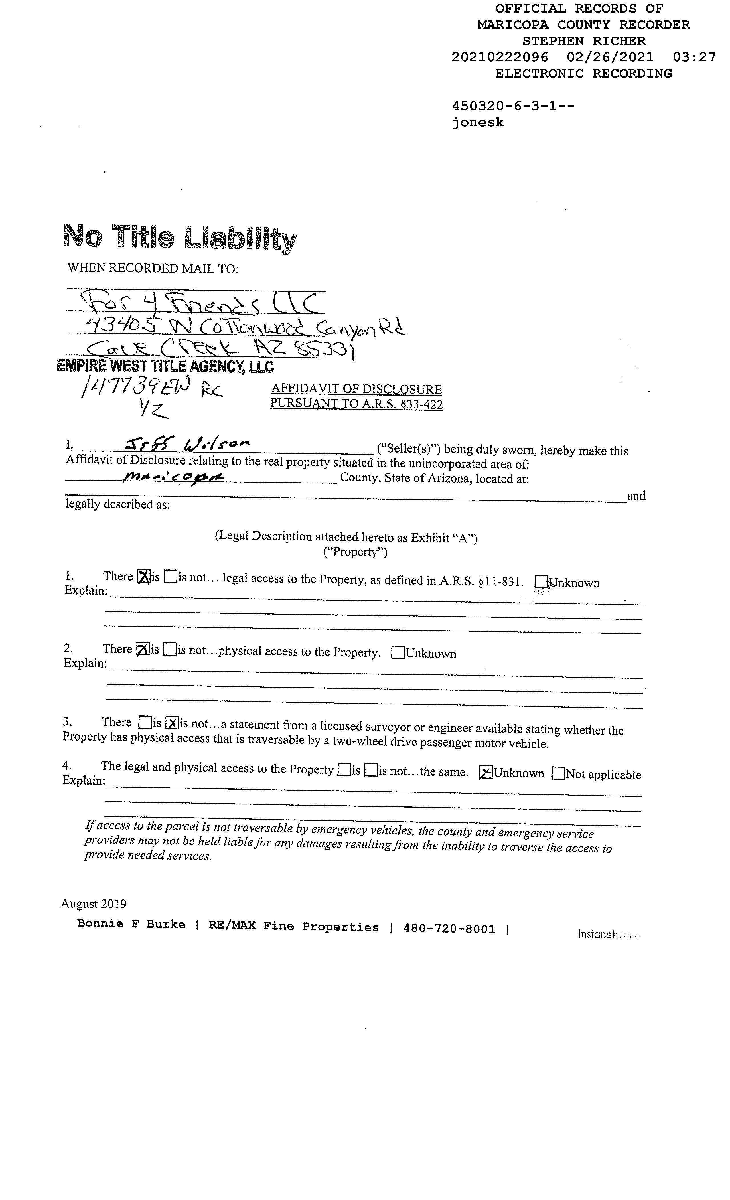 Mailing Address : 43405 N Cottonwood Canyon Rd, Cave Creek AZ 85331-7536 H034