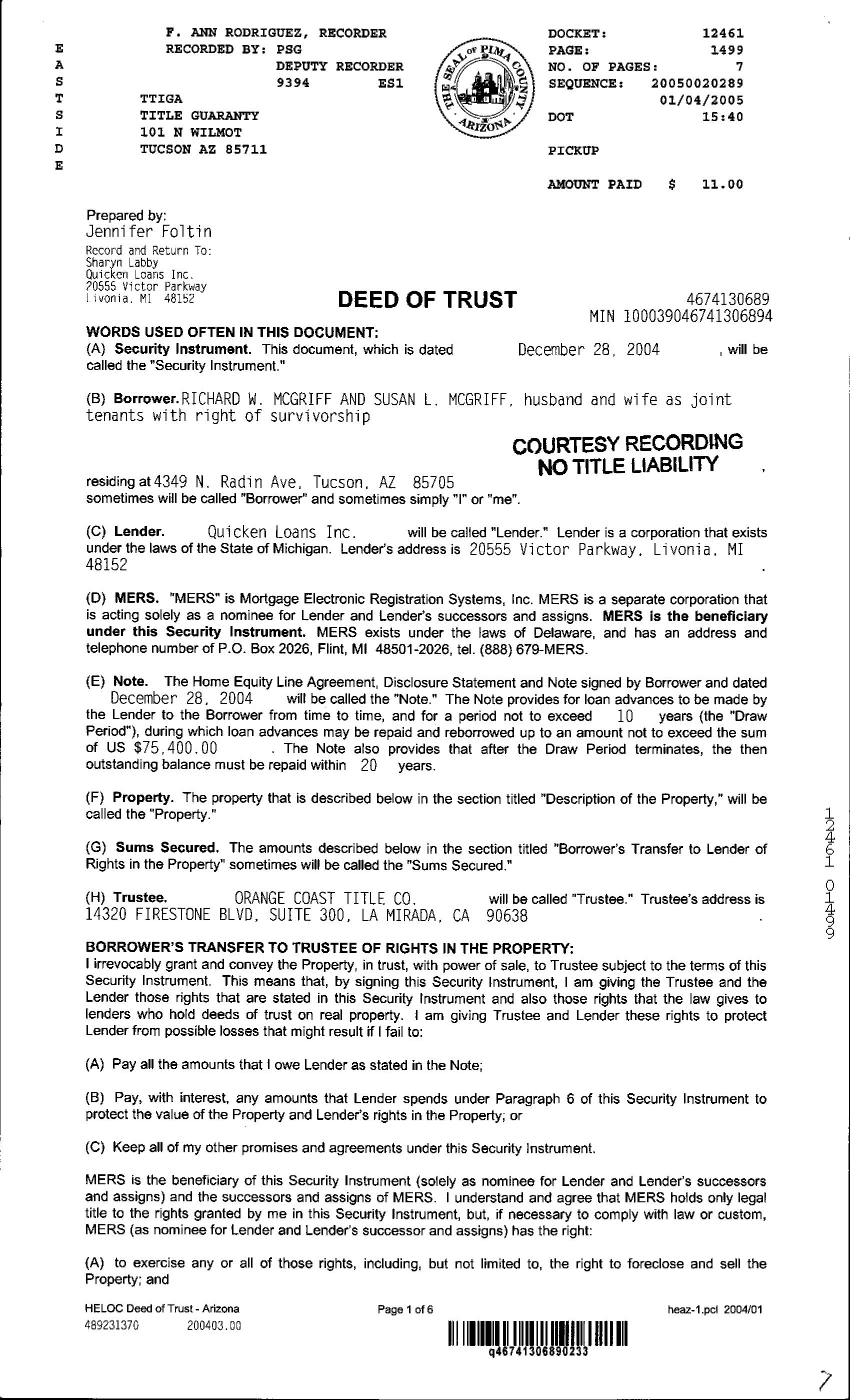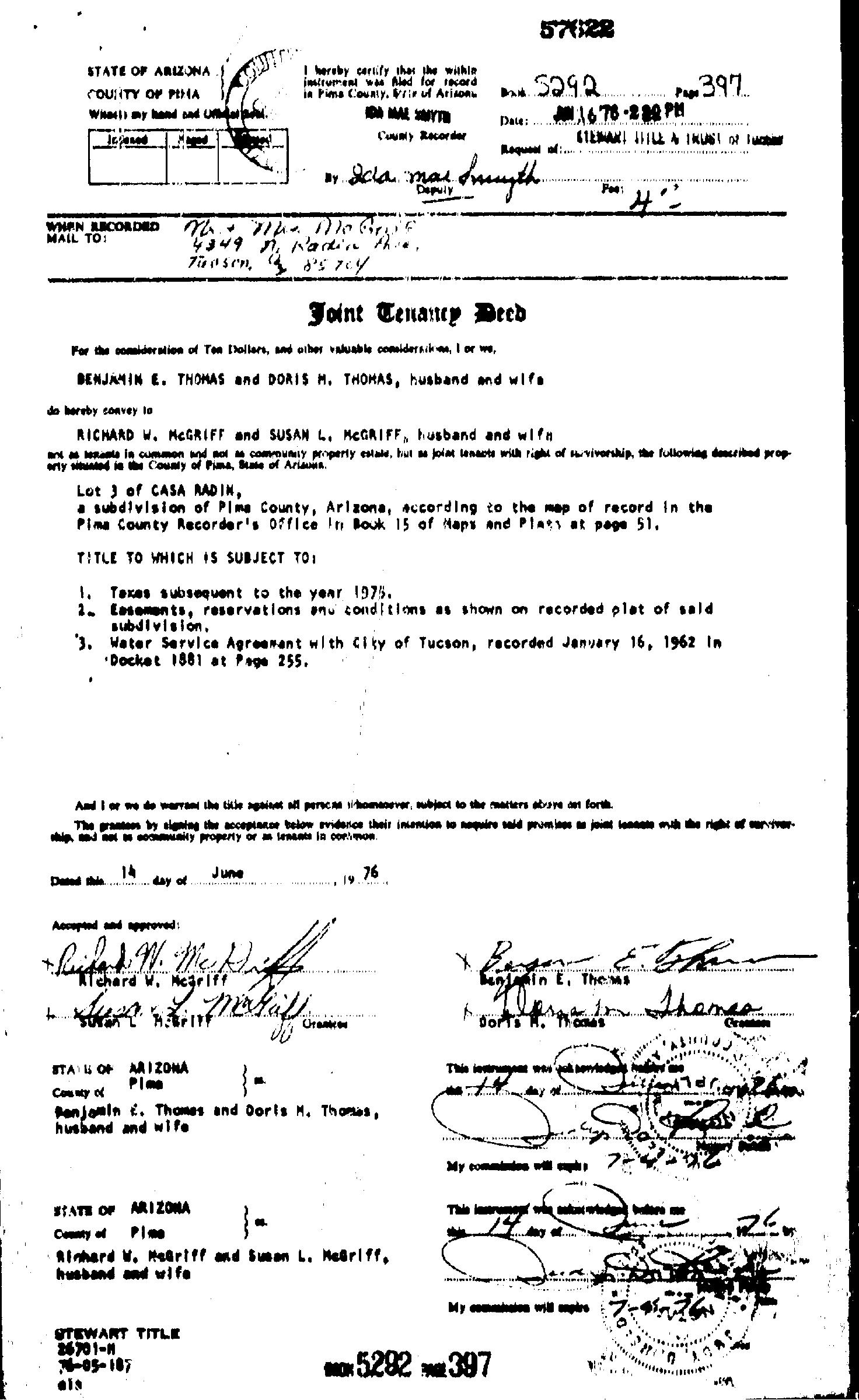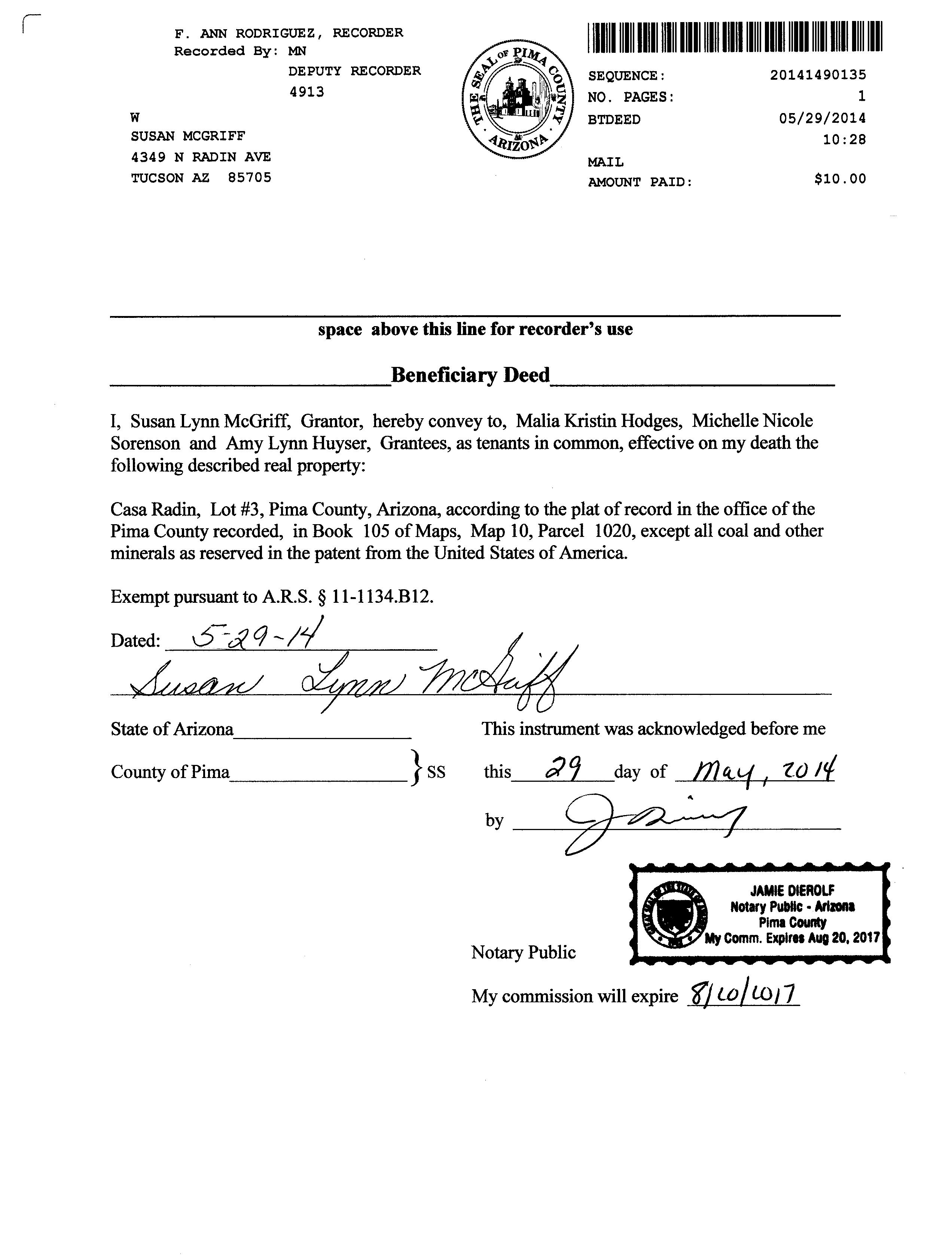 Owner Name: Mc Griff Susan L / APN / Alternate APN: 105-10-1020 / Deed Type: Joint Tenancy Deed