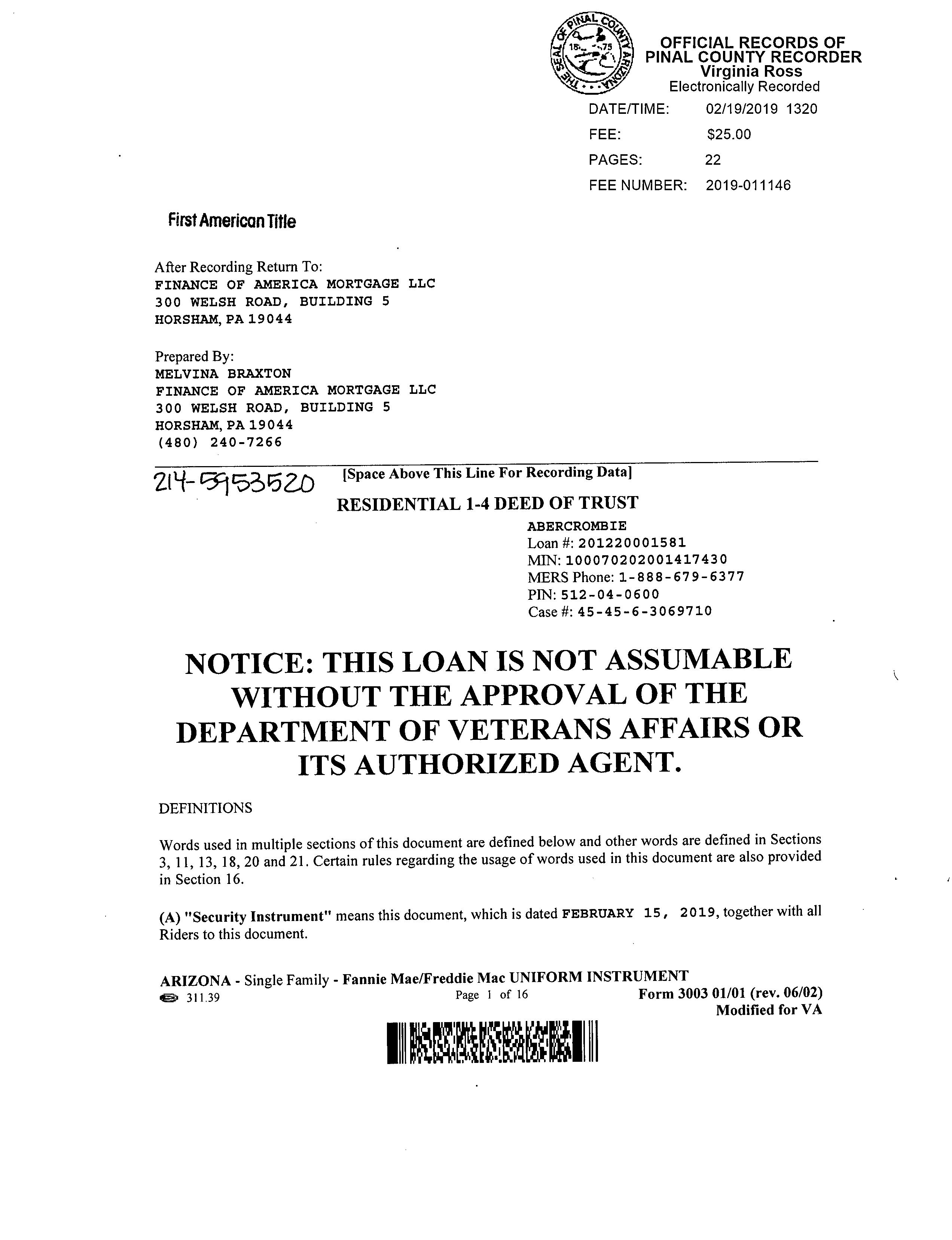 Recording/Sale Date : 02/19/2019 / 01/22/2019