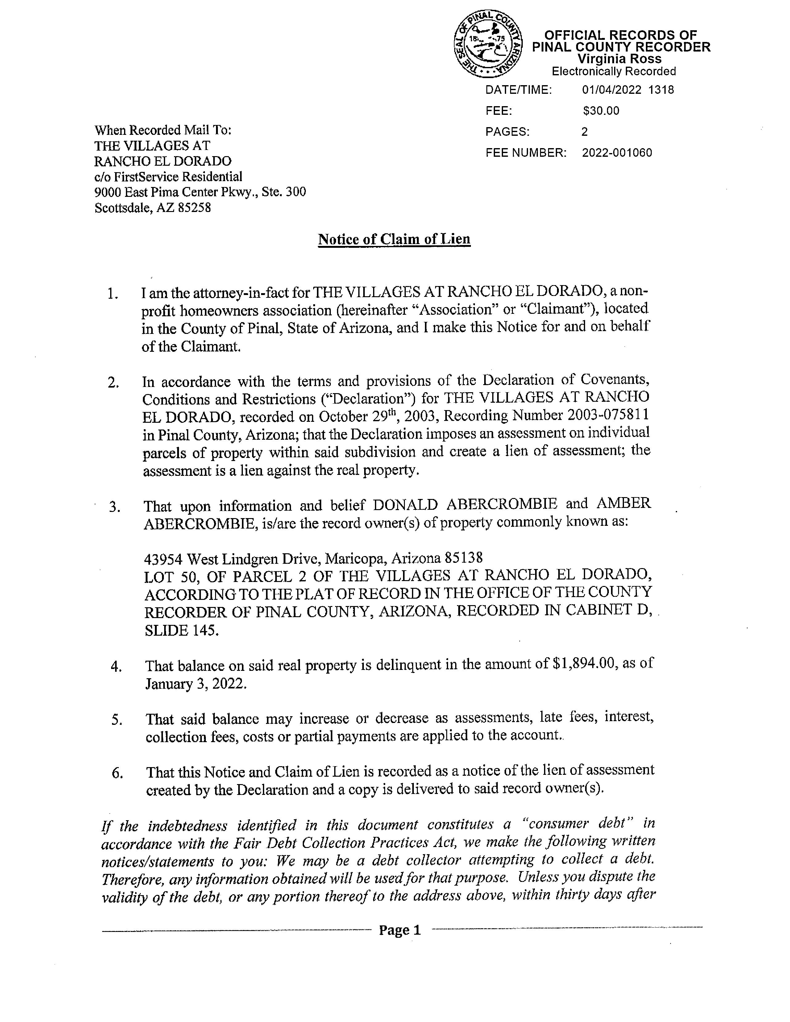 Owner Name: Abercrombie Donald /Abercrombie Amber