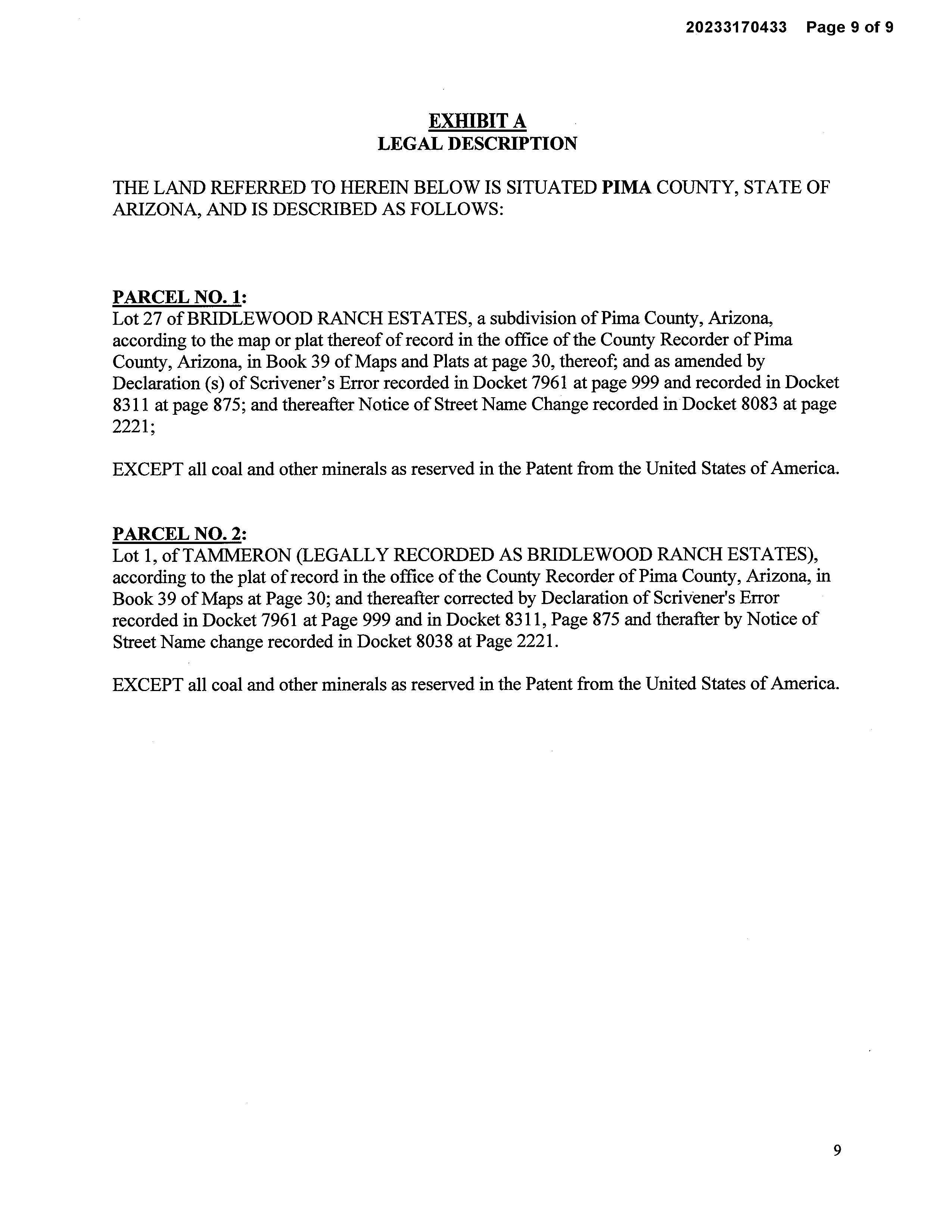 Subject Property : 4396 W Plantation St Tucson AZ 85741