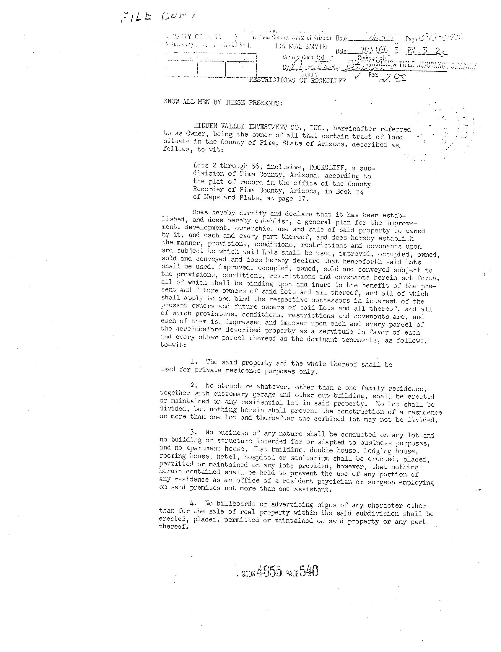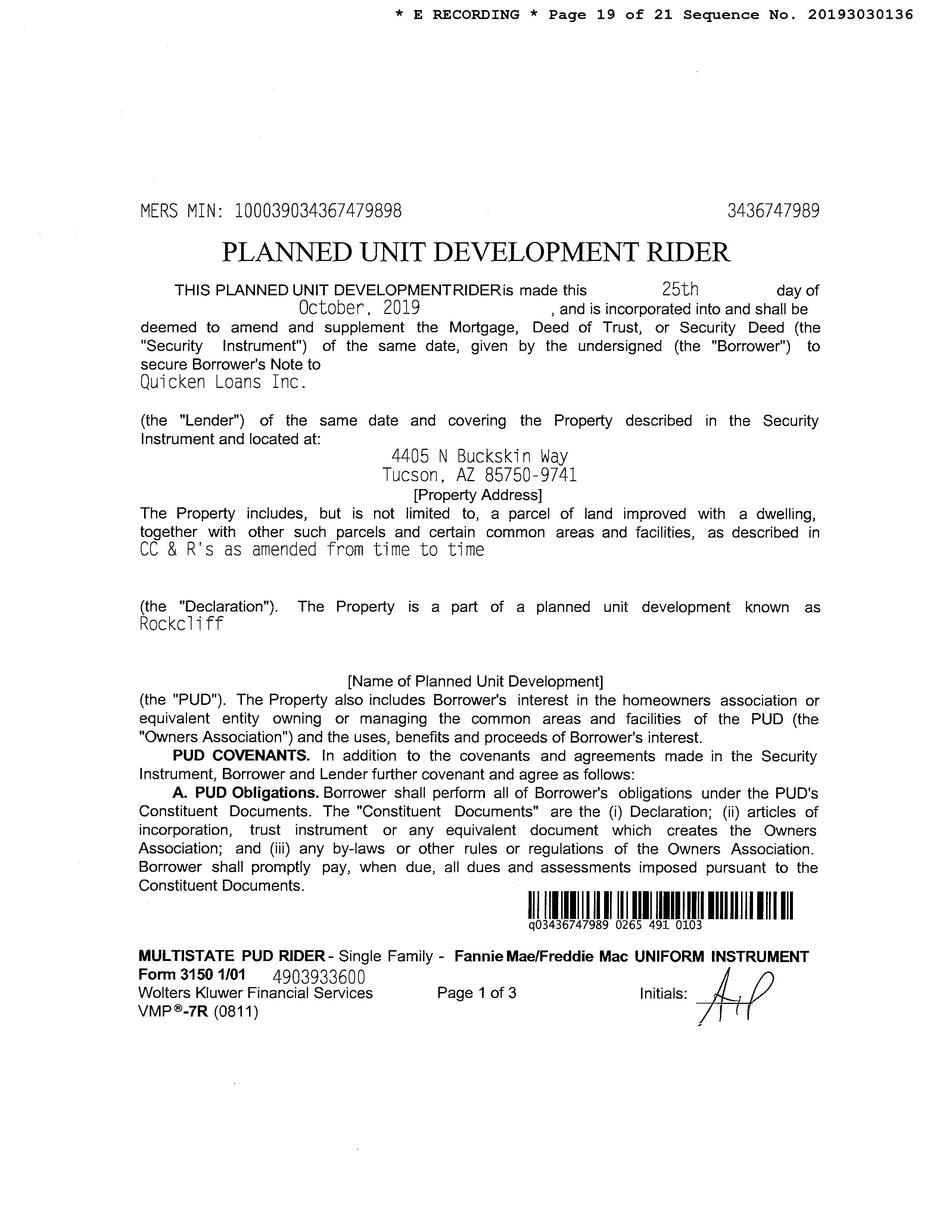 Mailing Address : 4405 N Buckskin Way, Tucson AZ 85750-9741 R039