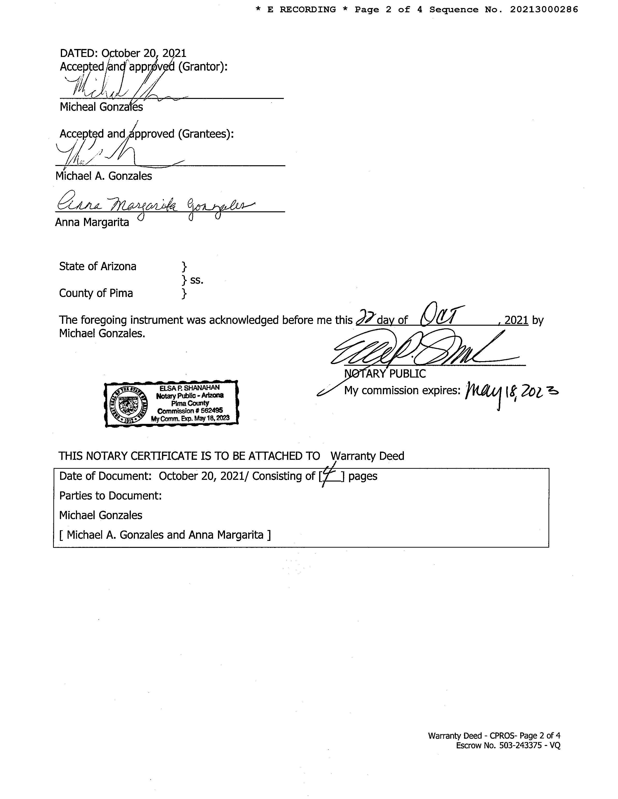 Owner Name: Gonzales Michael A /Margarita Anna Cp & R