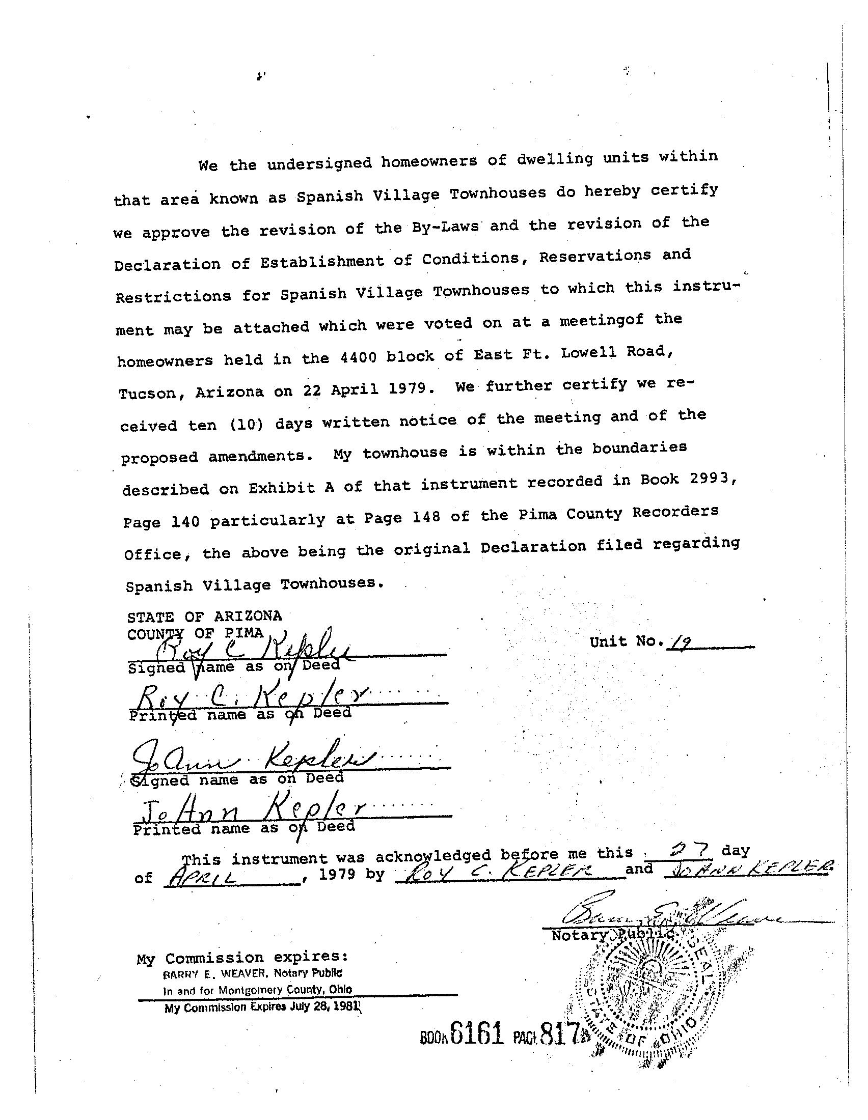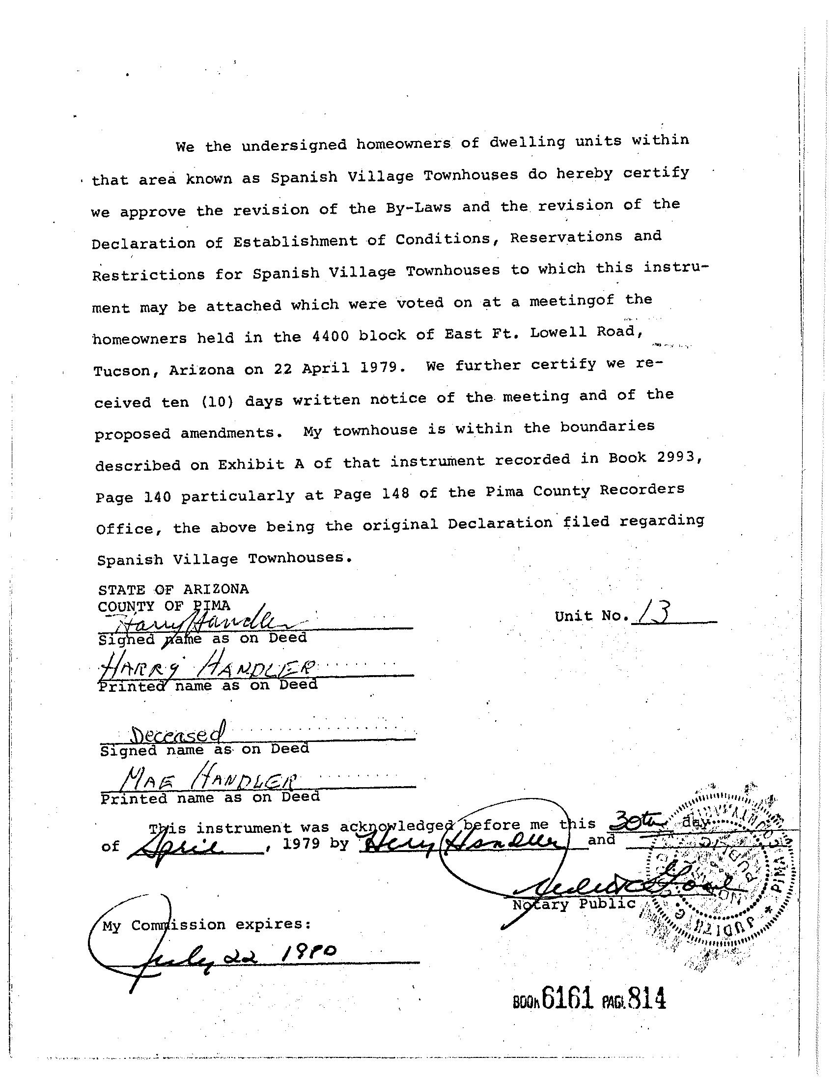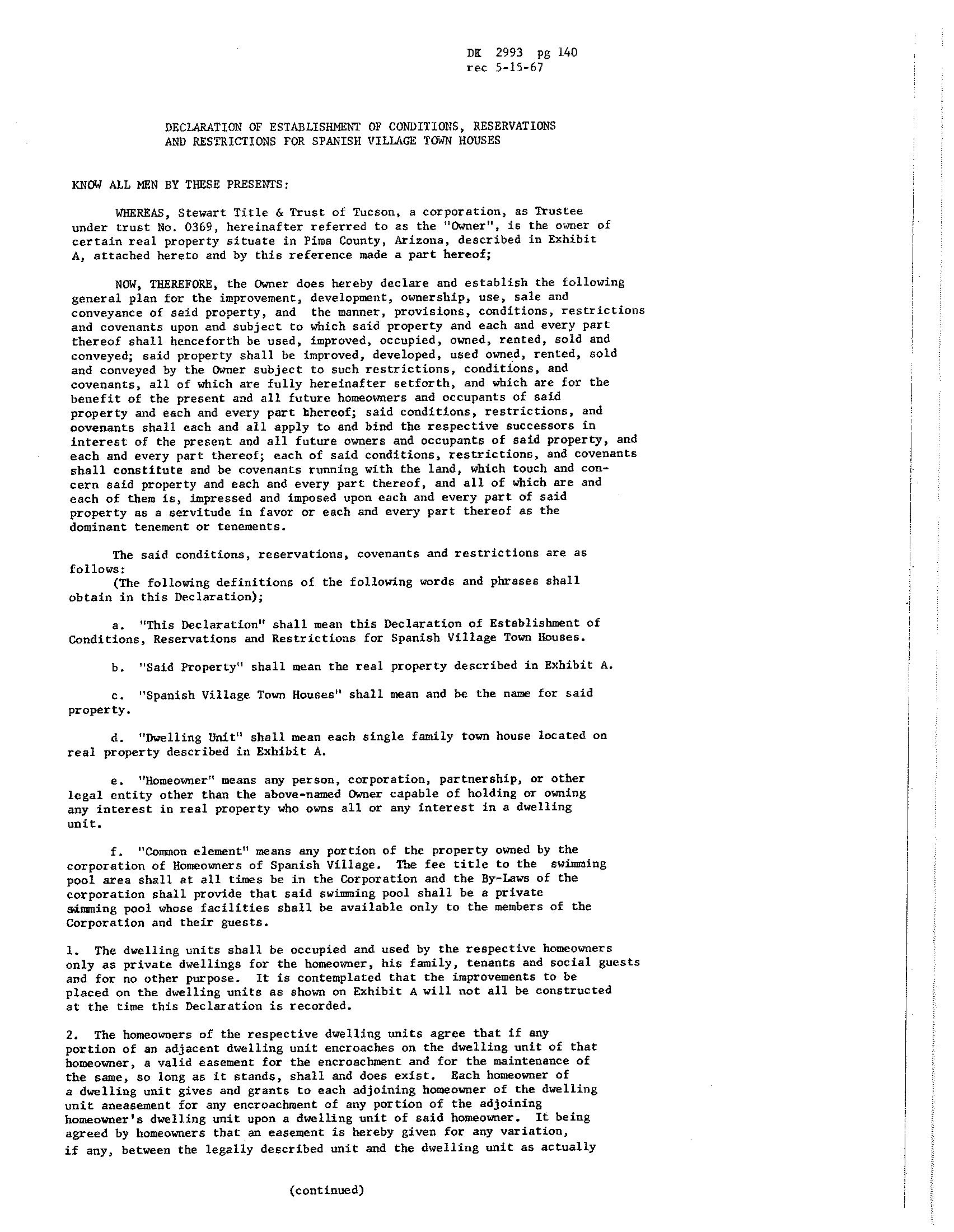 ©2021 First American Financial Corporation and/or its affiliates. All rights reserved. NYSE: FAF 05252610821 COVENANTS, CONDITIONS & RESTRICTIONS PREPARED FOR : First American Title Insurance Company, and the operating divisions thereof, make no express or implied warranty respecting the information presented and assume no responsibility for errors or omissions. First American, the eagle logo, First American Title, and firstam.com are registered trademarks or trademarks of First American Financial Corporation and/or its affiliates. 4456 E. Fort Lowell Road Tucson, AZ 85712