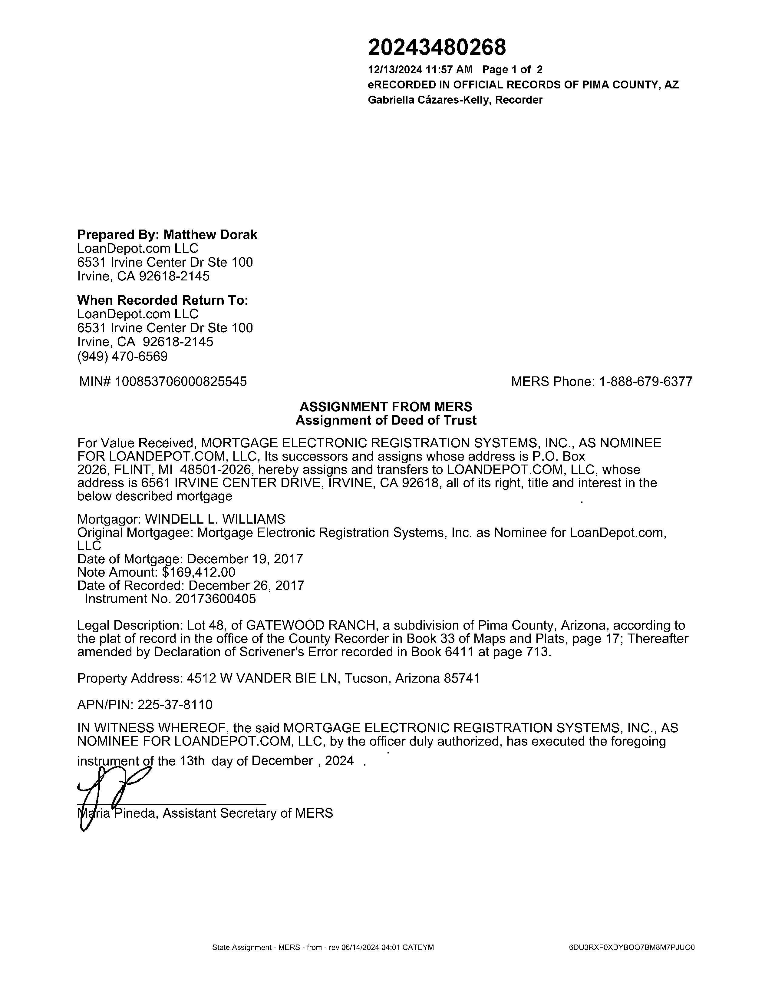 Mailing Address : 4512 W Vander Bie Ln, Tucson AZ 85741-1672 C015