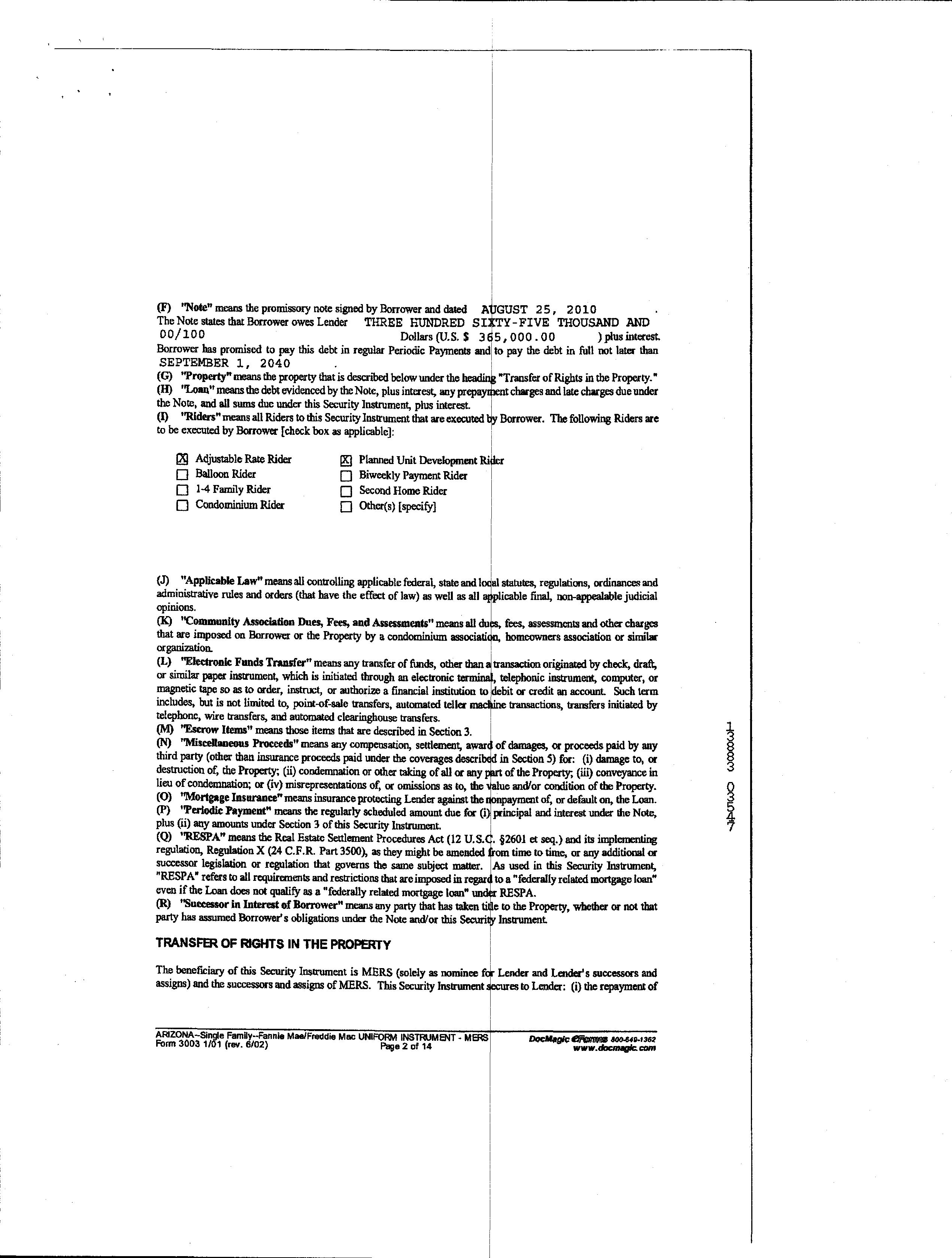 Prior 1st Mtg Rate/Type : / Adjustable Int Rate Loan