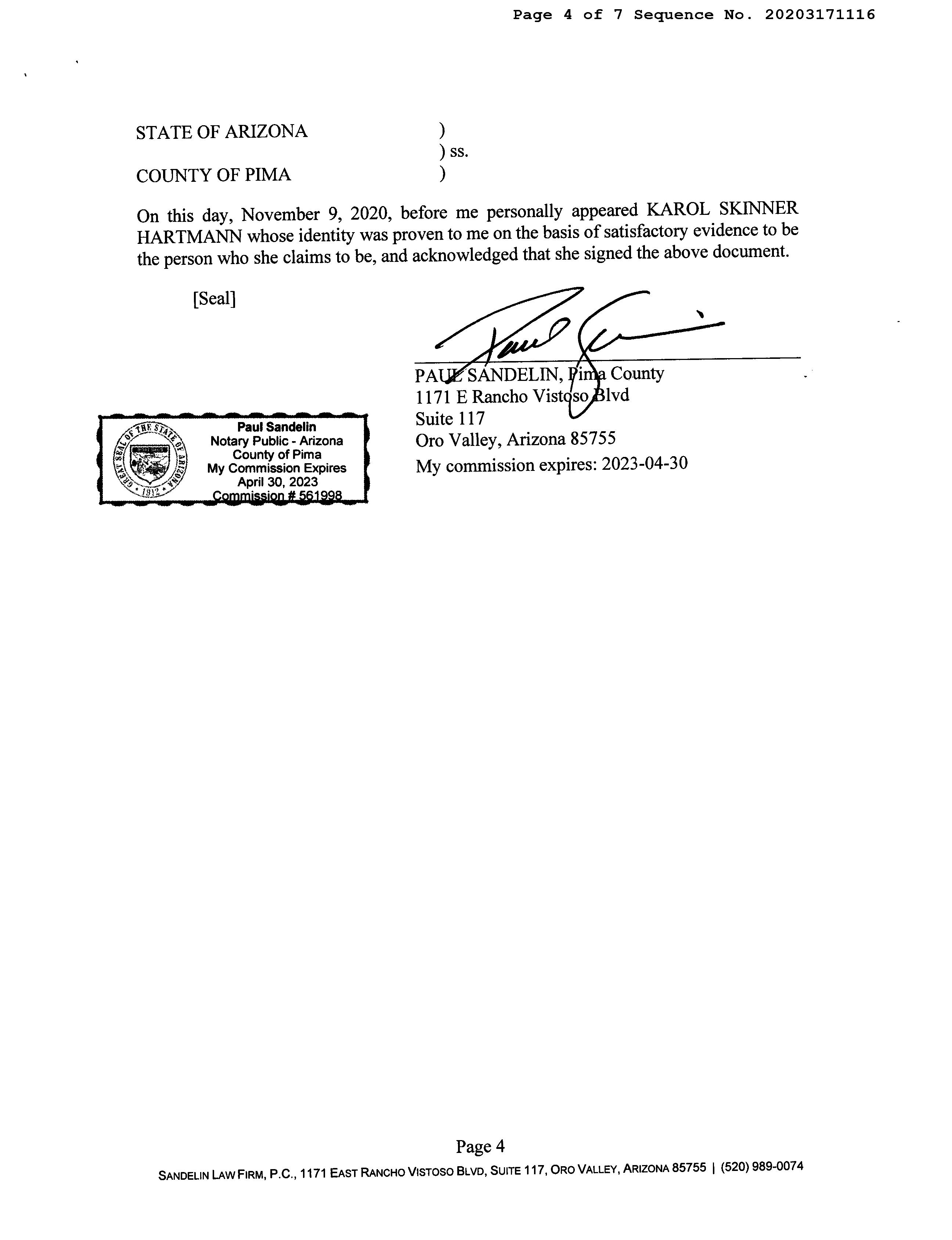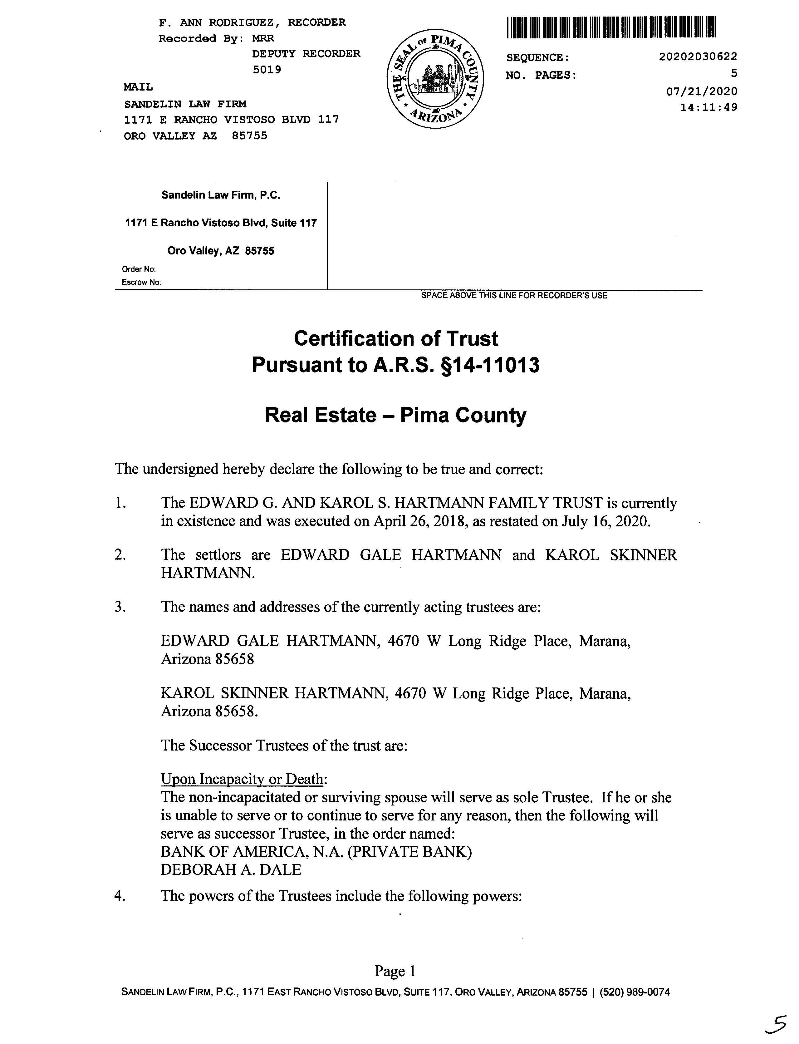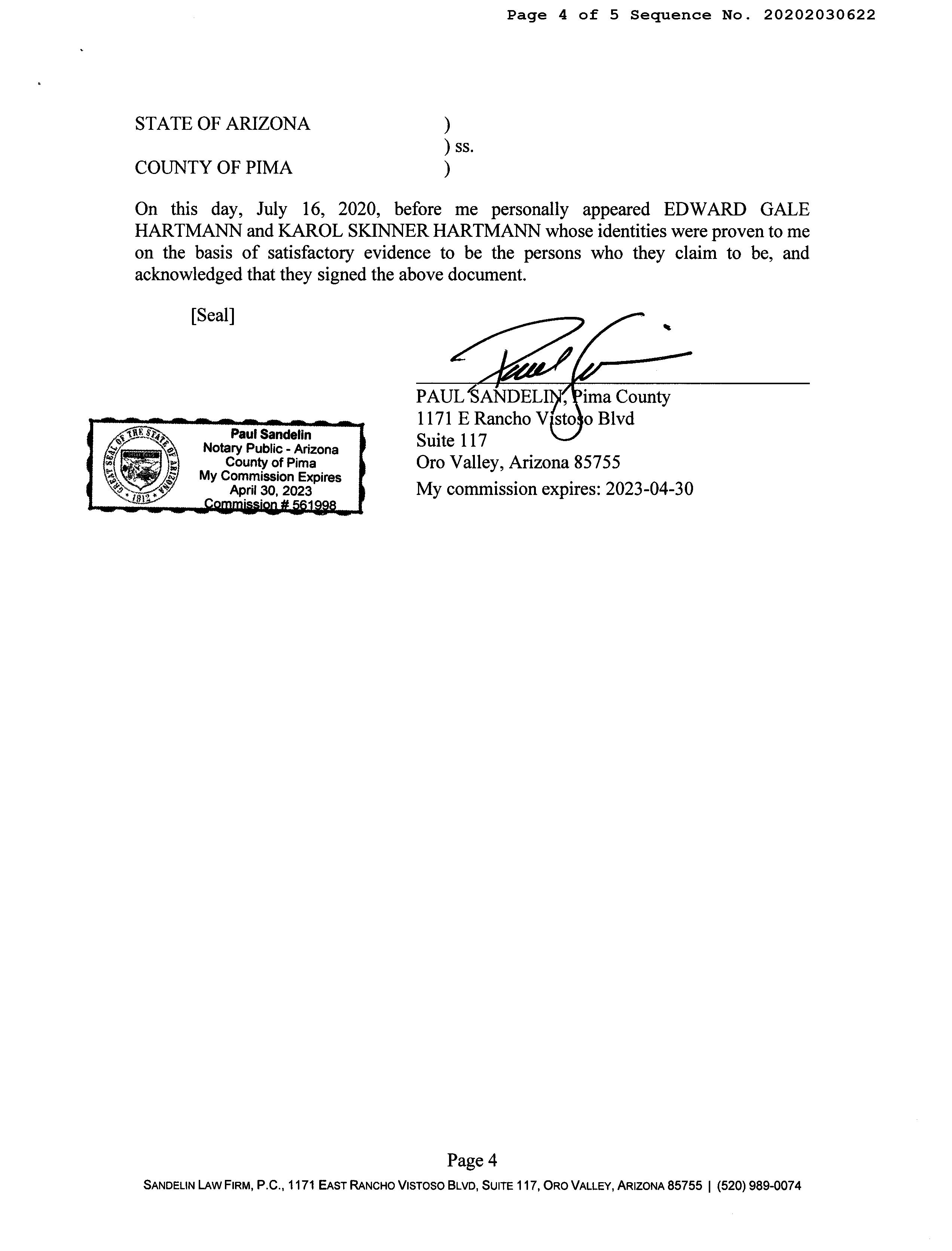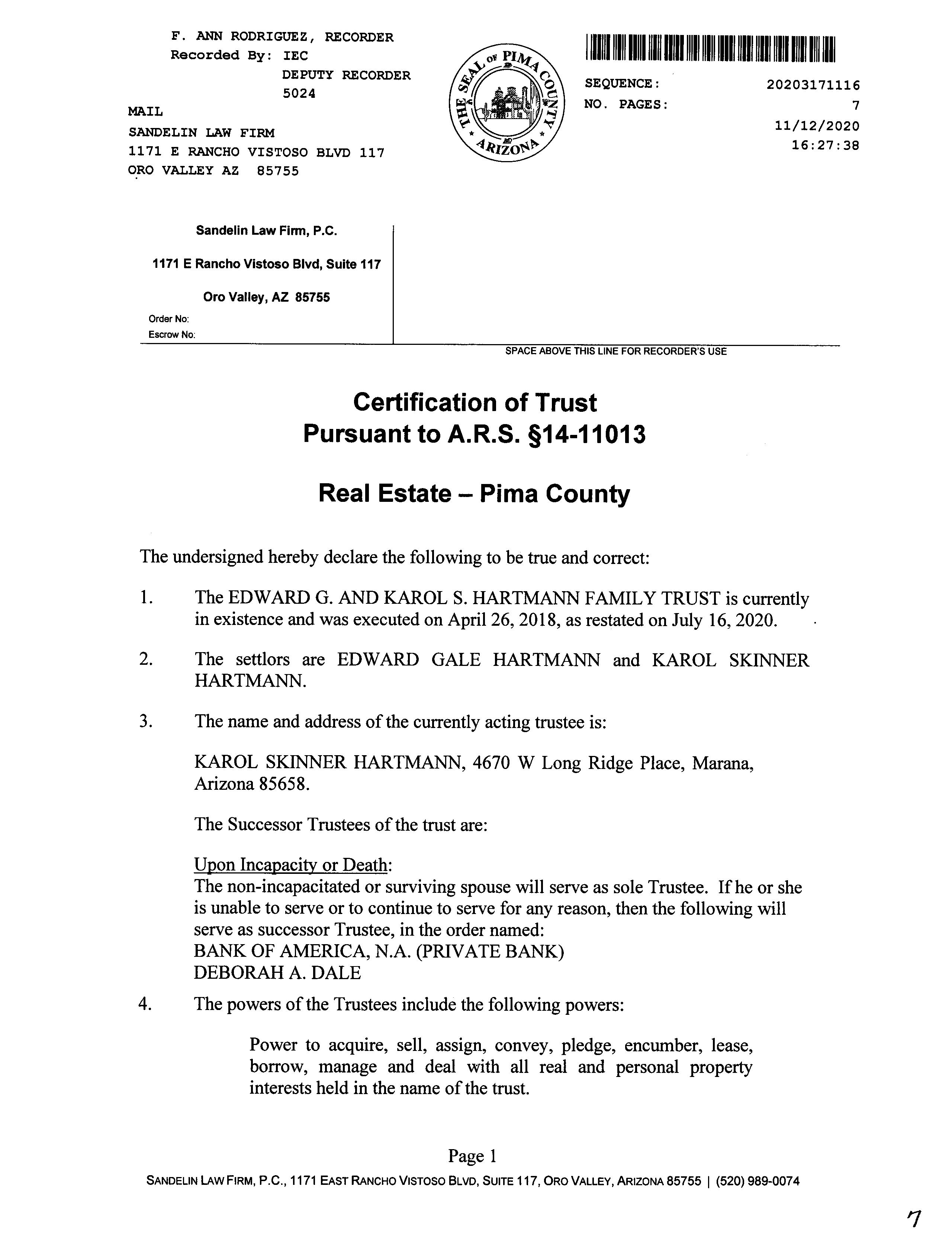 OWNER: HARTMANN EDWARD G & KAROL S AFFIDAVIT