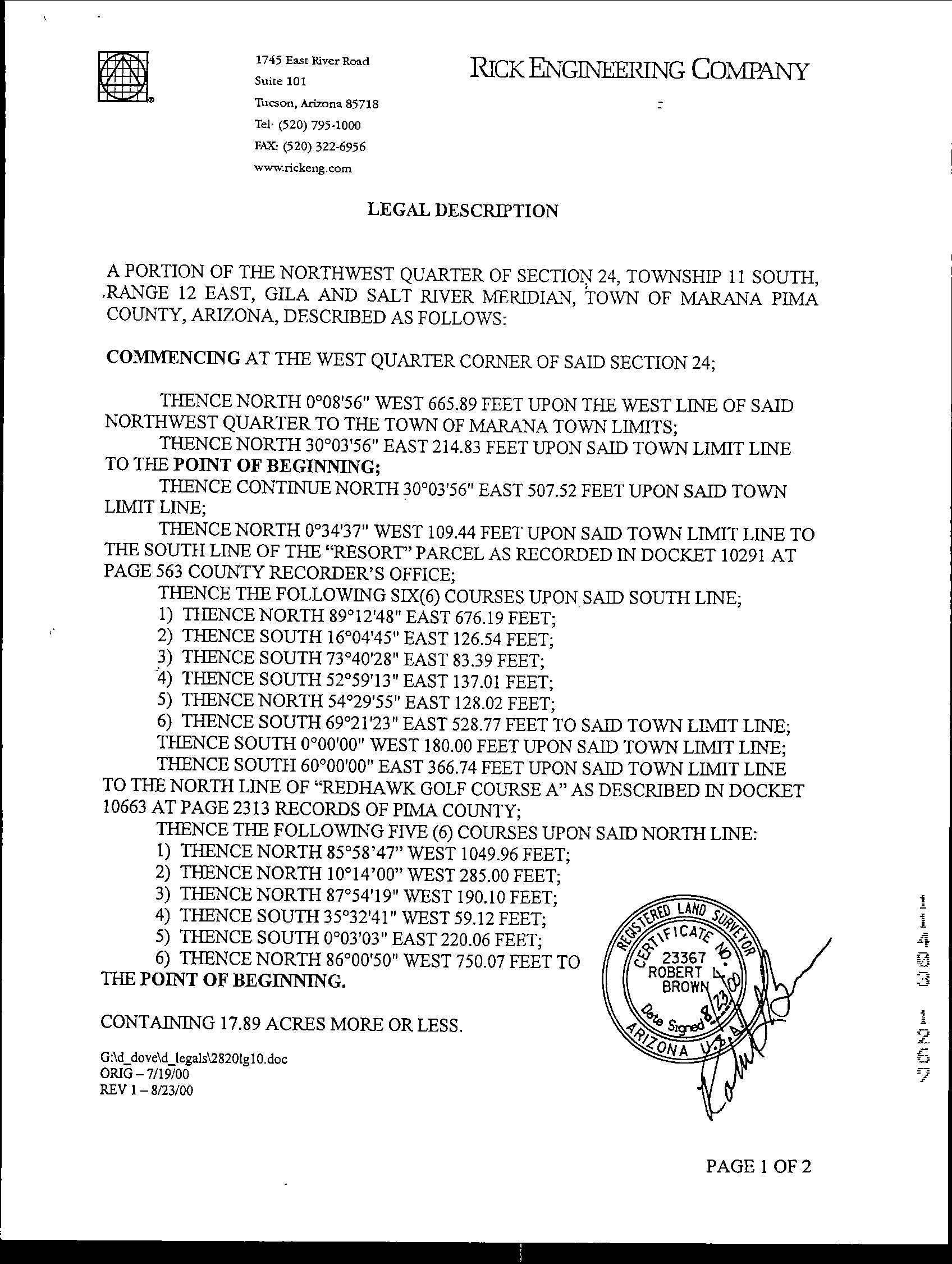 Mailing Address : 4670 W Long Ridge Pl, Marana AZ 85658-8314 H014