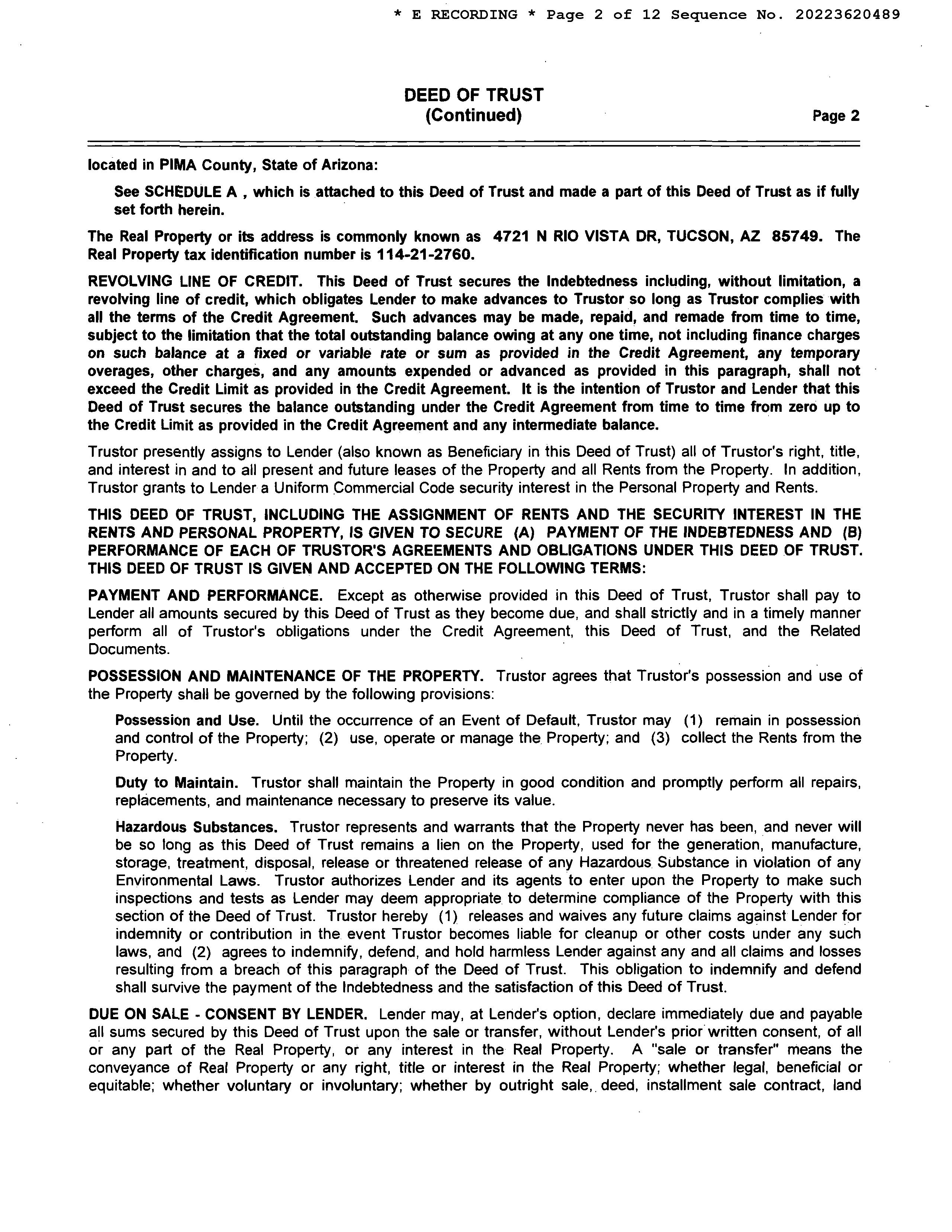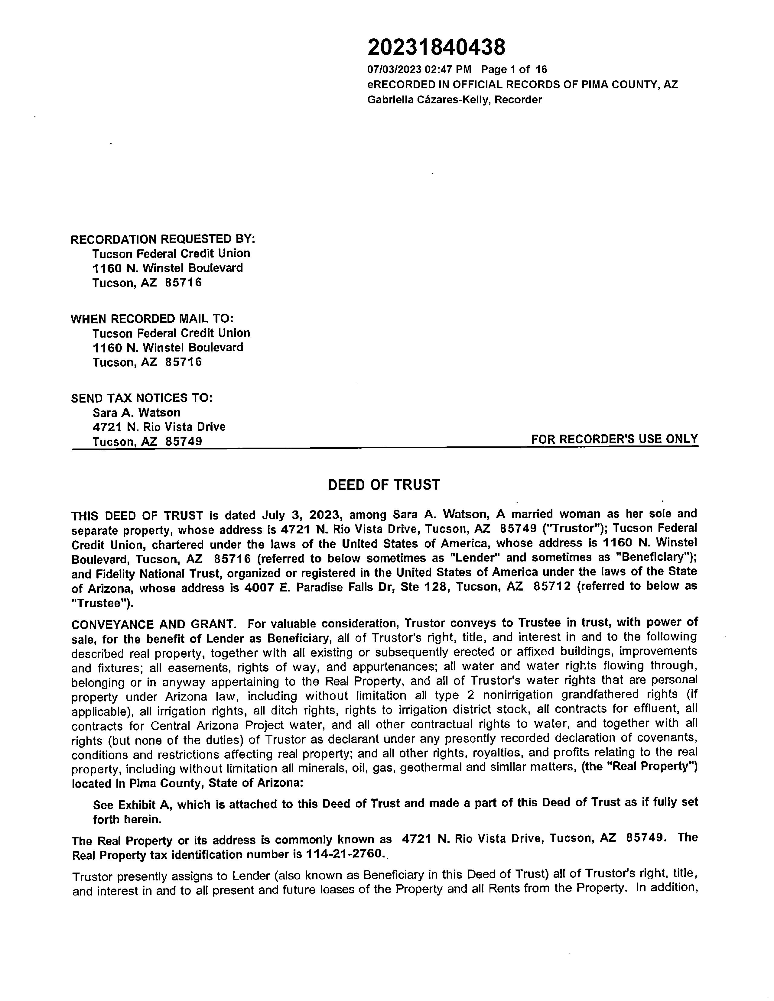Mailing Address : 4721 N Rio Vista Dr, Tucson AZ 85749-9490 R040