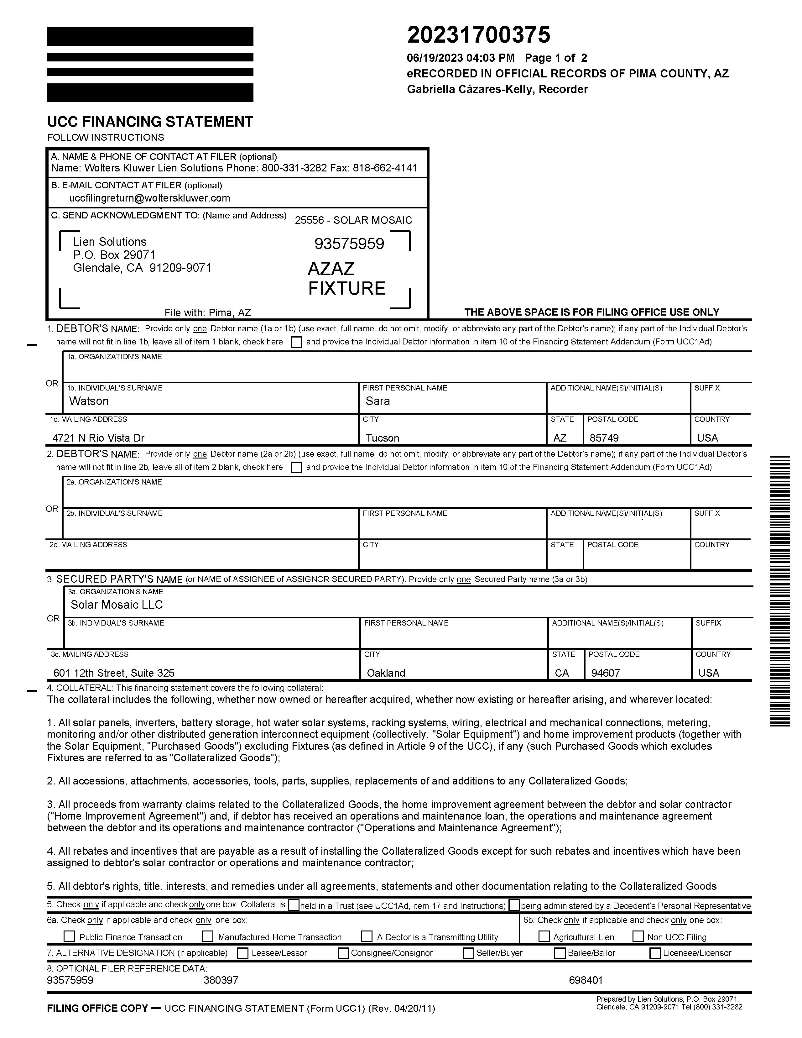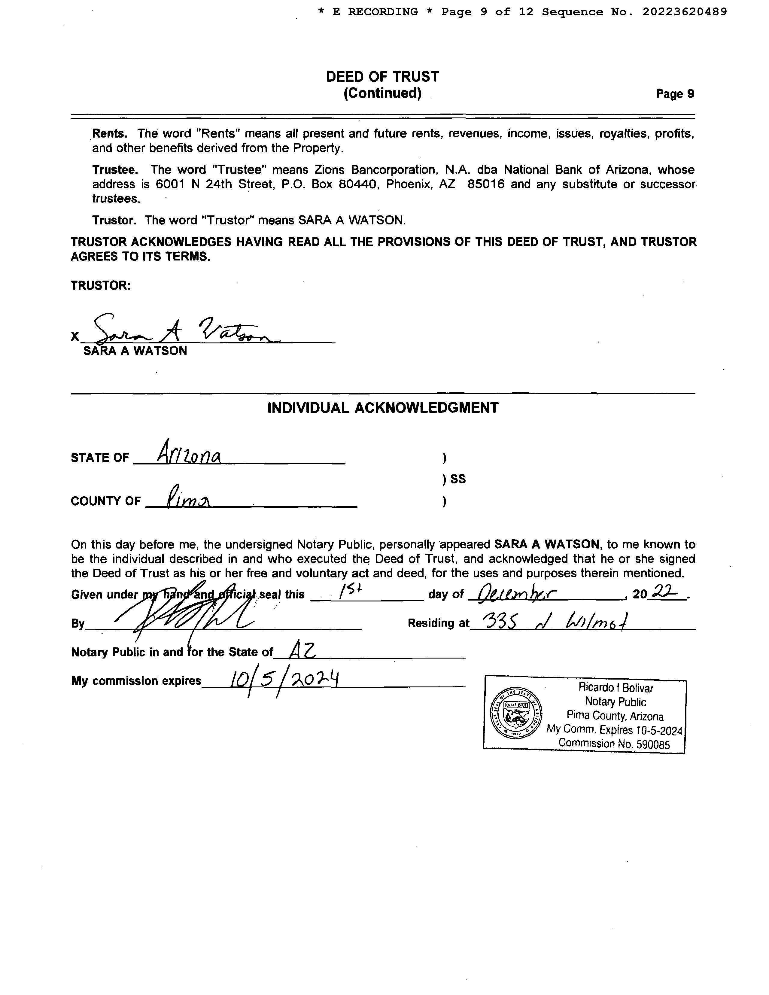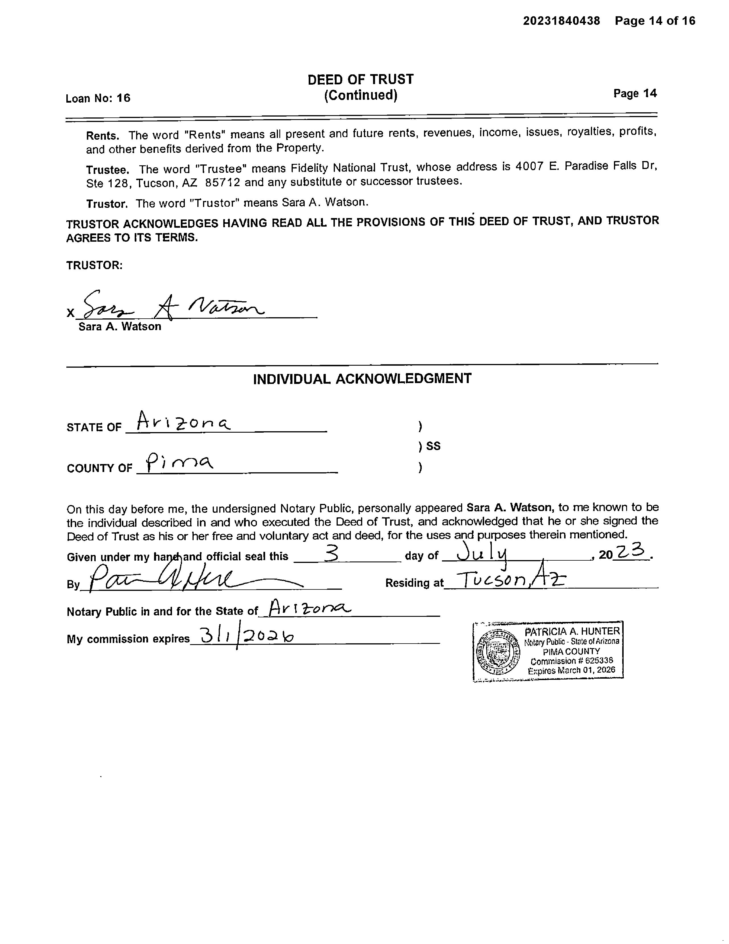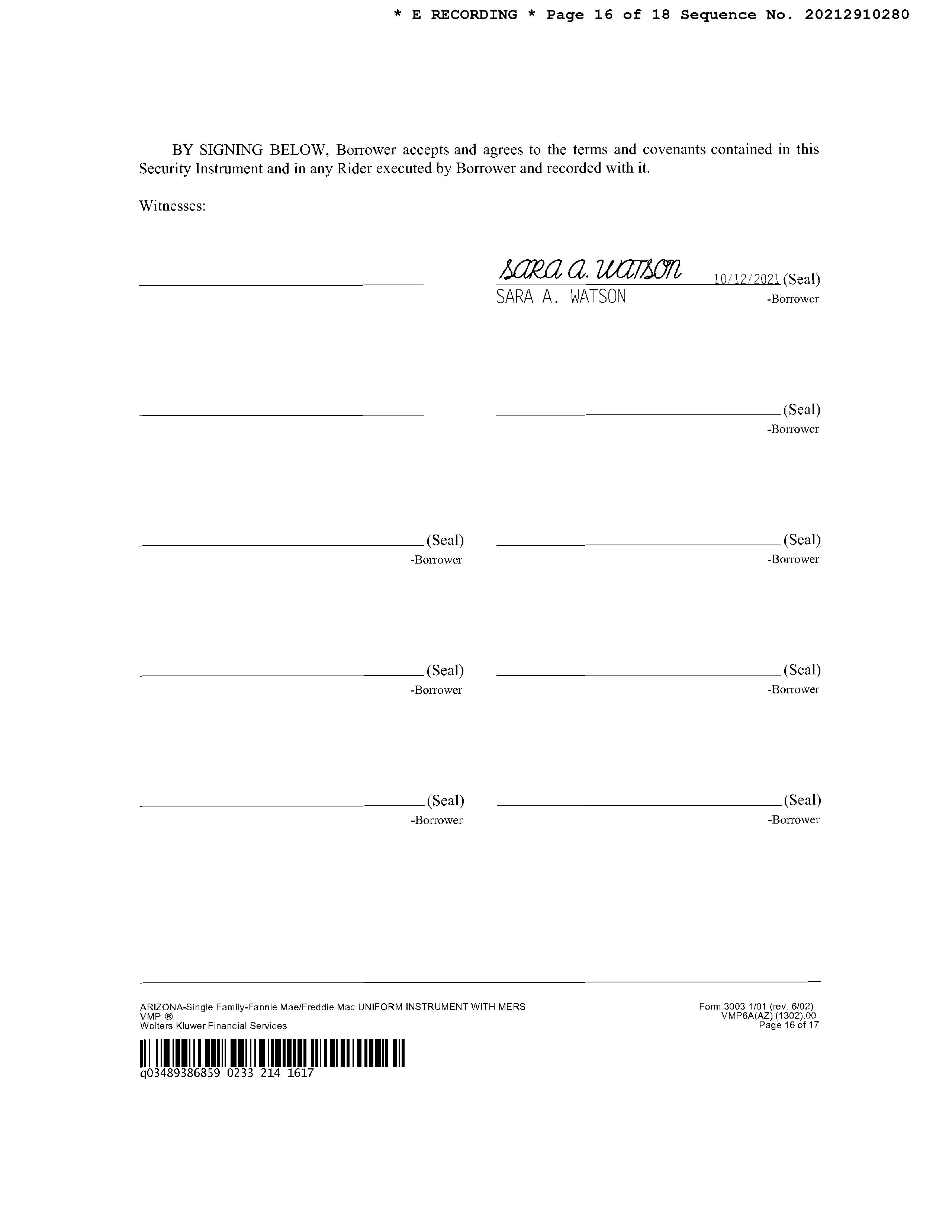 OWNER: WATSON SARA A AFFIDAVIT 2020 2750416 10/01/2020