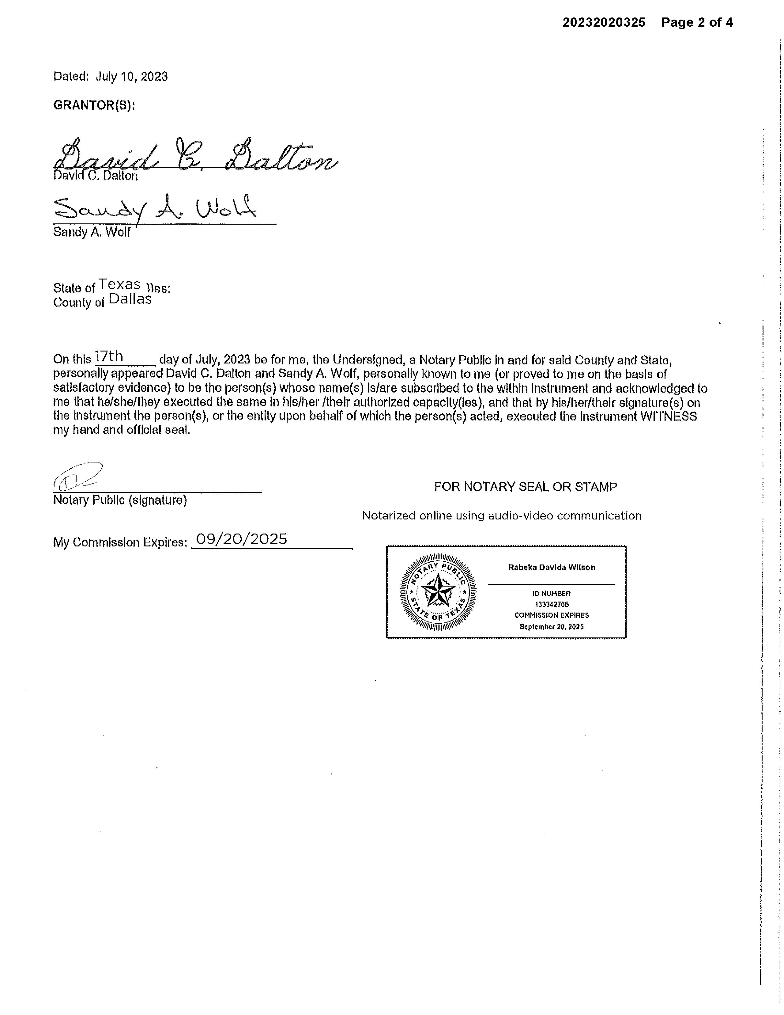 OWNER: WHITTEMORE KALLEN & JUSTIN  AFFIDAVIT    2023 2020325 07/21/2023