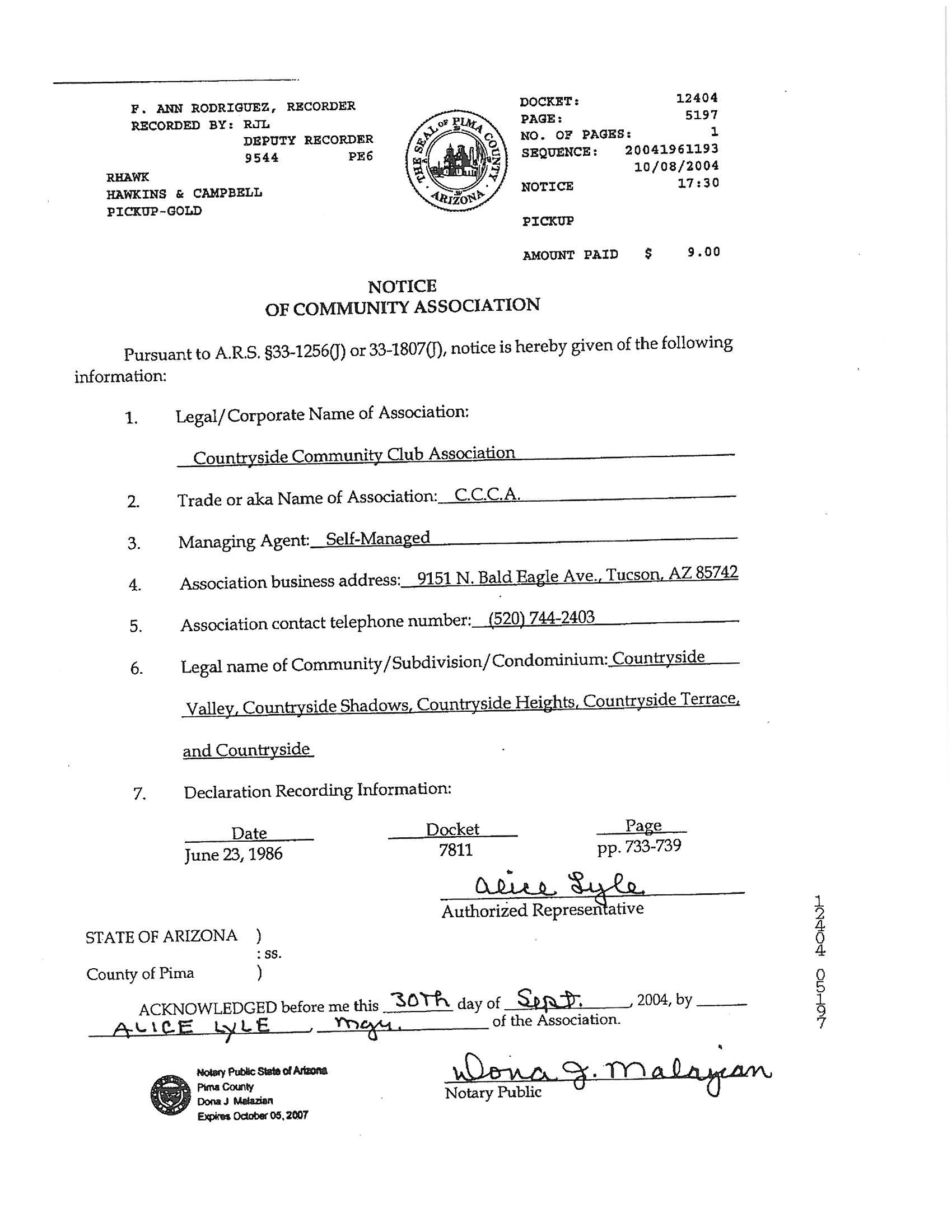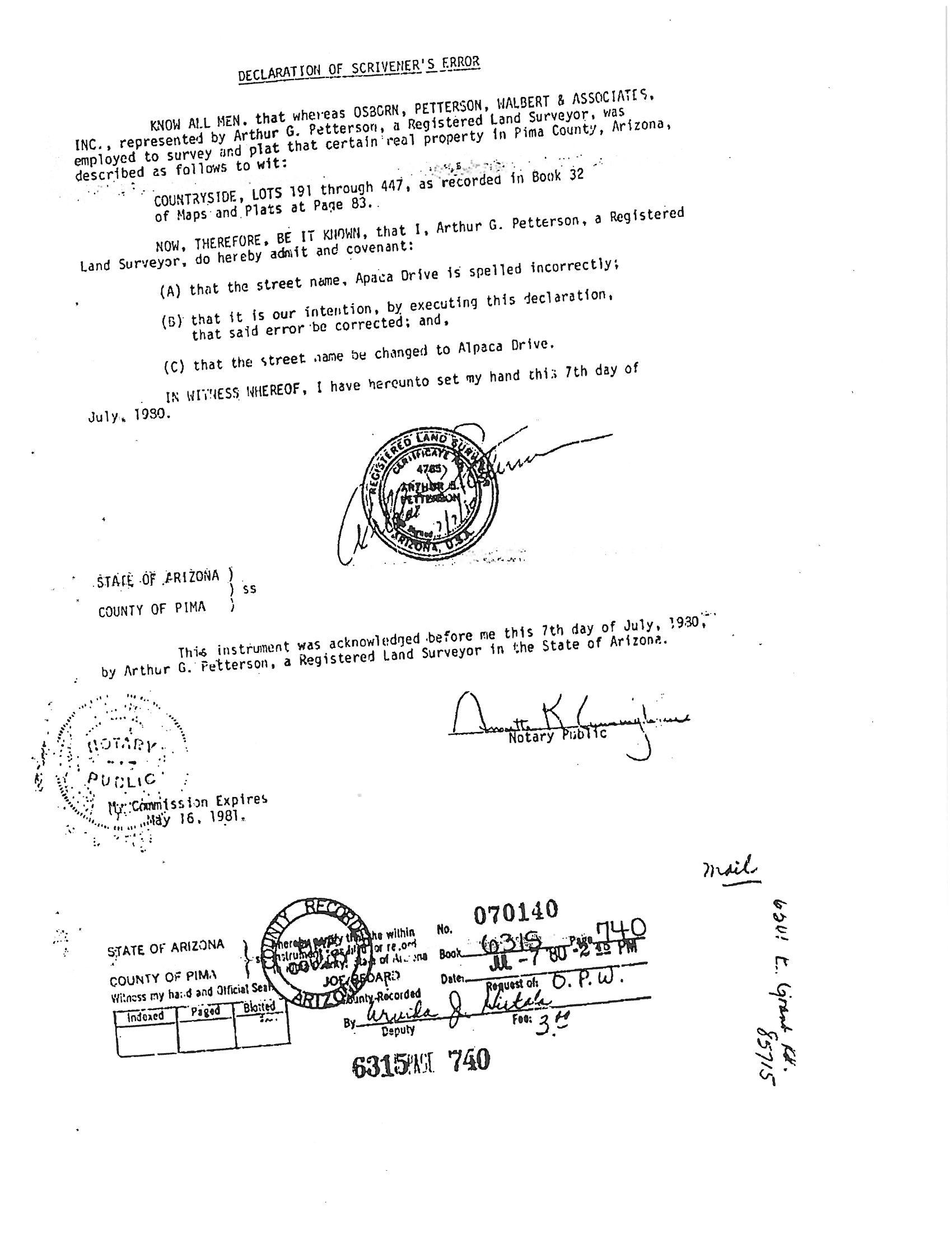 Mailing Address : 4761 W Waterbuck Dr, Tucson AZ 85742-9629 R029