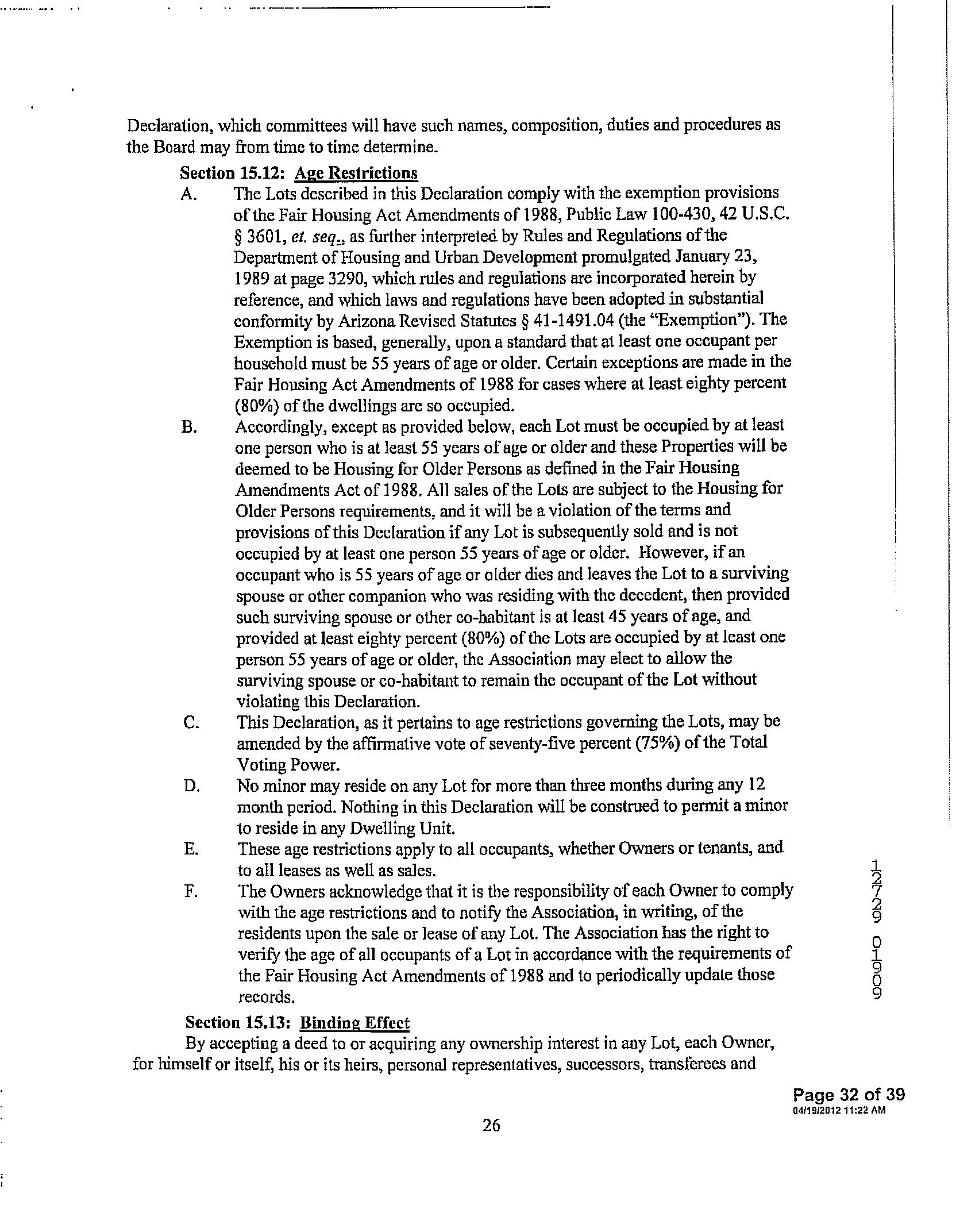 Restrictions indicating a preference, limitation or discrimination based on race, color, religion, sex, handicap, familial status, or national origin are hereby deleted to the extent such restrictions violate 42 USC 3604(c).