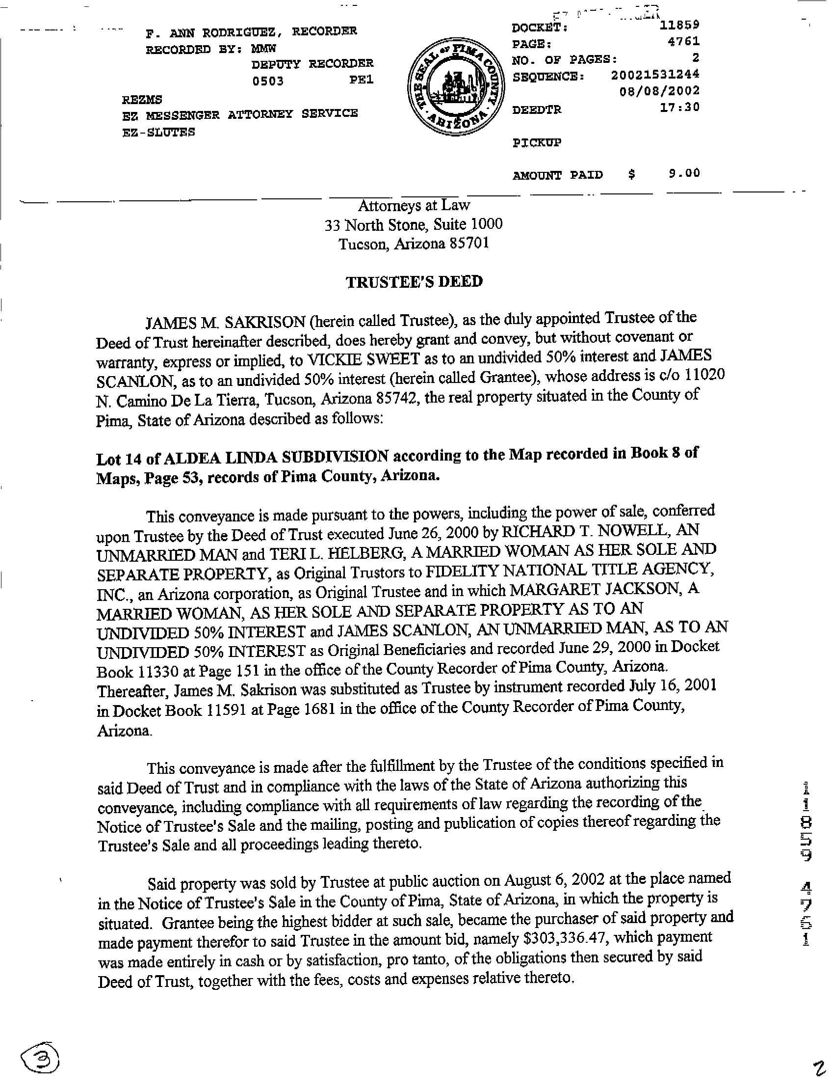 Prior Rec/Sale Date : 10/11/2001 / 10/10/2001