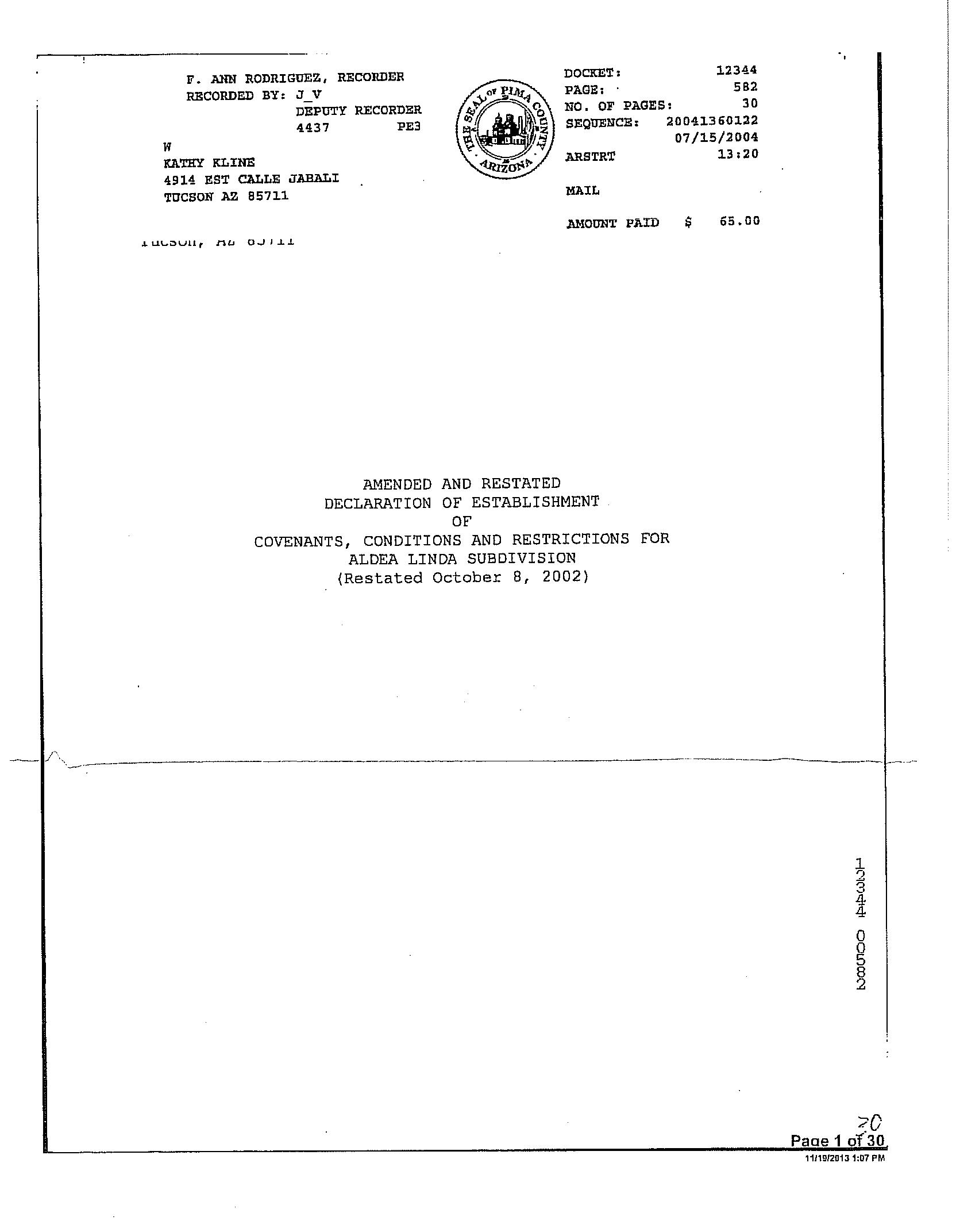 Prior Rec/Sale Date : 10/11/2001 / 10/10/2001