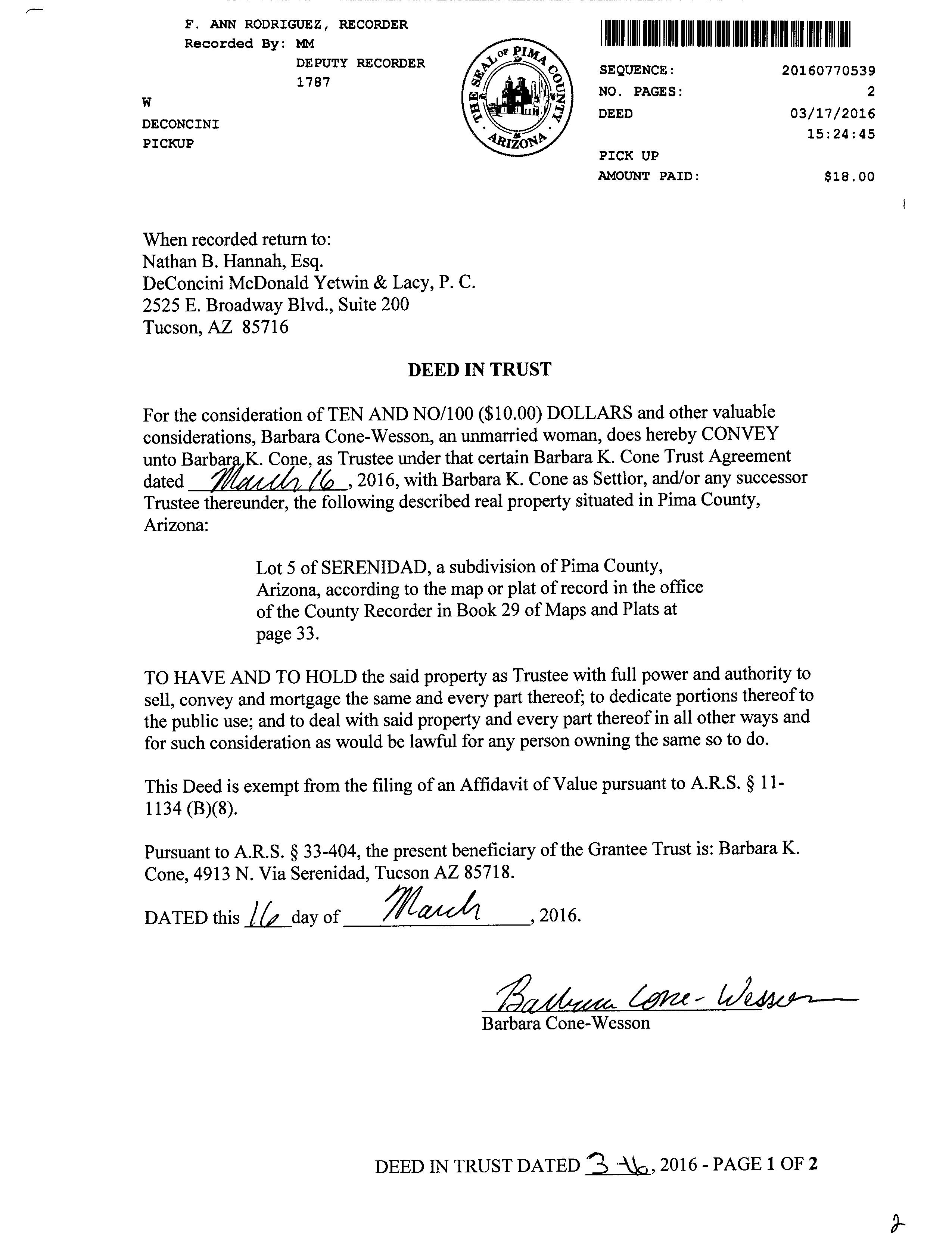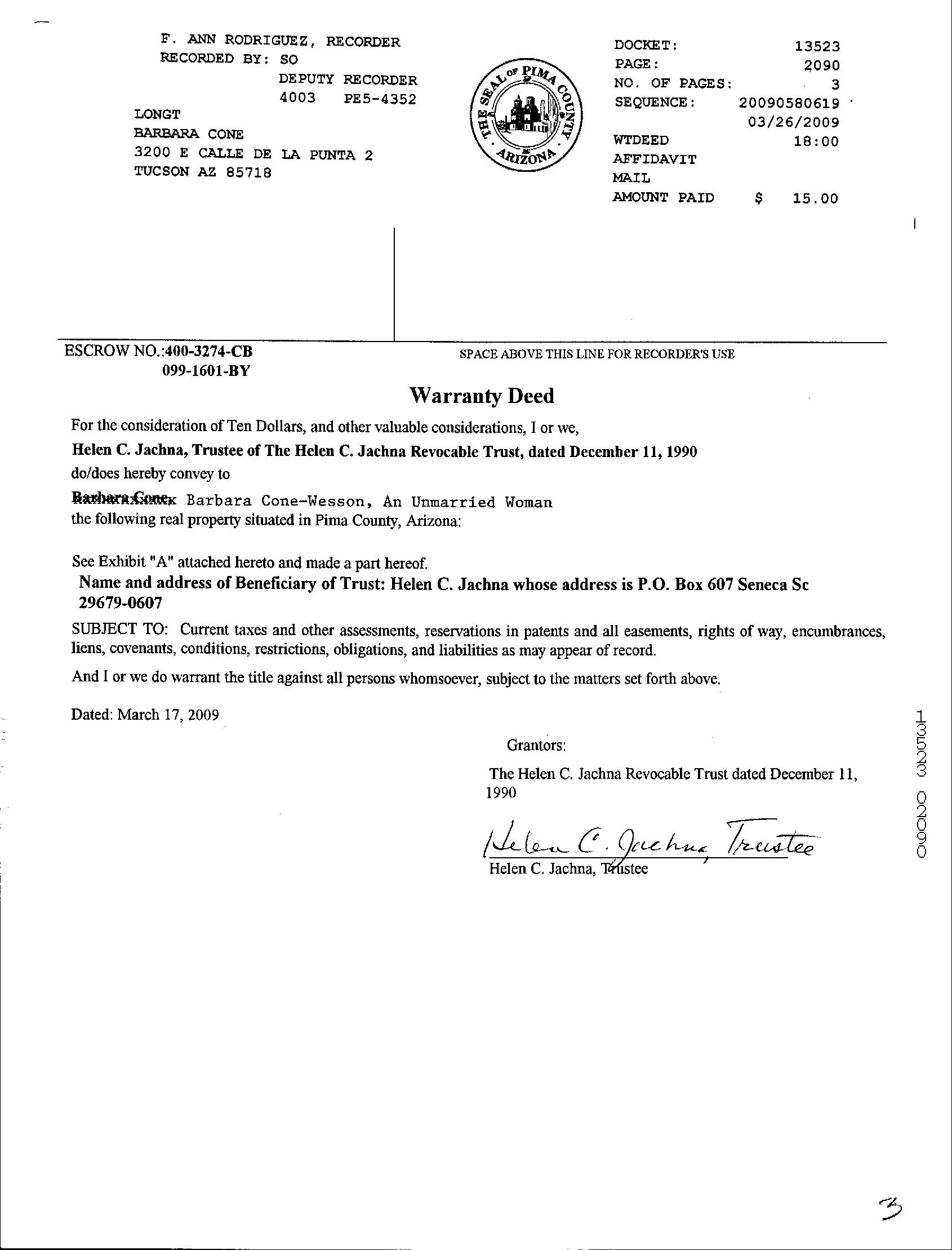OWNER: CONE-WESSON BARBARA 13523 2090 03/26/2009