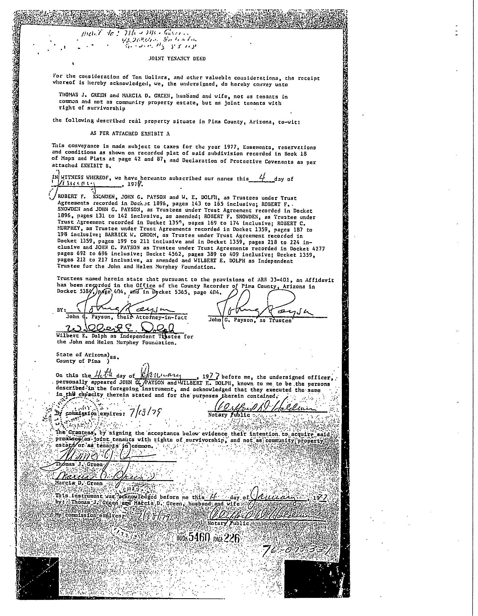 Mailing Address : 4913 N Via Serenidad, Tucson AZ 85718-5717 C034