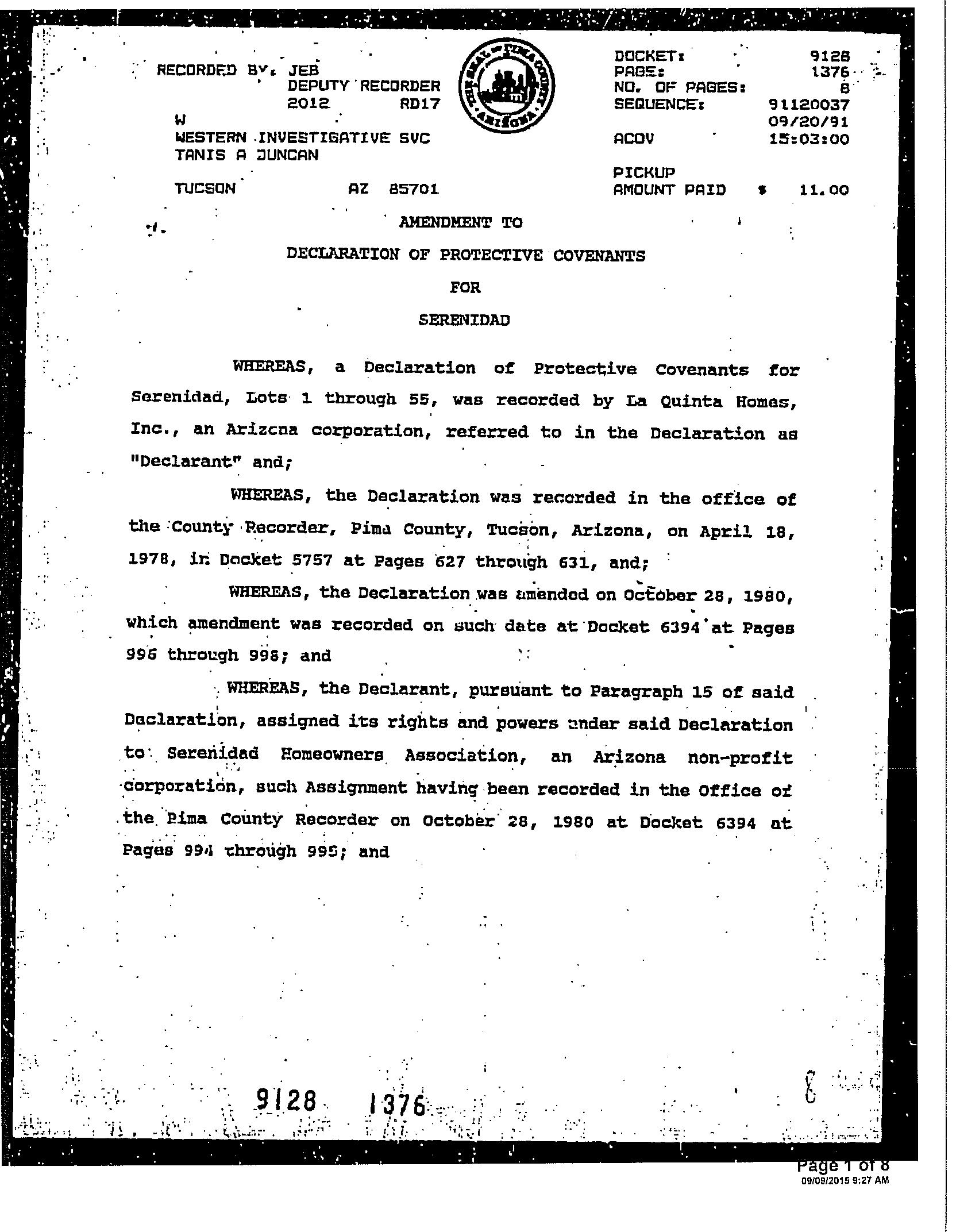 Mailing Address : 4913 N Via Serenidad, Tucson AZ 85718-5717 C034