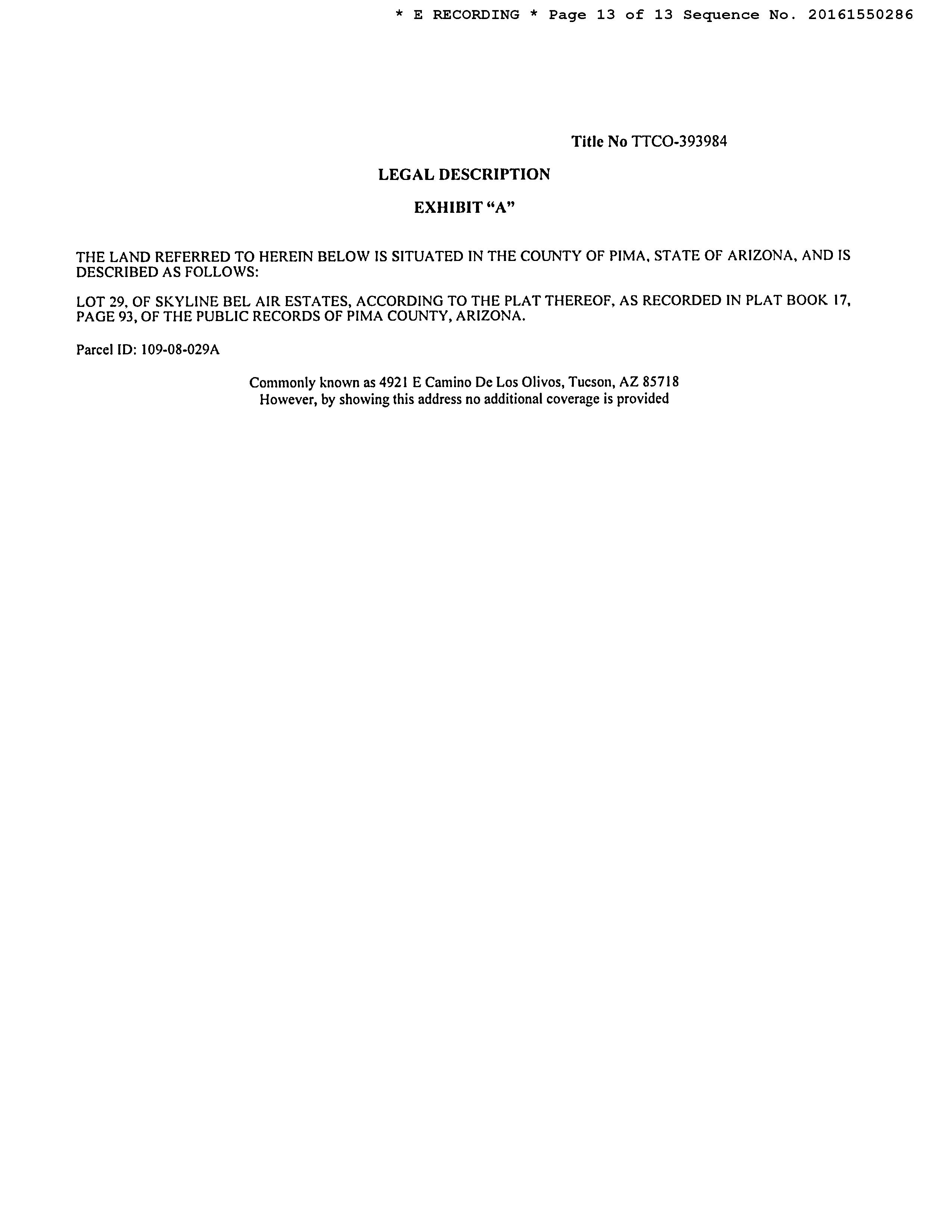MAIL: 4921 E CAMINO DE LOS OLIVOS TUCSON AZ 85718-3717