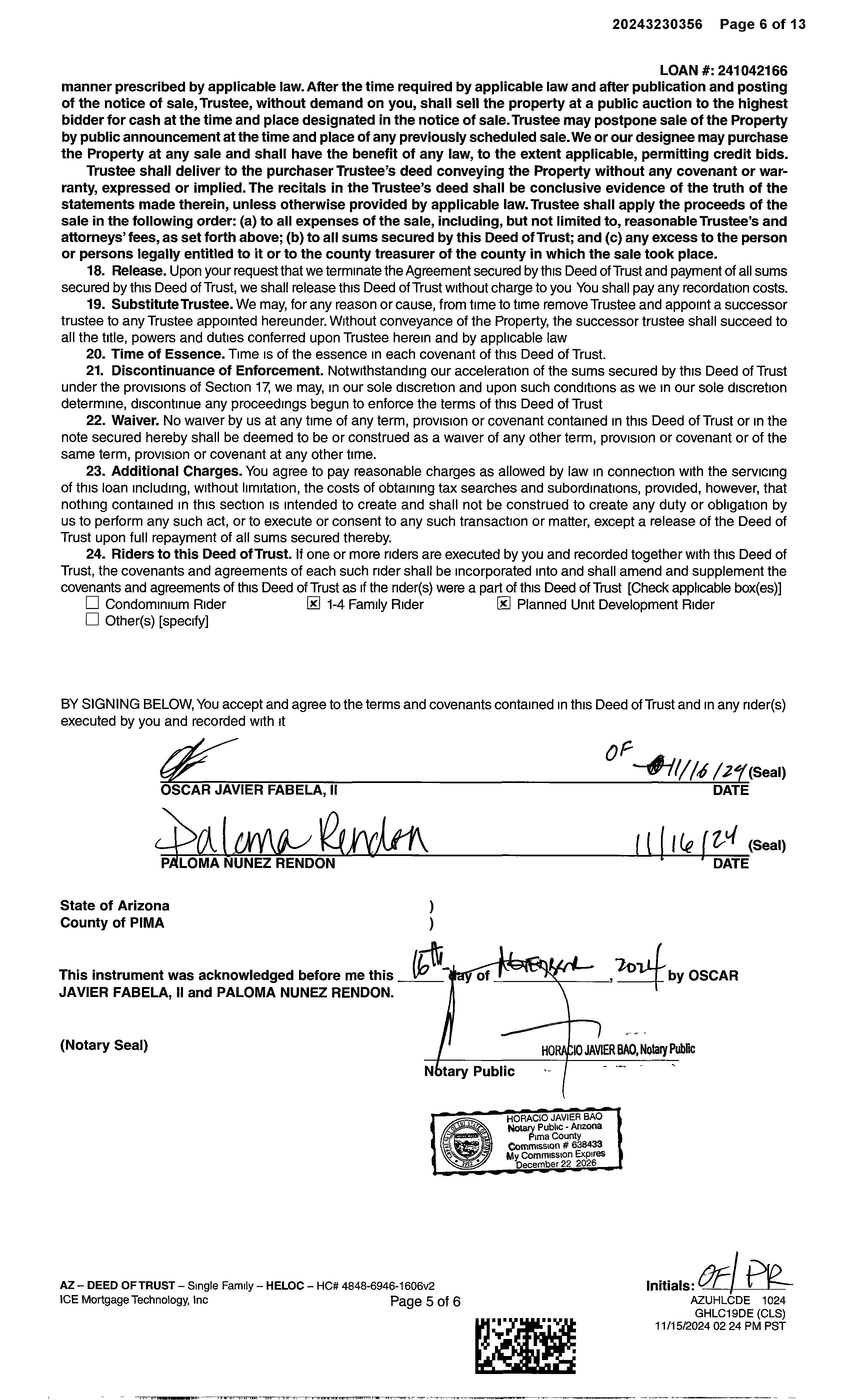 Owners Name: Address: FABELA OSCAR JAVIER II & RENDON PALOMA NUNEZ CP/RS 4991 E WASH OVERLOOK DR