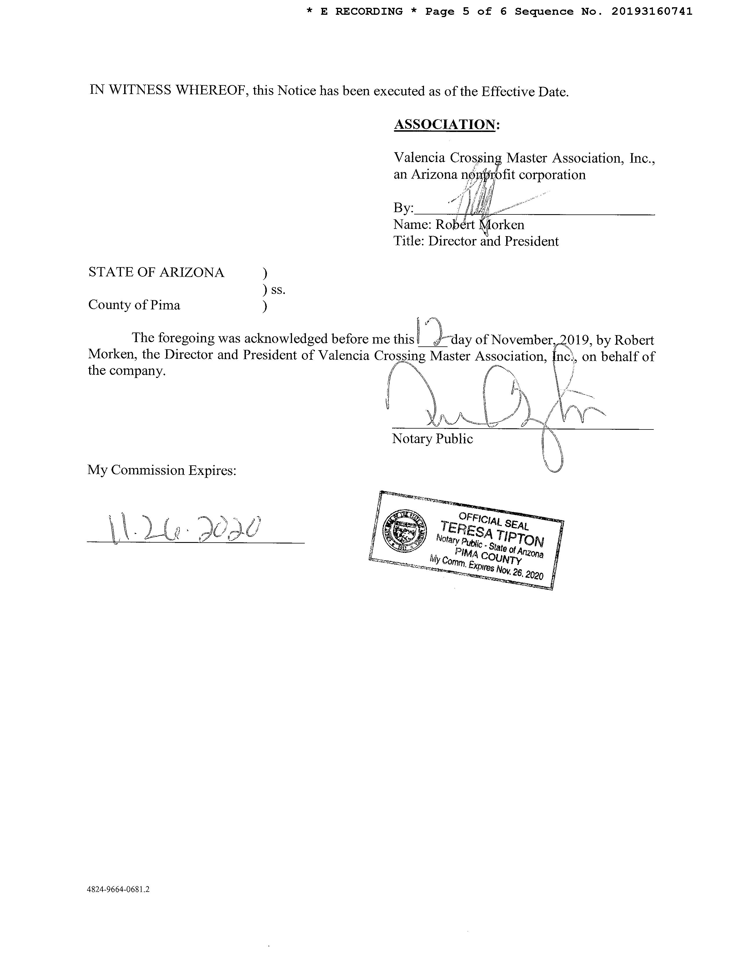 Mailing Address : 4991 E Wash Overlook Dr, Tucson AZ 85706-0111 C016