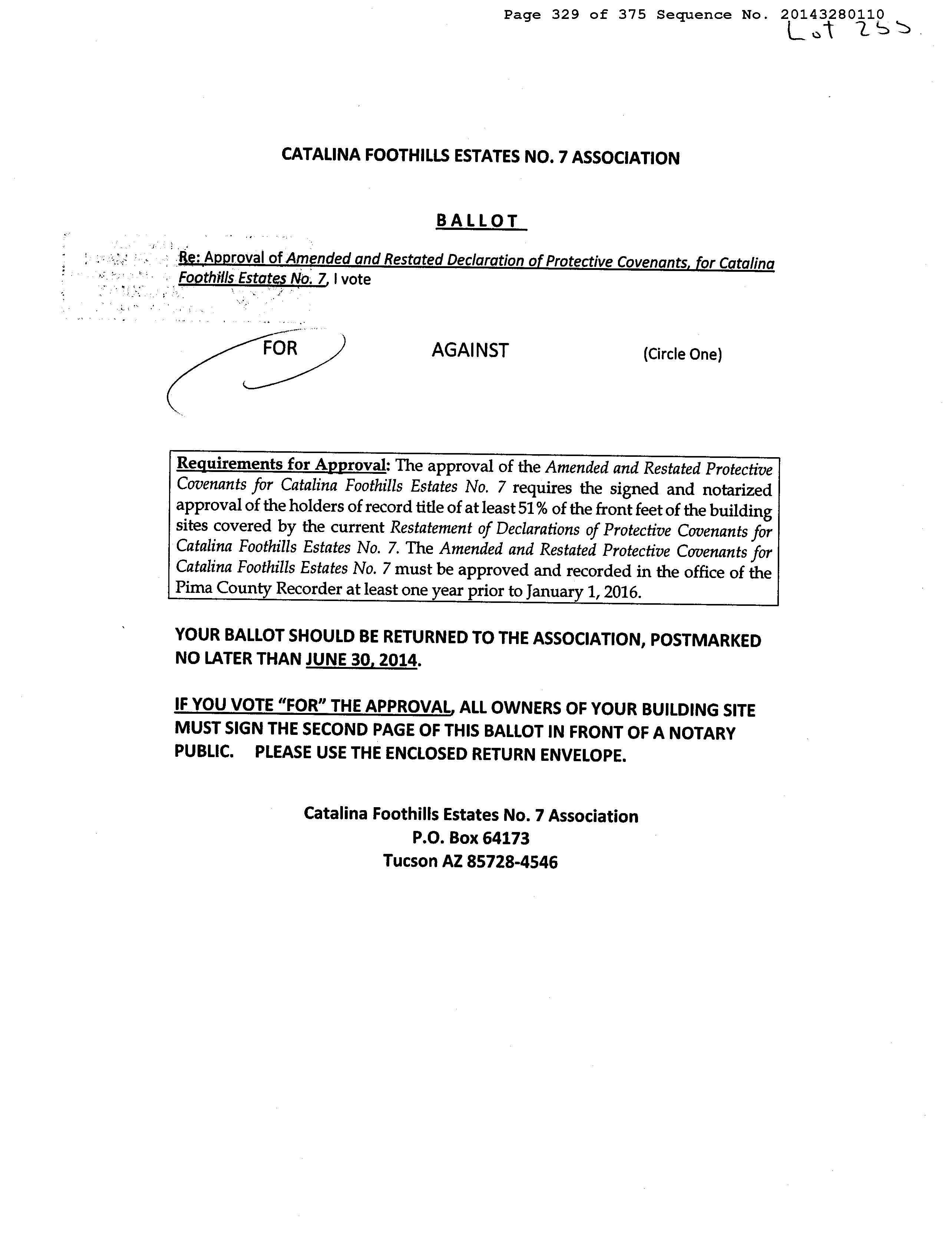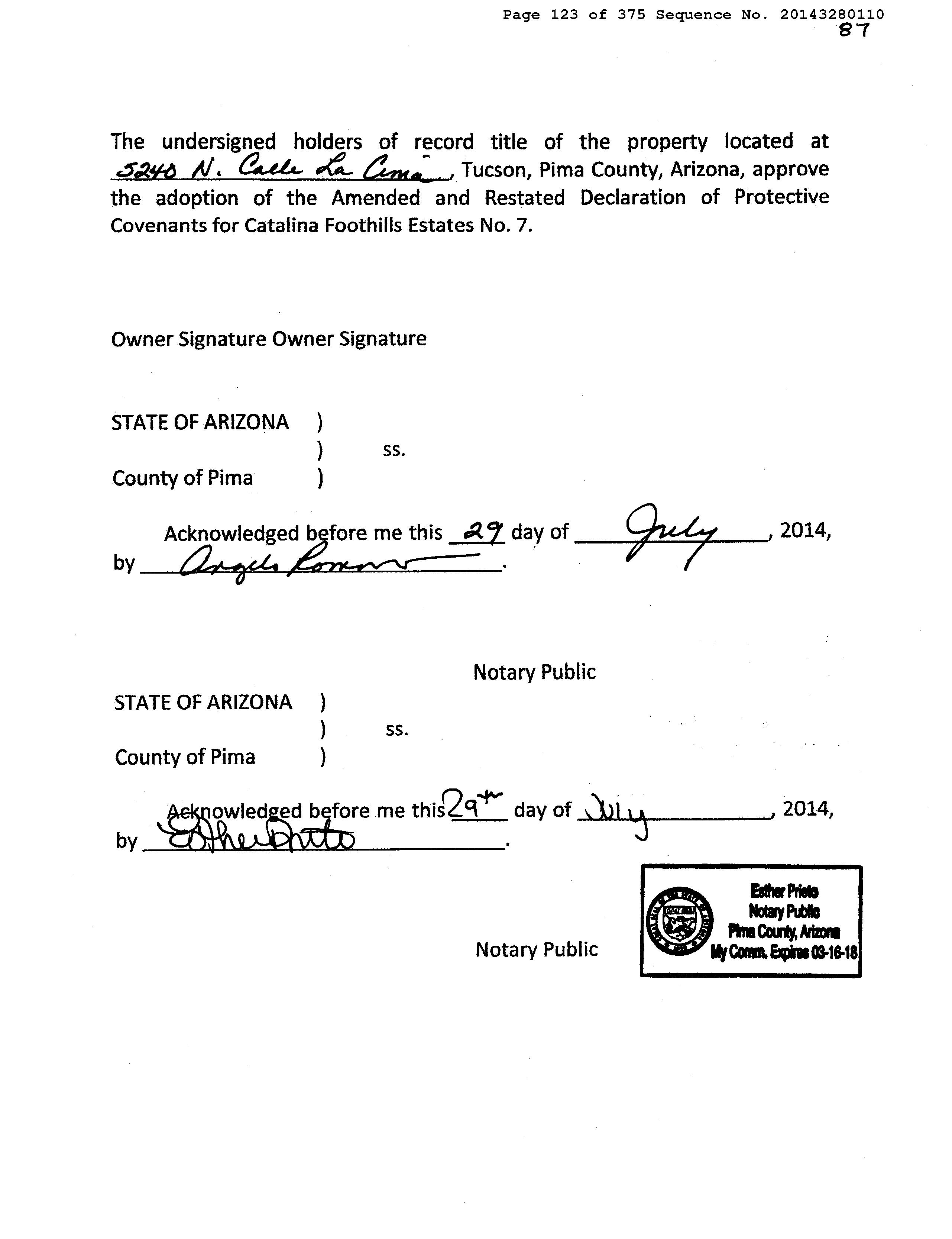 Mailing Address : 5025 N Entrada Cuarta, Tucson AZ 85718-5820 C034