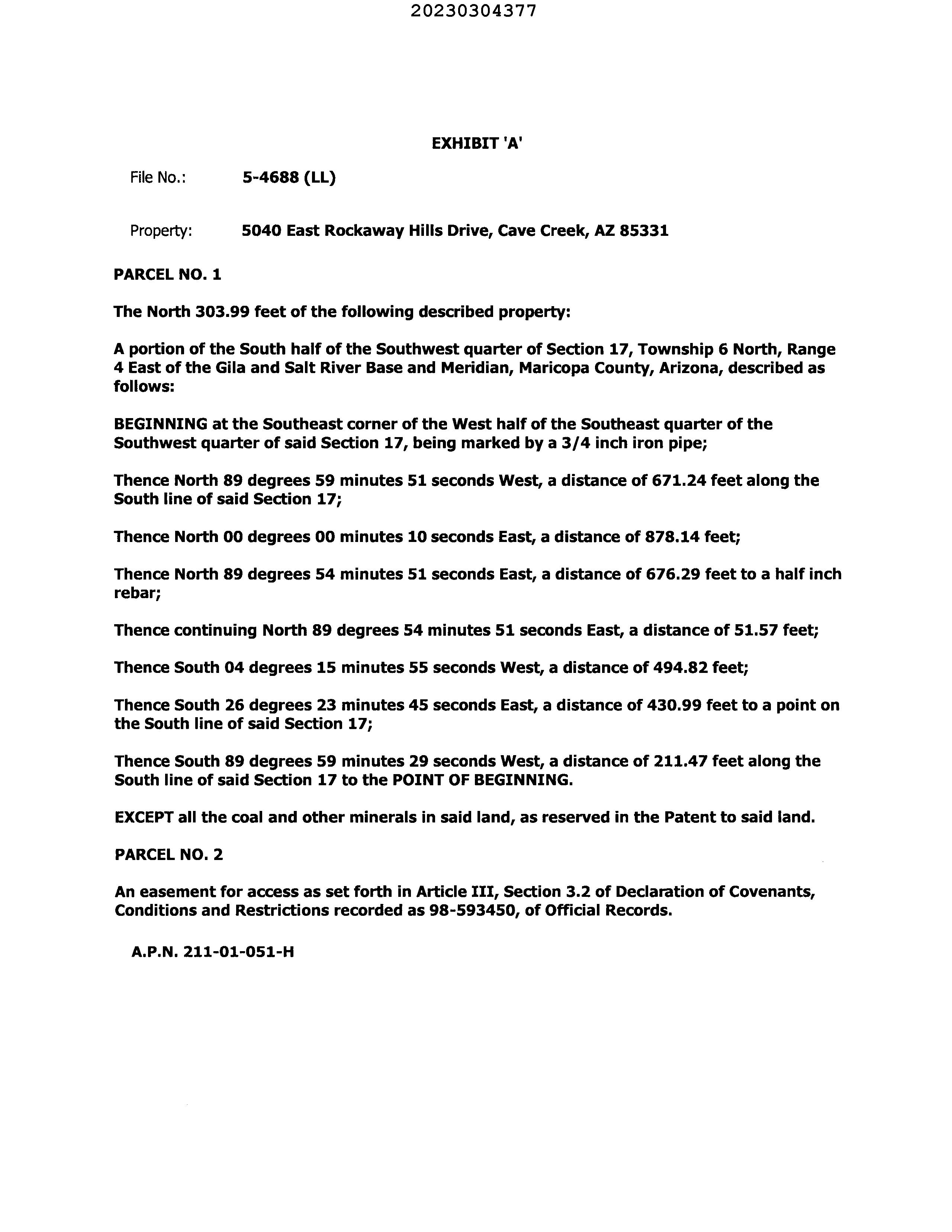 5040 E Rockaway Hills Dr Cave Creek AZ 85331 APN: 211-01-051-H