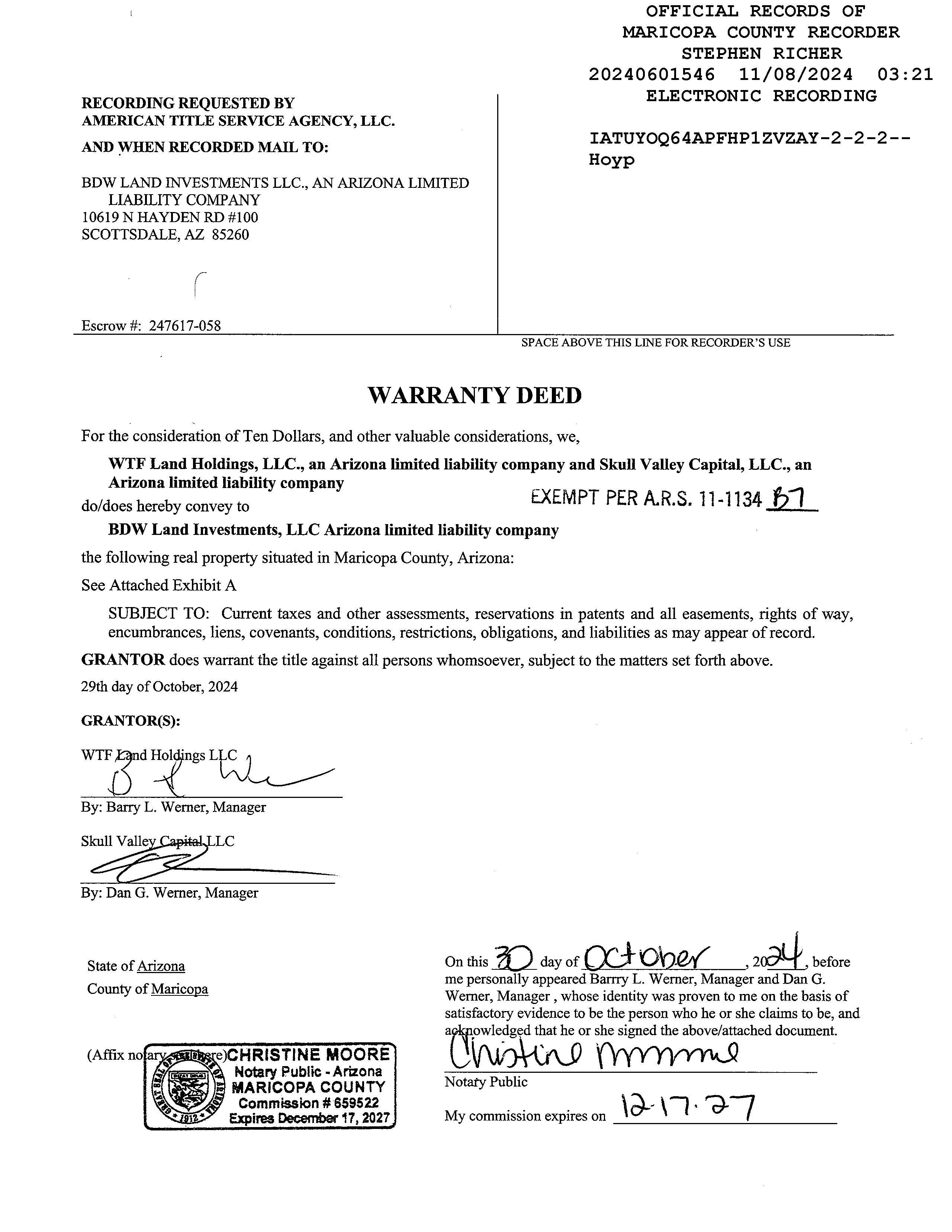 OWNER: BDW LAND INVESTMENTS LLC 2024 601546 11/08/2024