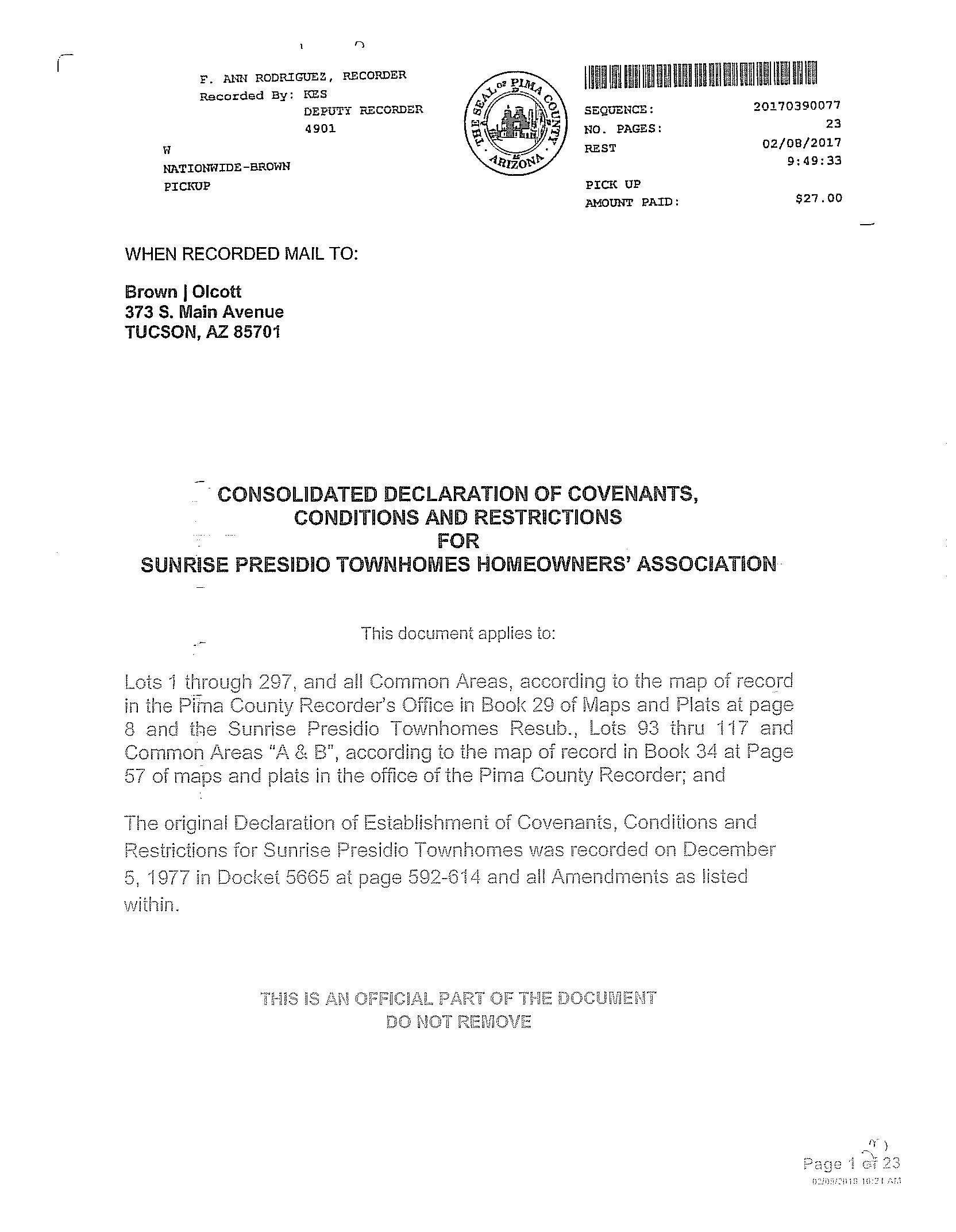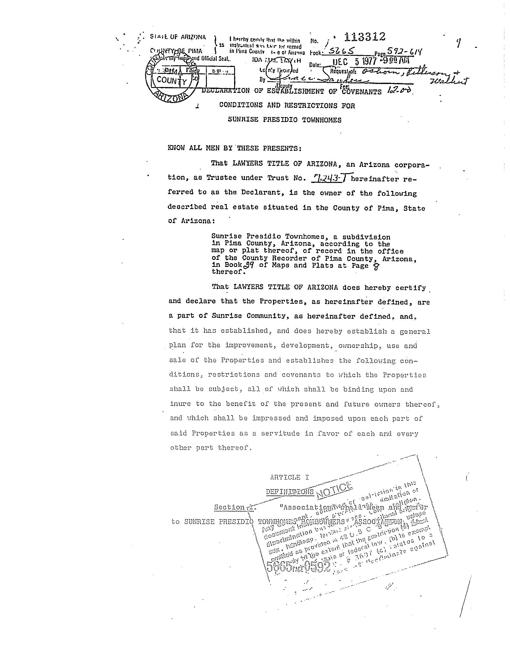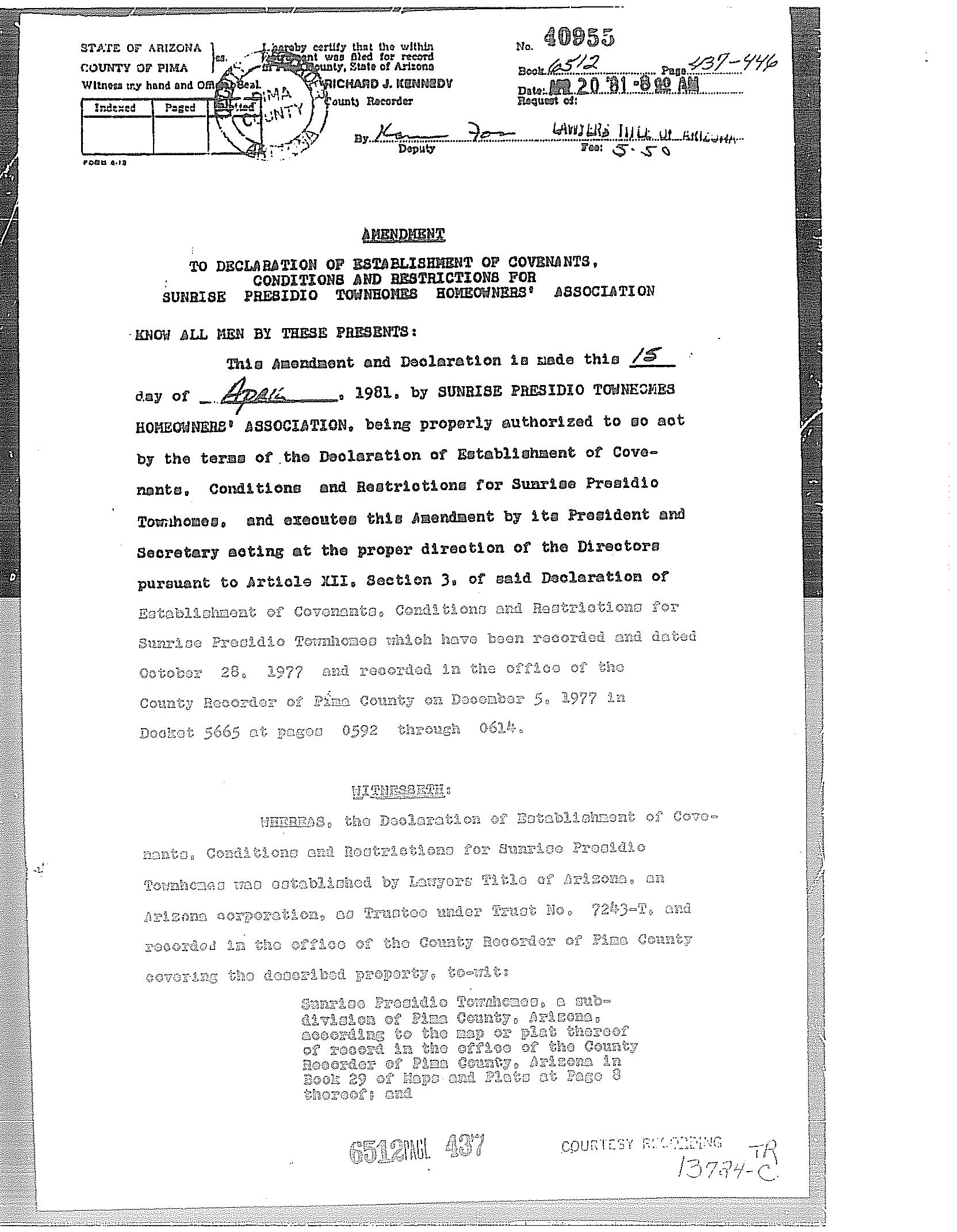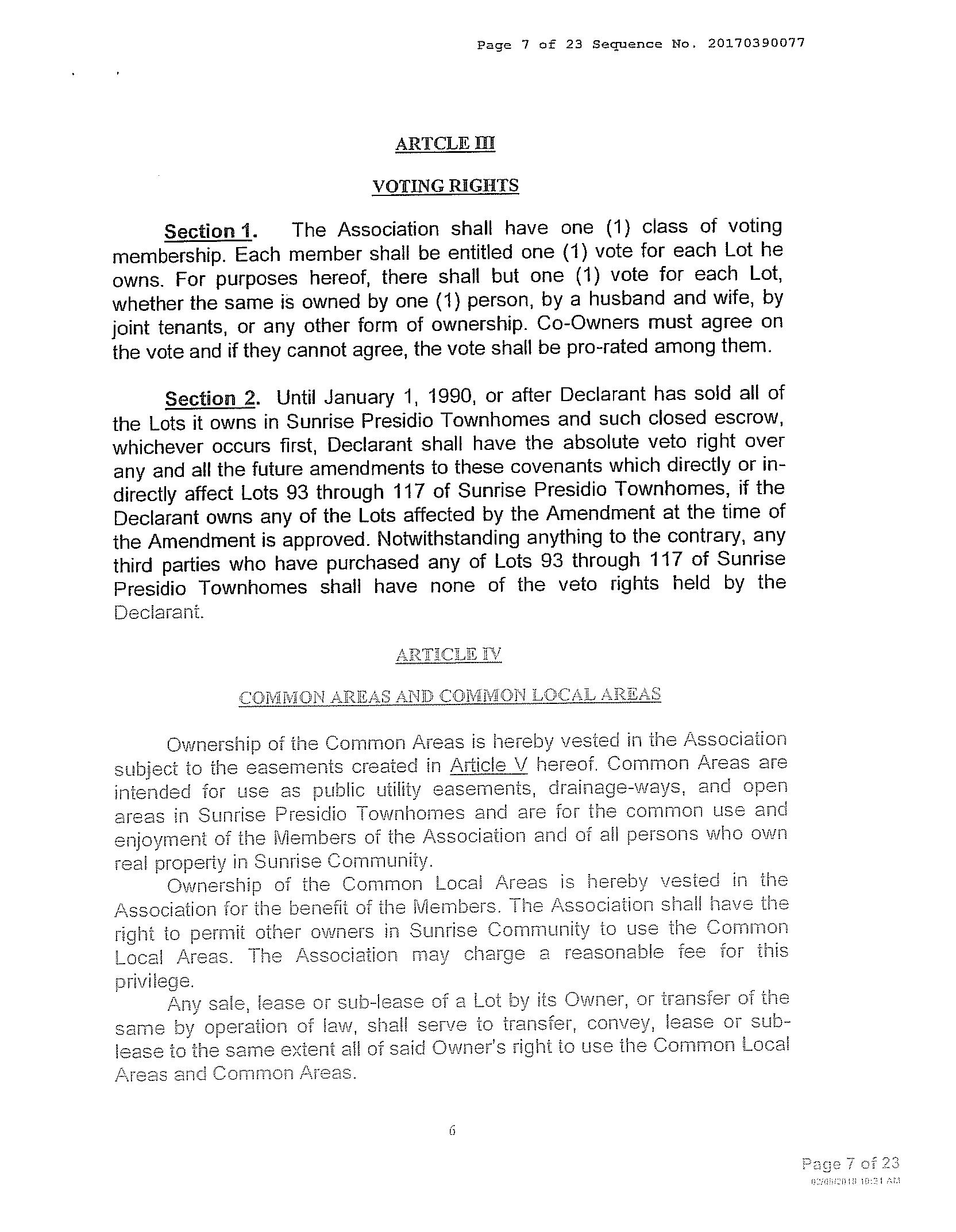Subdivision: Sunrise Presidio Townhomes Tract #: