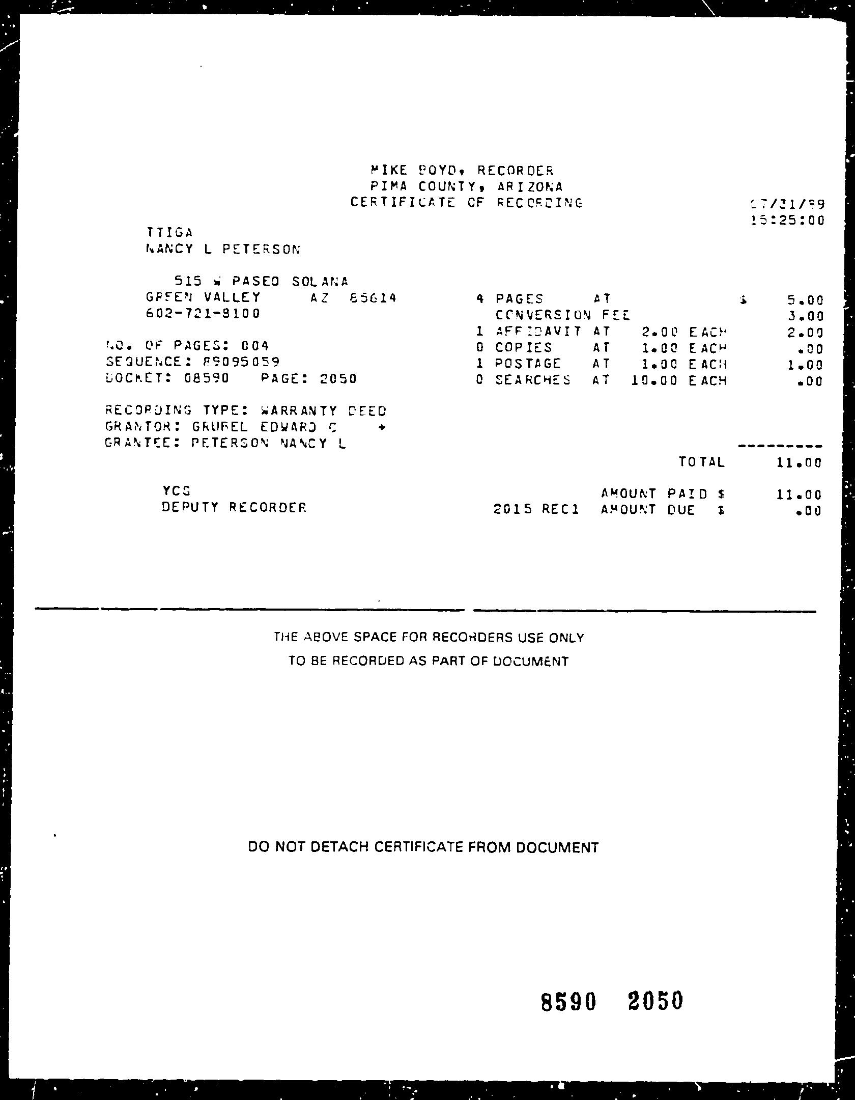OWNER: PETERSON NANCY L 8590 2064 07/31/1989