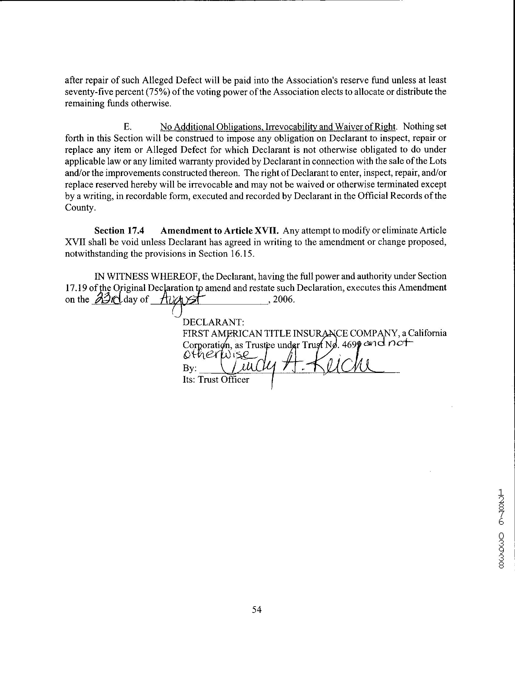 This report is not an insured product or service or a representation of the condition of title to real property. It is not an abstract, legal opinion, opinion of title, title insurance commitment or preliminary report, or any form of Title Insurance or Guaranty. This report is issued exclusively for the benefit of the Applicant therefor and may not be used or relied upon by any other person. This report may not be reproduced in any manner without First Americans prior written consent. First American does not represent or warrant that the information herein is complete or free from error, and the information herein is provided without any warranties of any kind, as-is, and with all faults. As a material part of the consideration given in exchange for the issuance of this report, recipient agrees that First Americans sole liability for any loss or damage caused by an error or omission due to inaccurate information or negligence in preparing this report shall be limited to the fee charged for the report. Recipient accepts this report with this limitation and agrees that First American would not have issued this report but for the limitation of liability described above. First American makes no representation or warranty as to the legality or propriety of recipient's use of the information herein.
