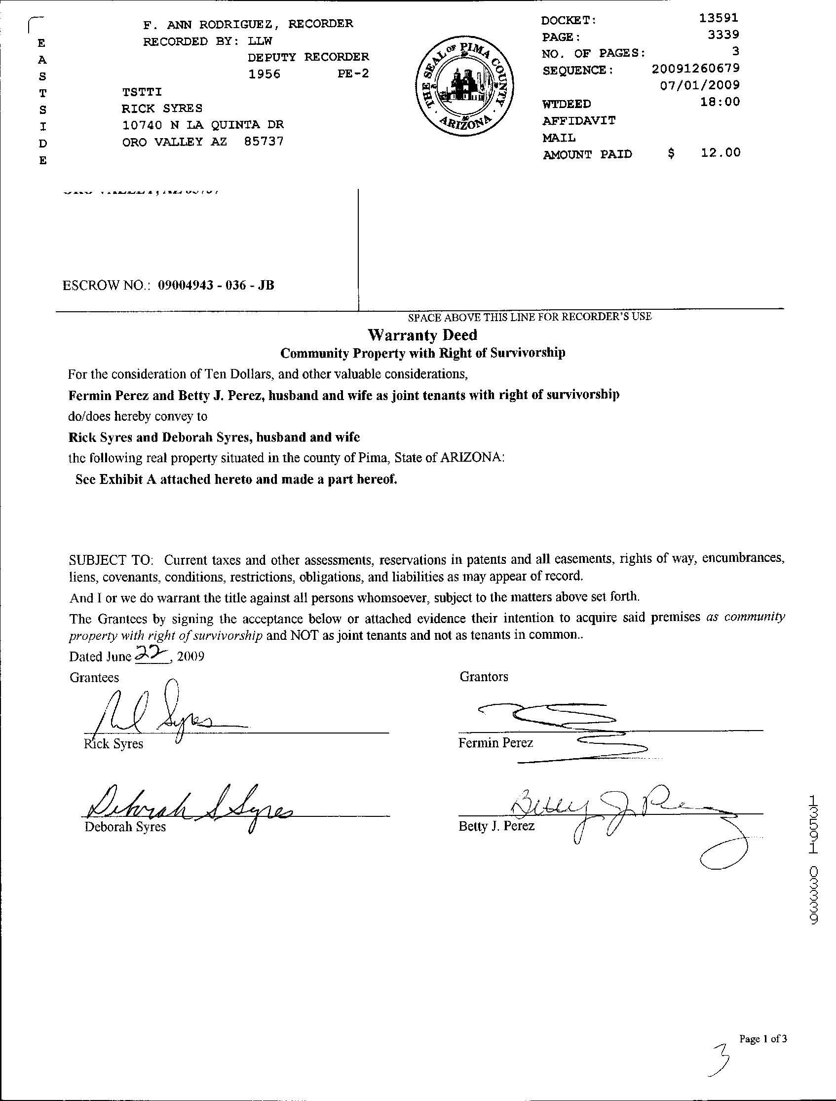 13591 3339 WD PEREZ FERMIN/BETTY J ADDITIONAL PROPERTY INFORMATION STANDARD LAND USE: SFR