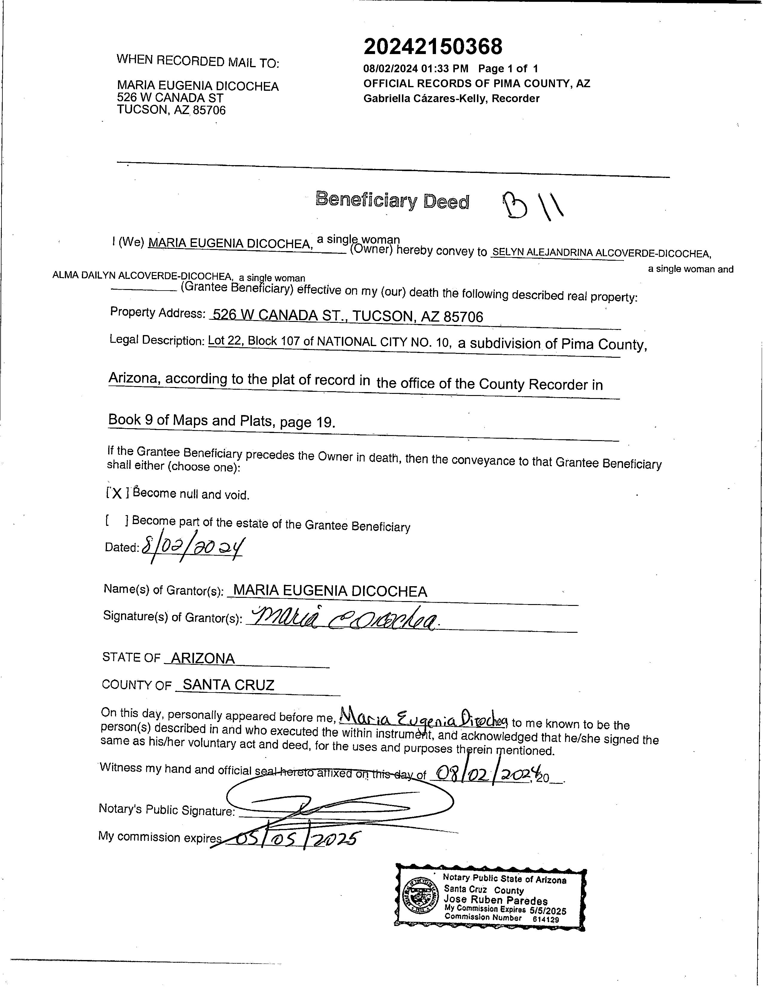 Owner Name: Dicochea Maria / APN / Alternate APN: 137-06-1350 / Deed Type: Warranty Deed