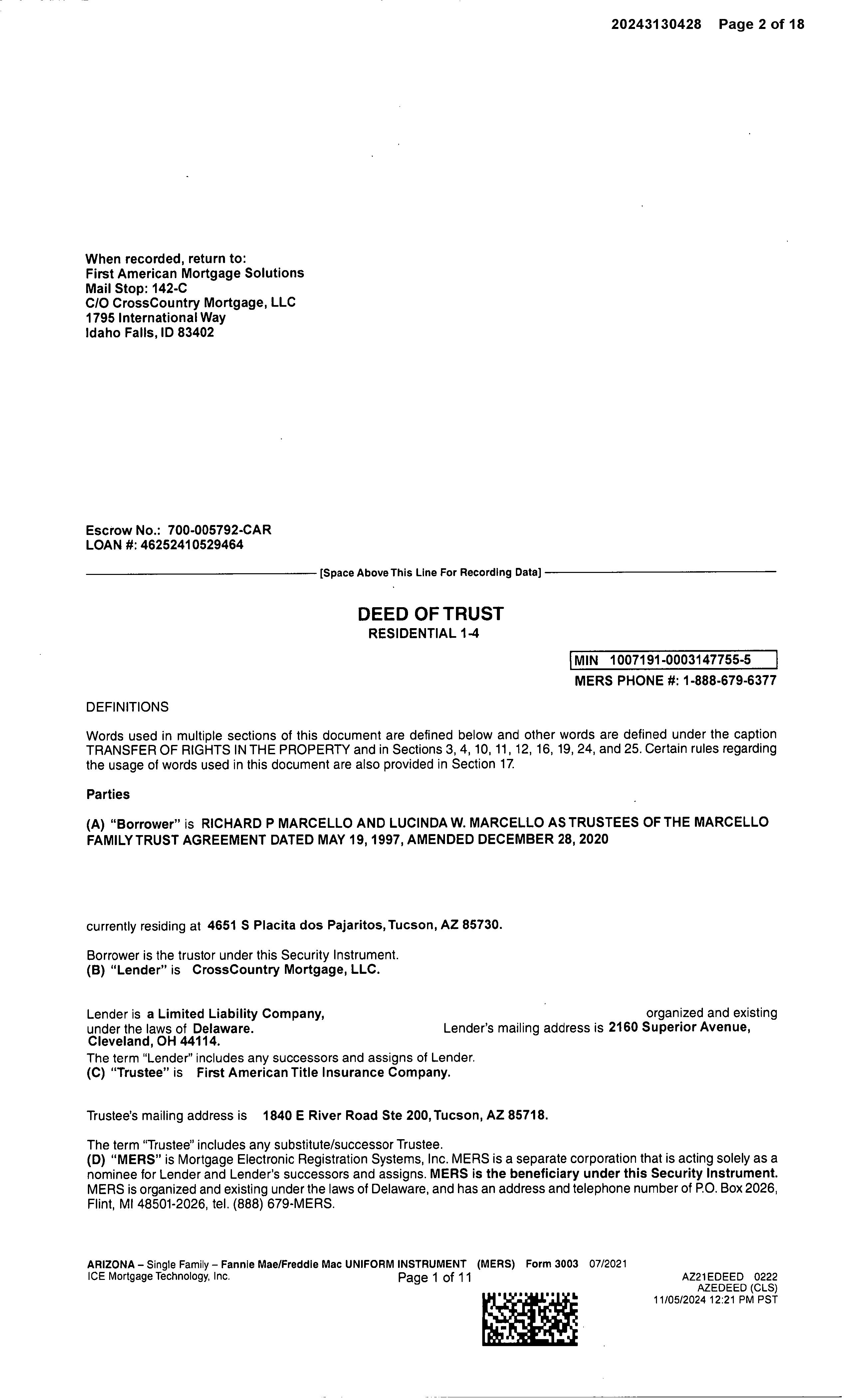 OWNER: MARCELLO FAMILY TRUST & MAR
