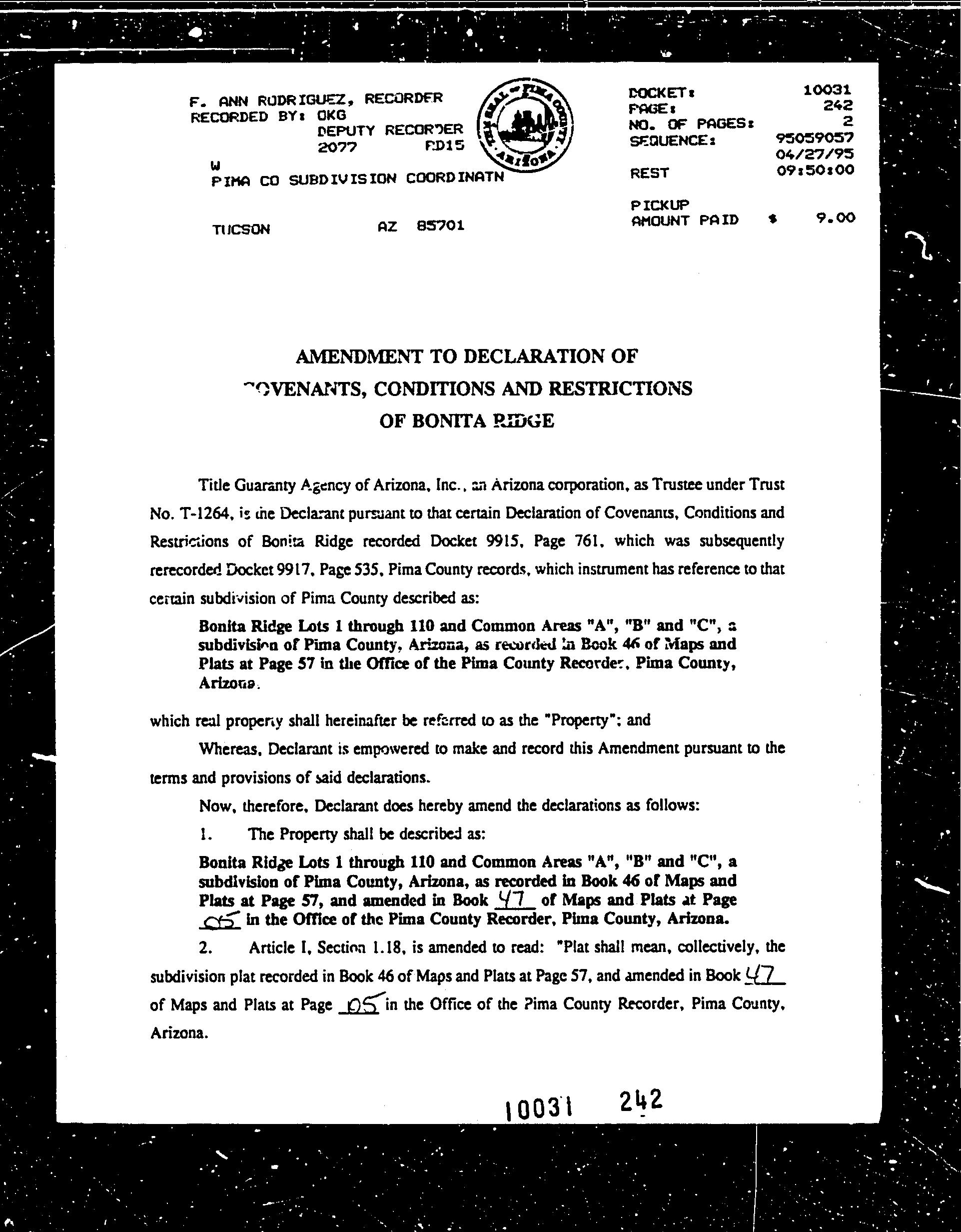 LEGAL: BONITA RIDGE AMENDED LOT 0107