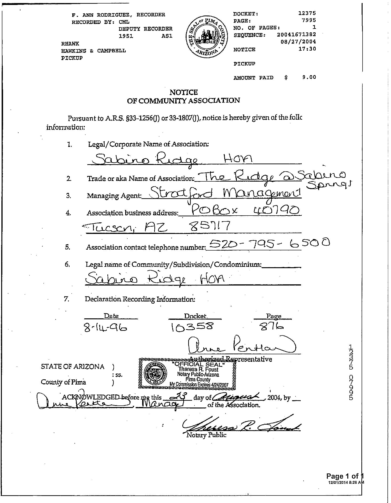 LEGAL: SABINO RIDGE AT SABINO SPRINGS LOT 0018