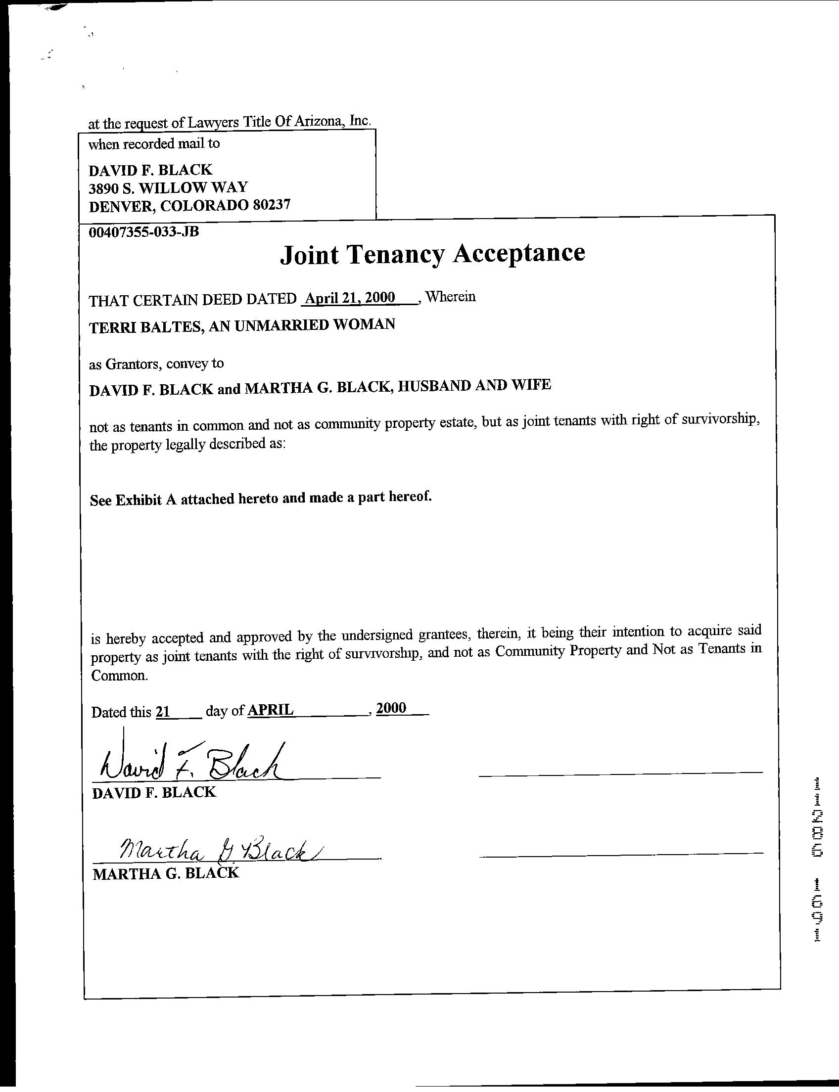 OWNER: BLACK DAVID F & MARTHA G JT/RS