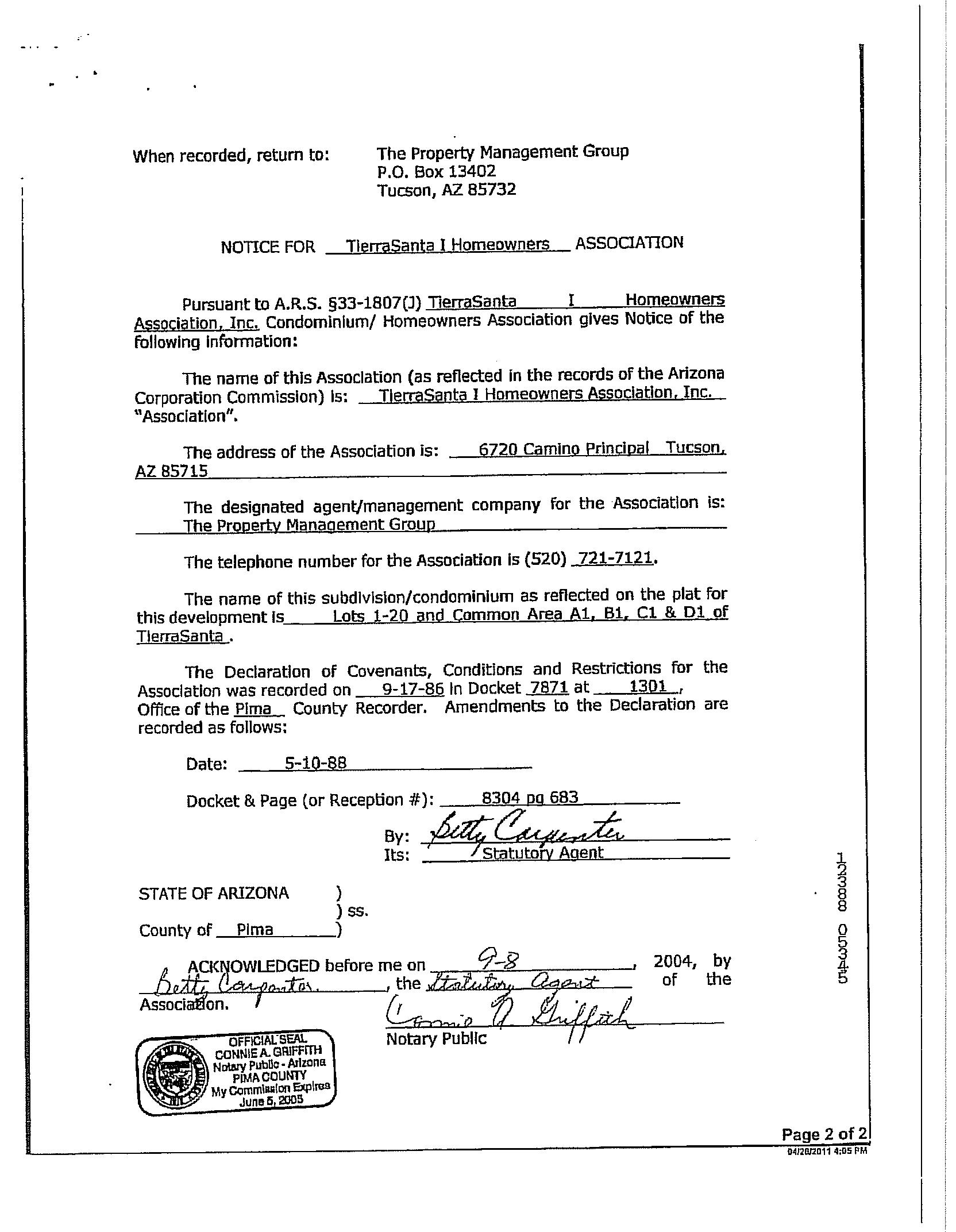Mailing Address : 5409 N Moccasin Trl, Tucson AZ 85750-6496 C063