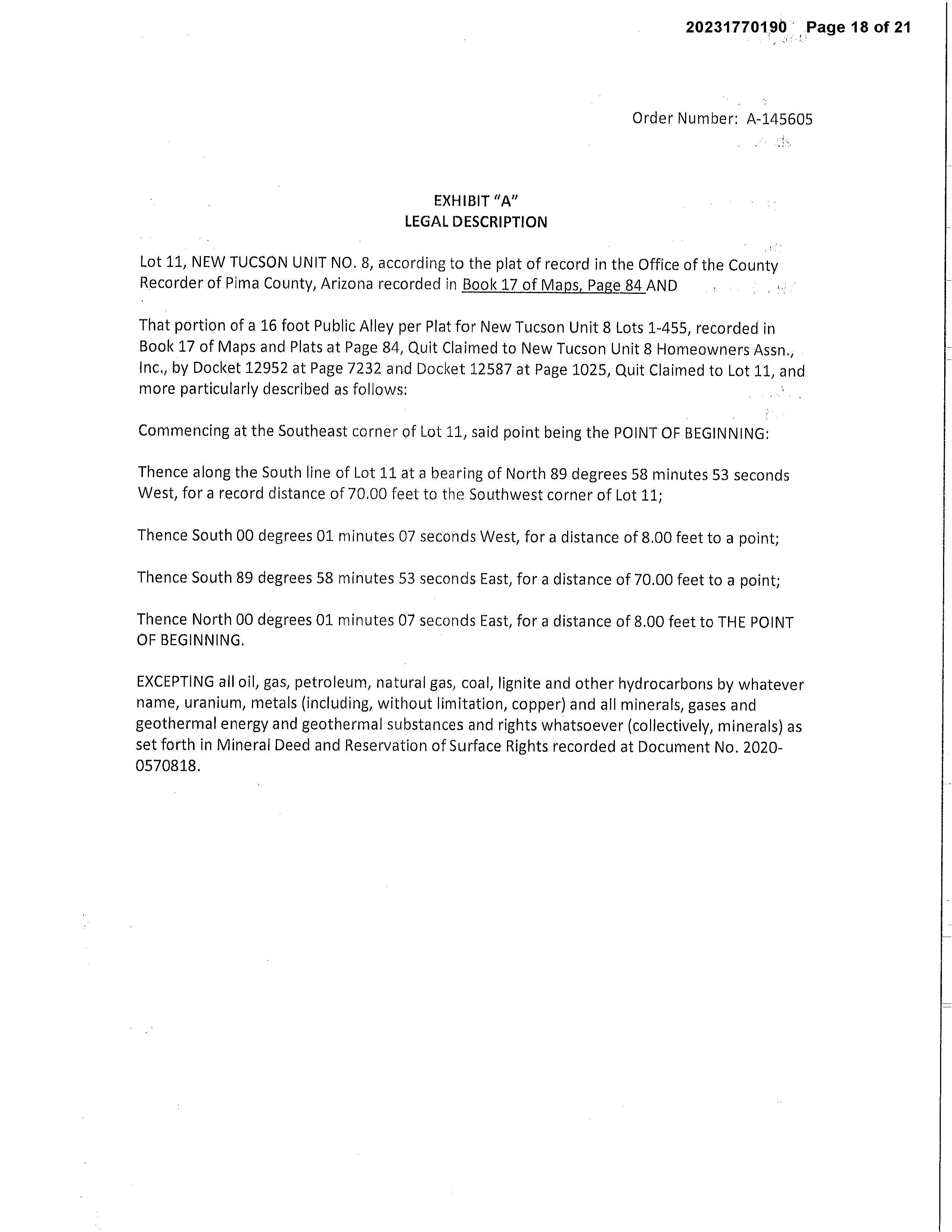 Legal Description : New Tucson Unit No 8 Lot 11 & Ptn Aband Alley Adj To Lot 11 Exc Mineral Rights Below 30-ft Lot 11