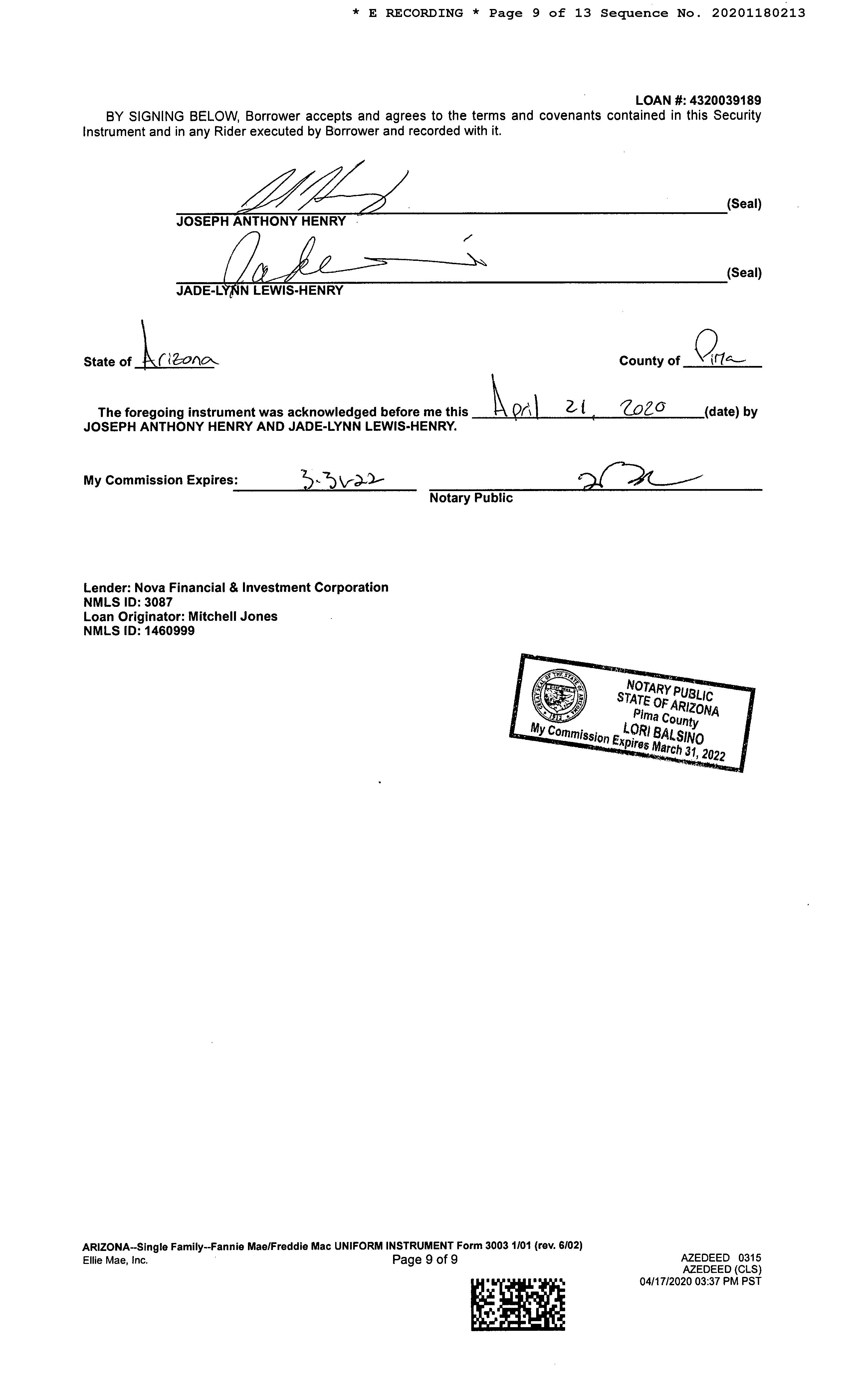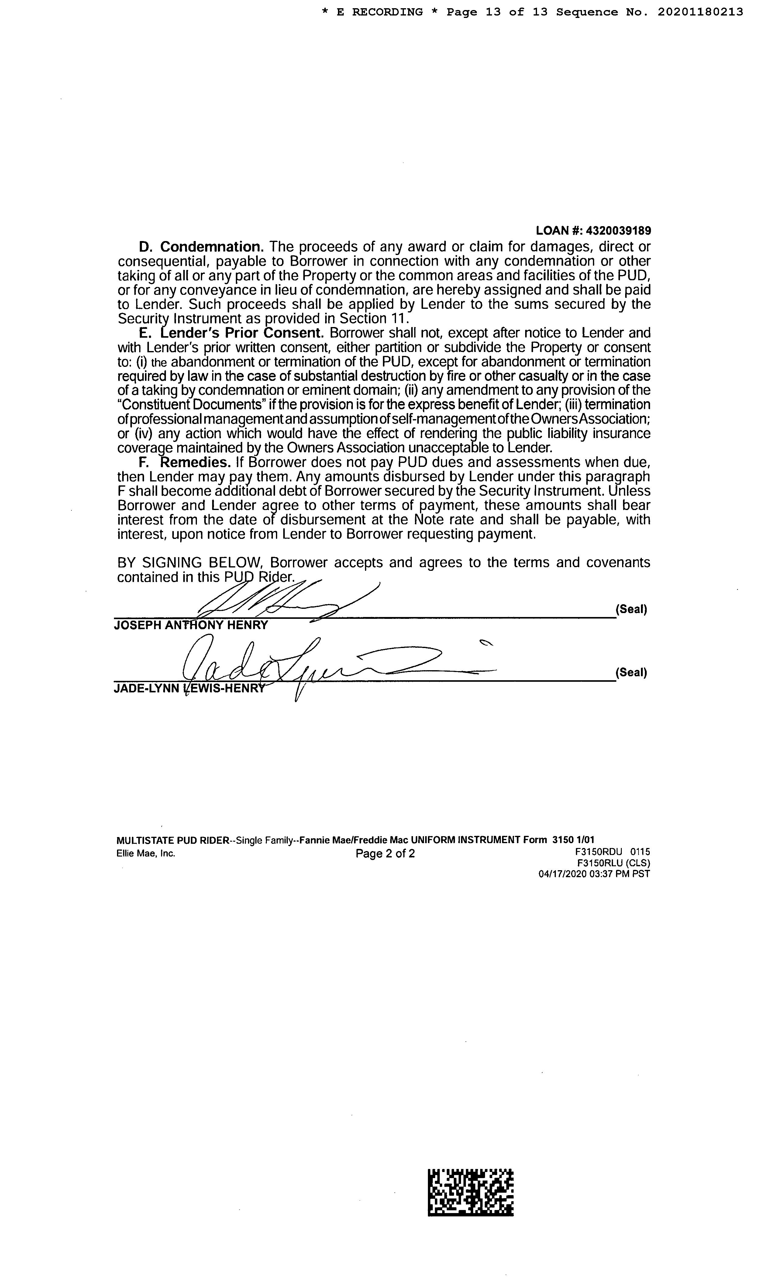 OWNER: HENRY JOSEPH ANTHONY & LEWI AFFIDAVIT 2019 1480611 05/28/2019