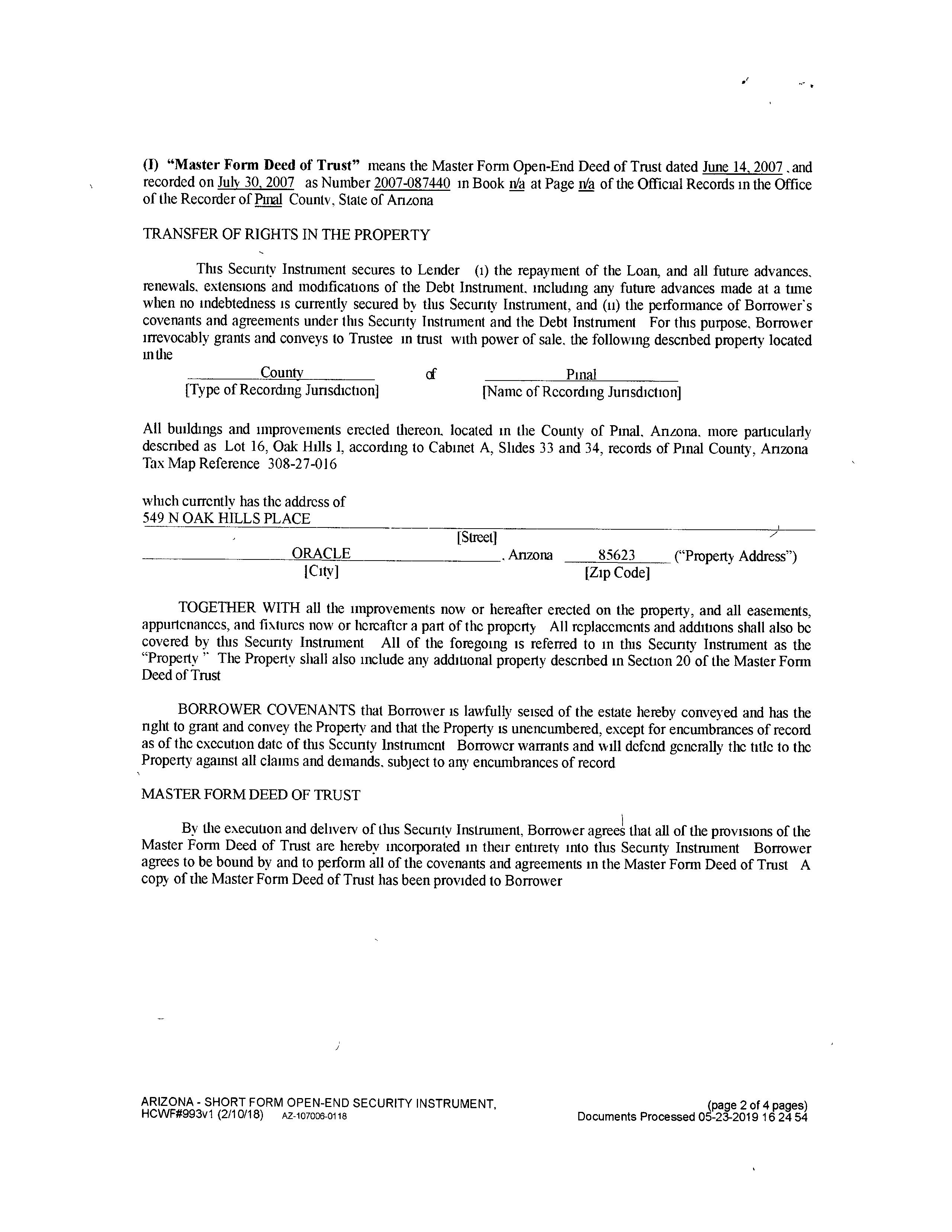 Subject Property : 549 N Oak Hills Pl Oracle AZ 85623