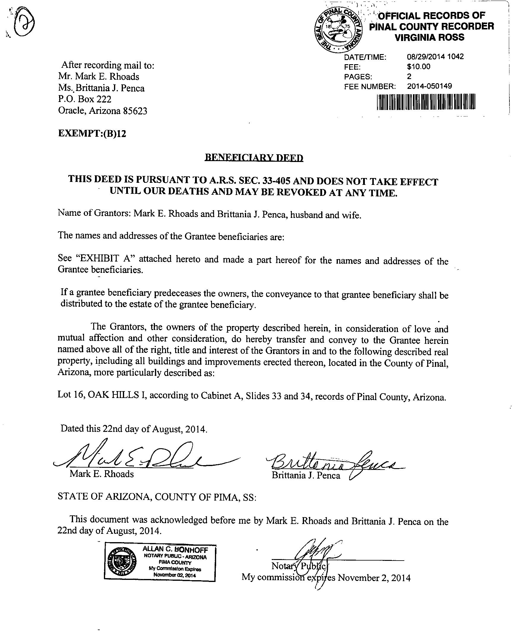 Owner Name: Rhoads Mark E /Rhoads Brittania J