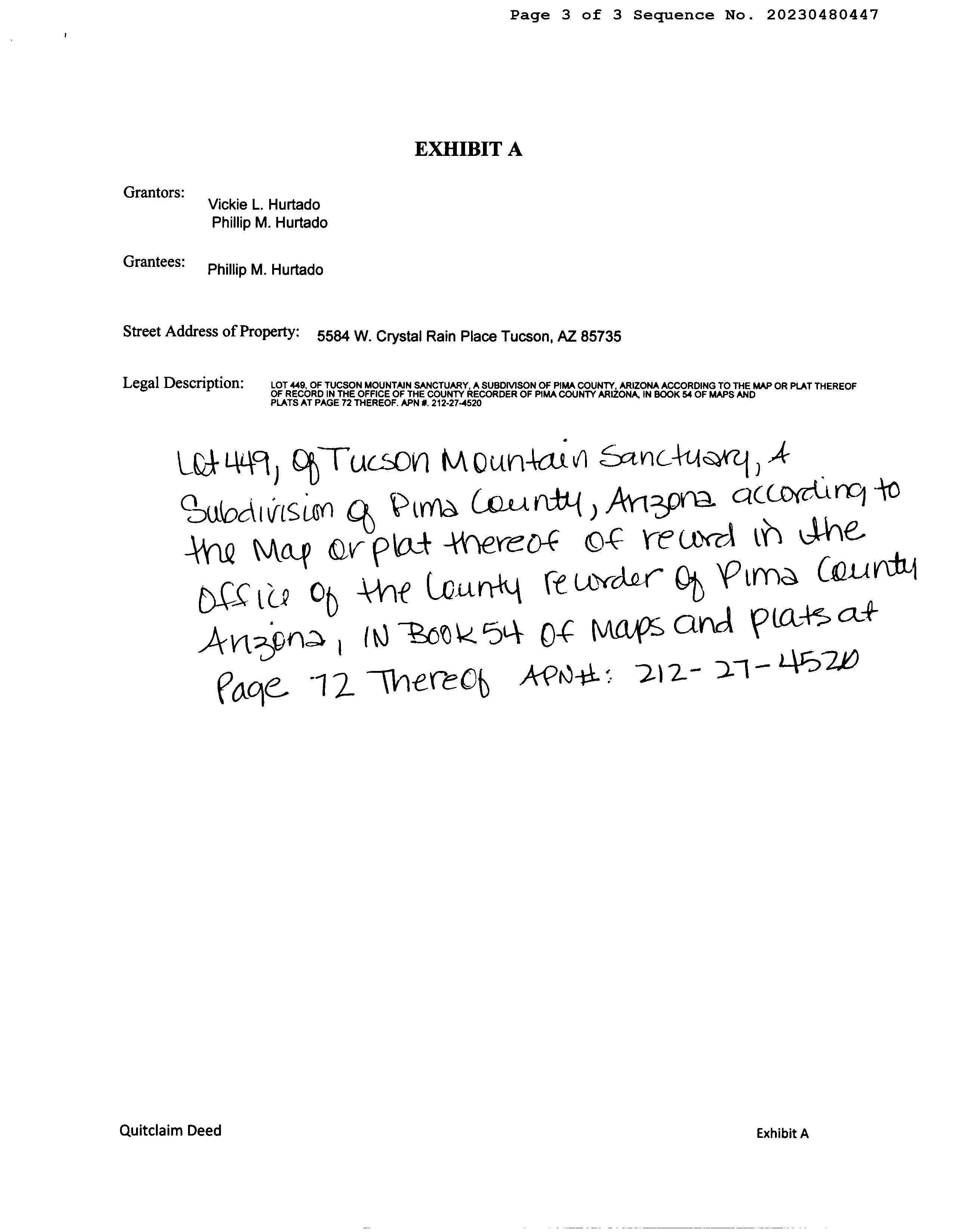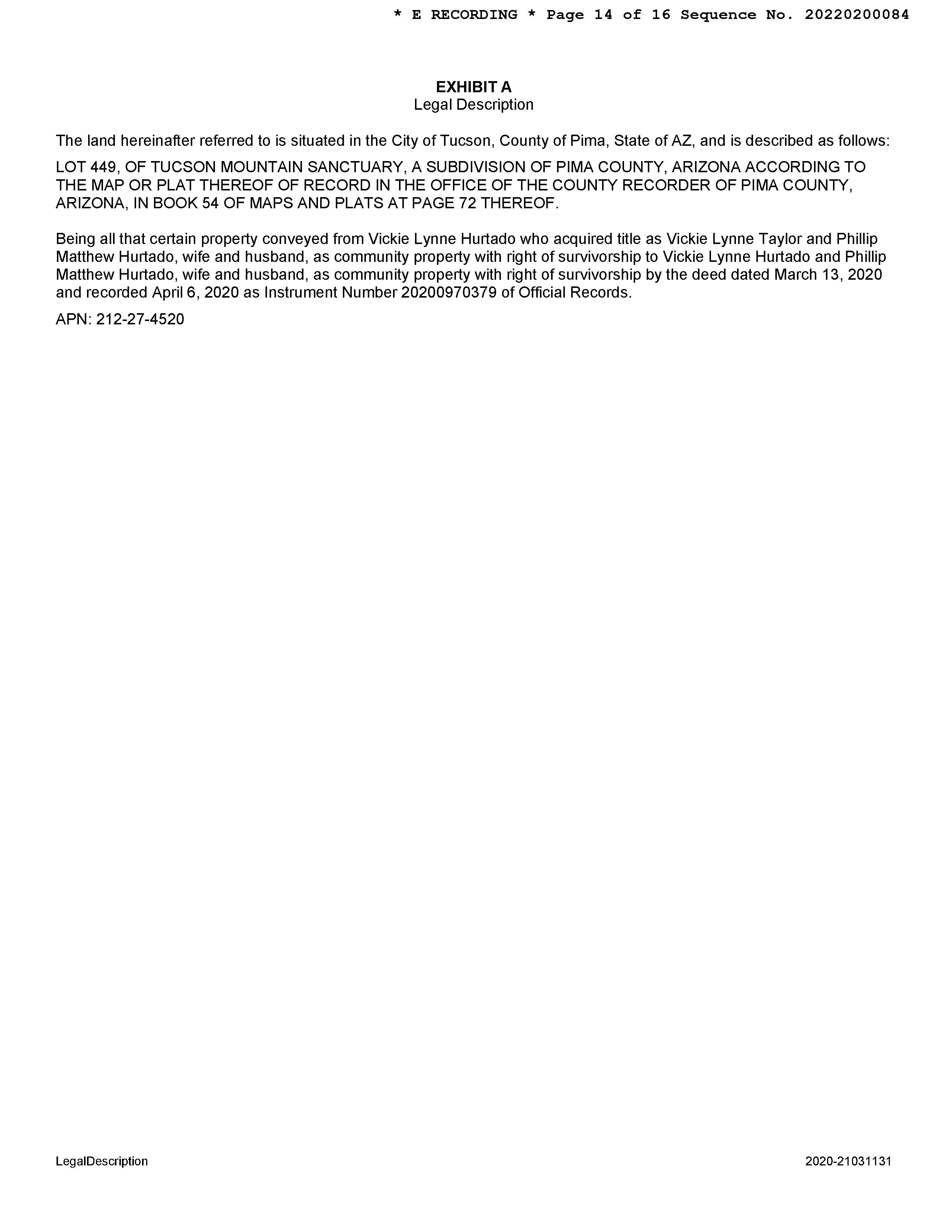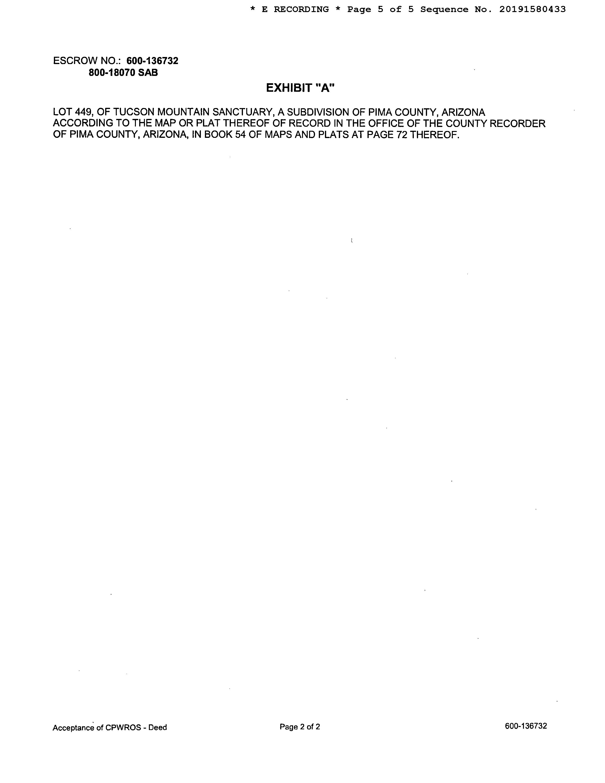 Legal Description : Tucson Mountain Sanctuary Lot 449