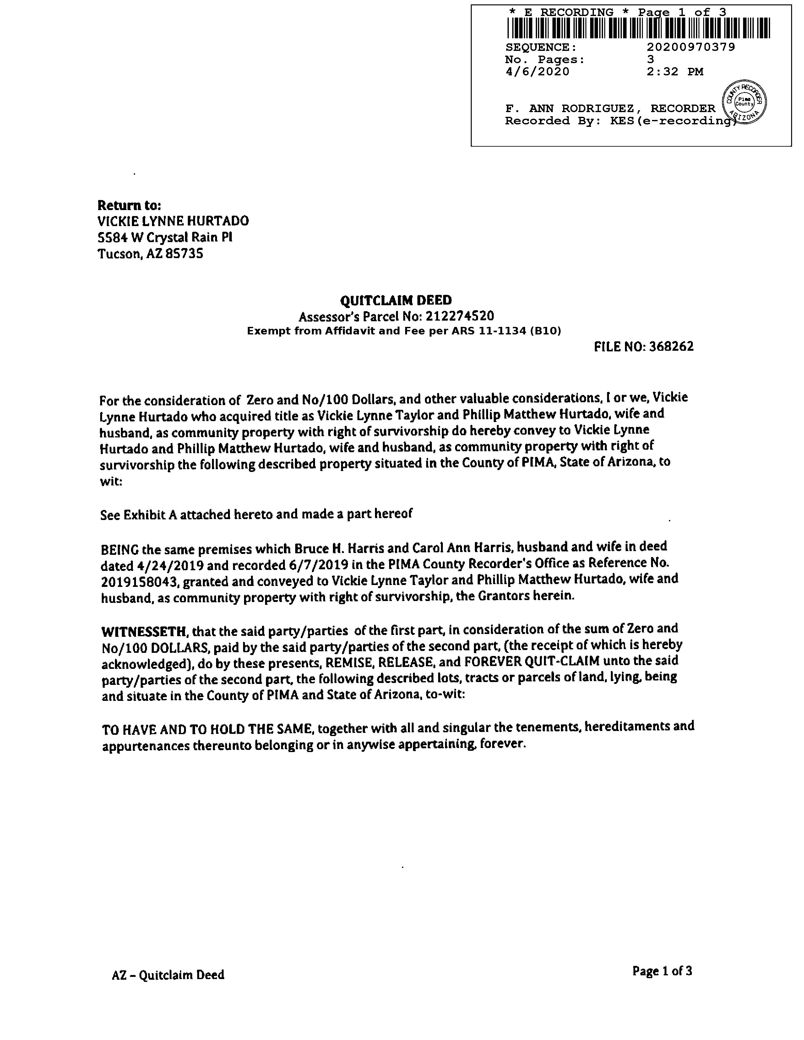 Deed Type : Quit Claim Deed
