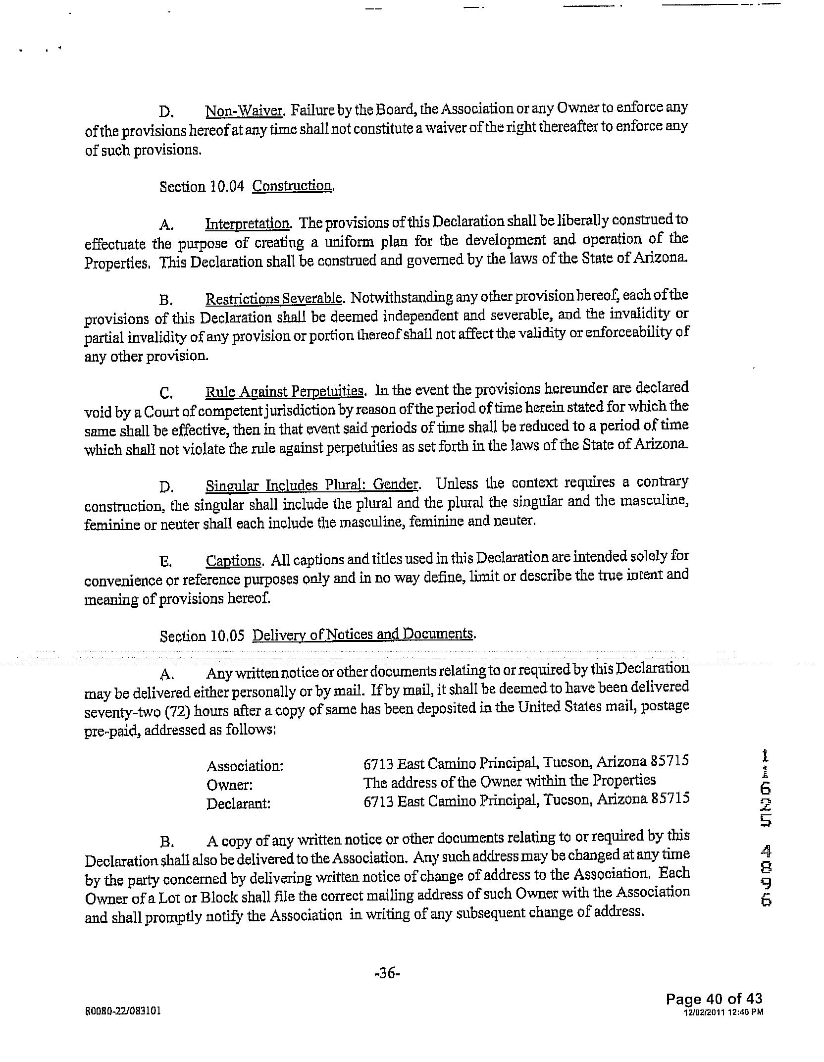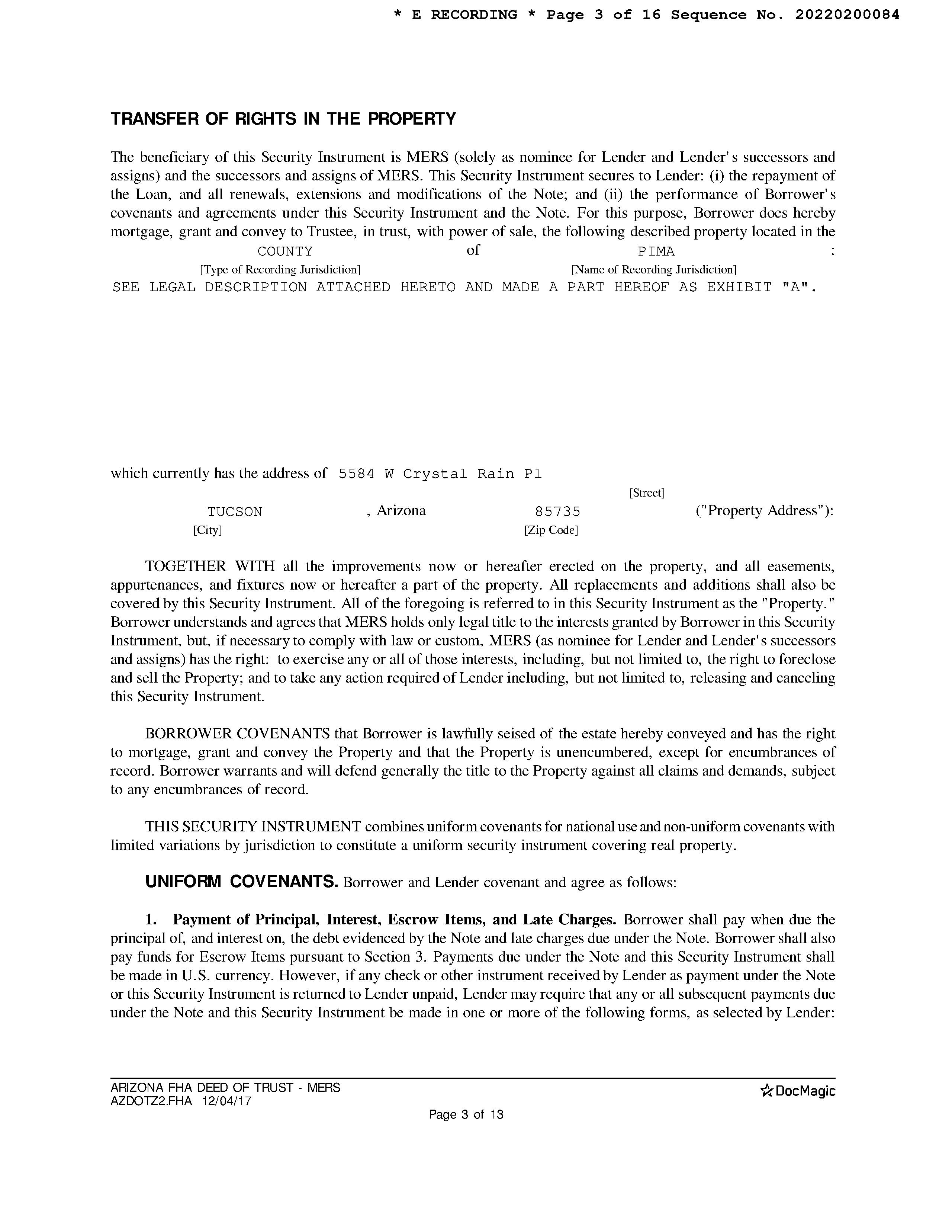 Mailing Address : 5584 W Crystal Rain Pl, Tucson AZ 85735-5182 R133