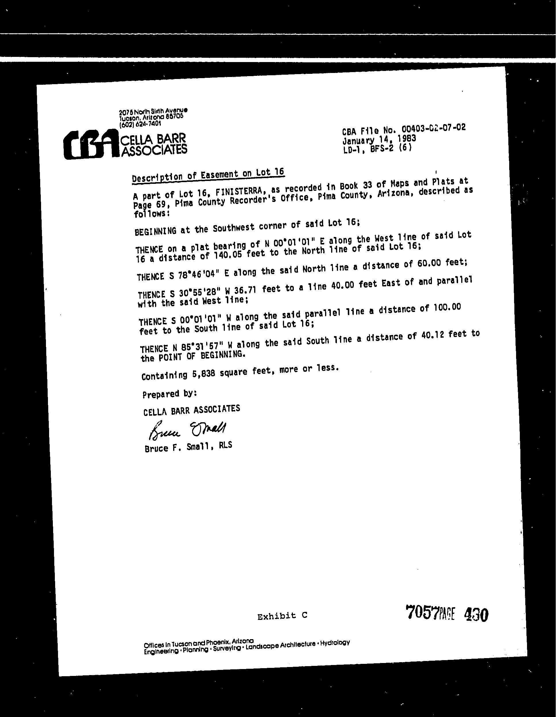 Mailing Address : 5594 E Paseo De Manzanillo, Tucson AZ 85750-1027 C057