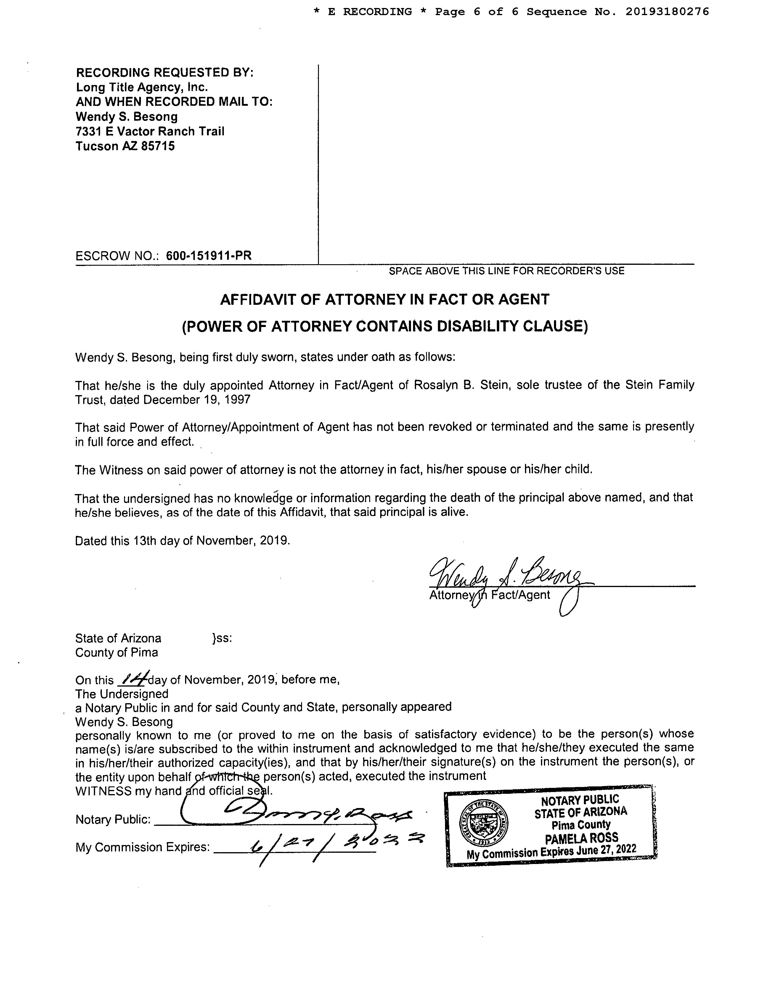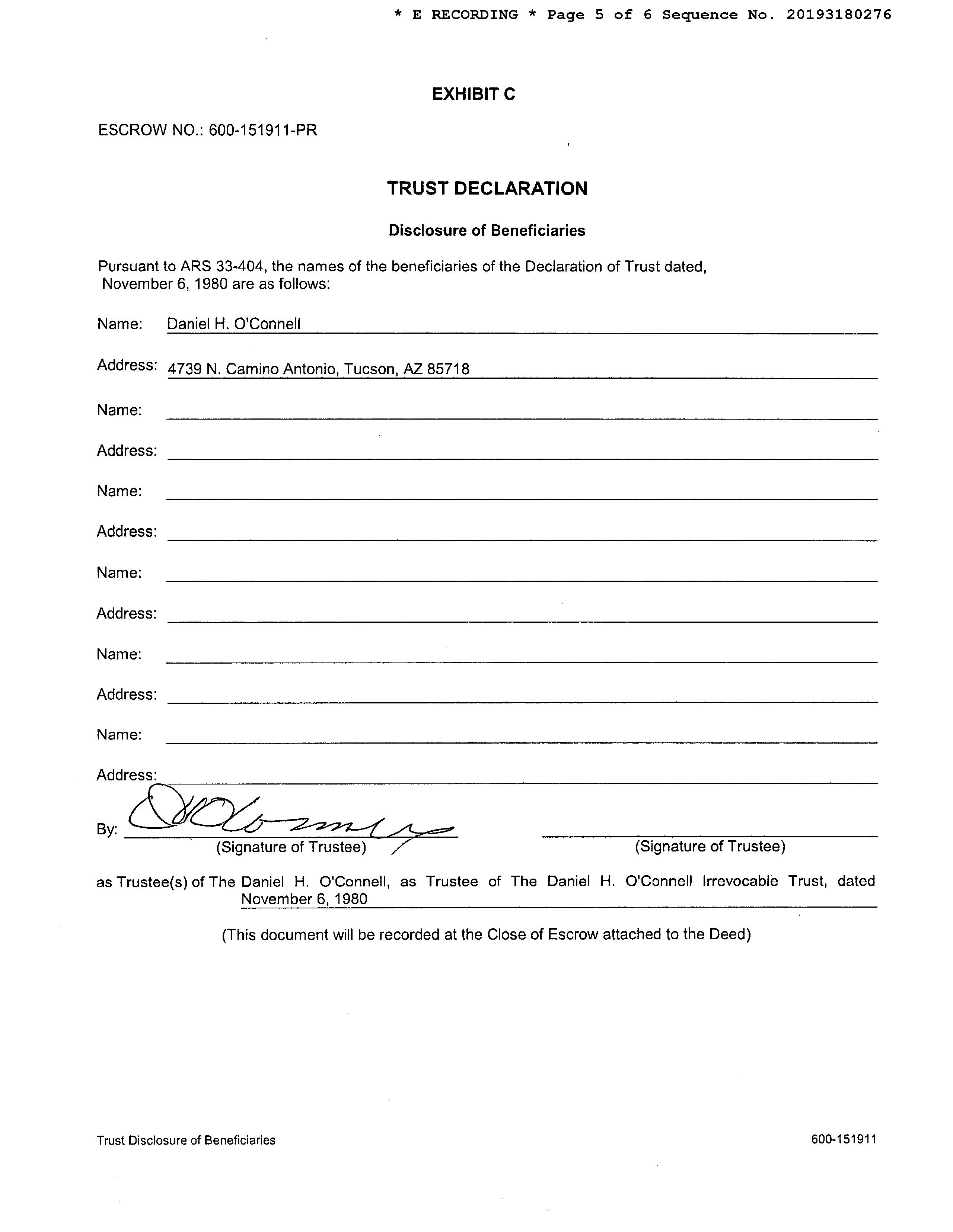 Mailing Address : 5594 E Paseo De Manzanillo, Tucson AZ 85750-1027 C057