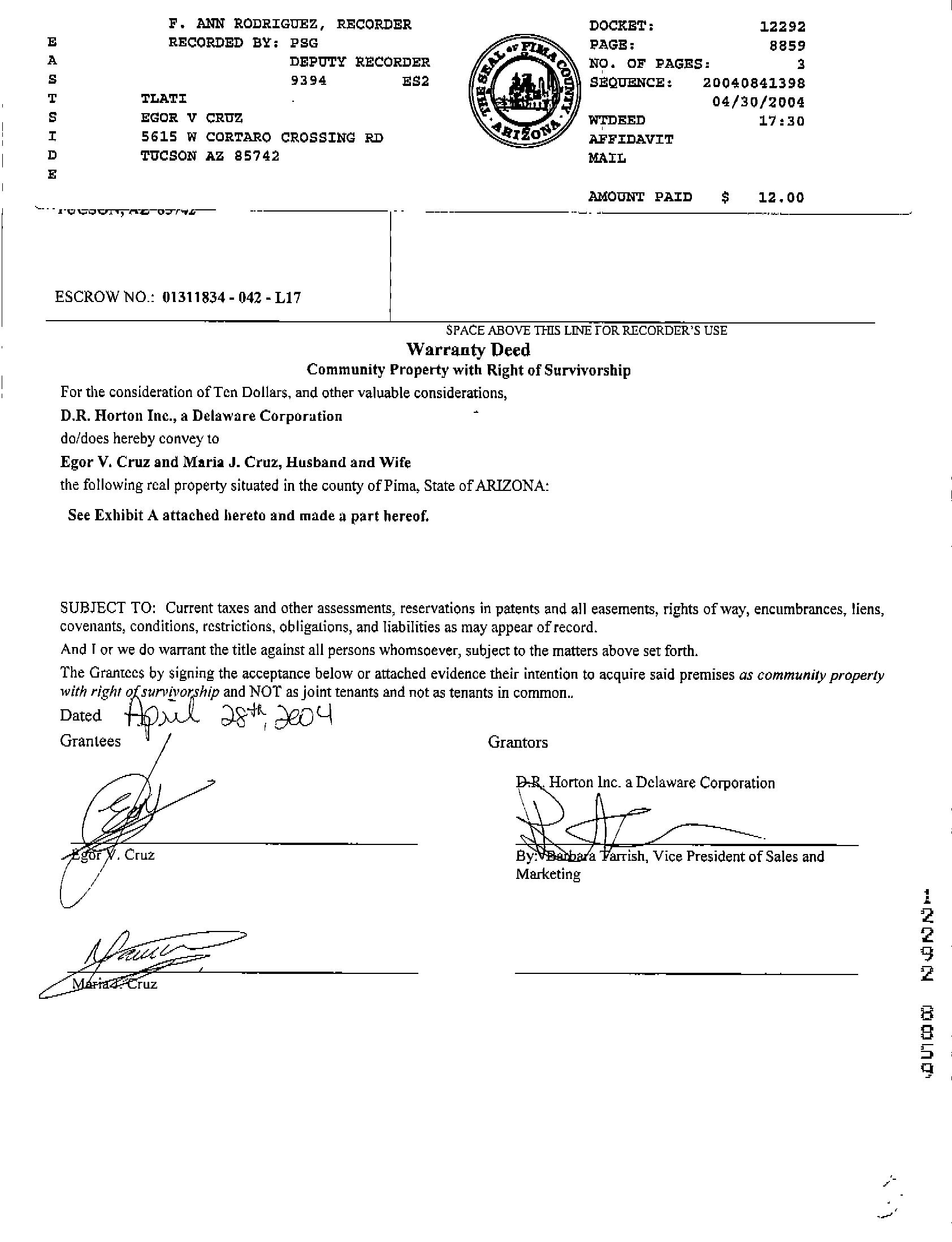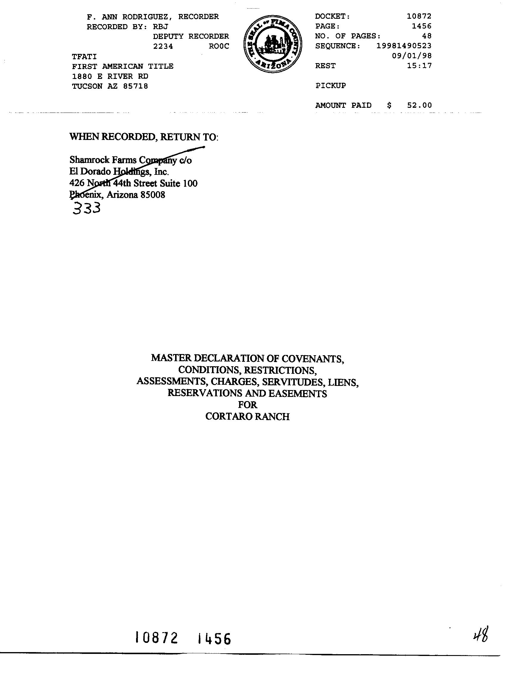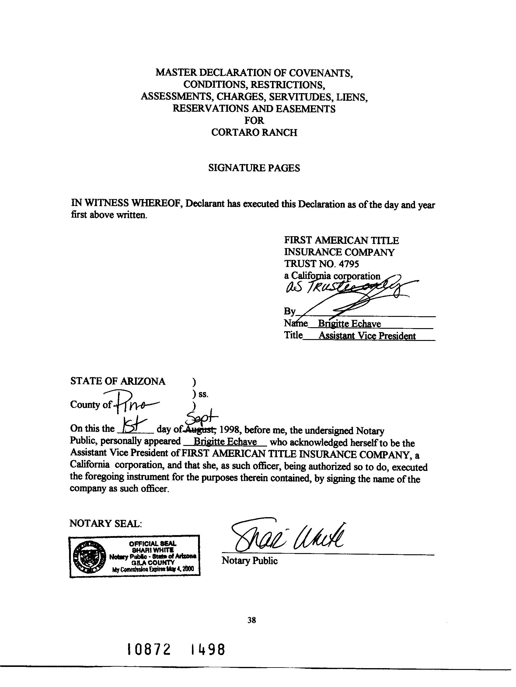 This information is furnished without fee and without benefit of a complete title search. No liability is assumed by First American Title. If it is desired that liability be assumed, you may apply for a policy of title insurance with First American Title Insurance Company.